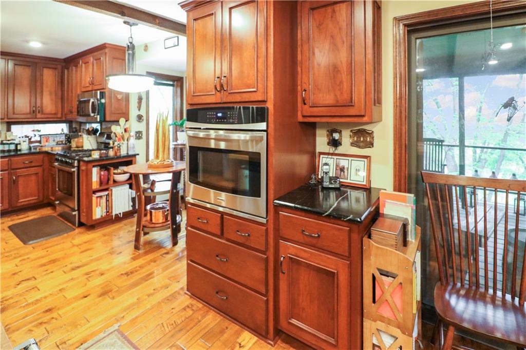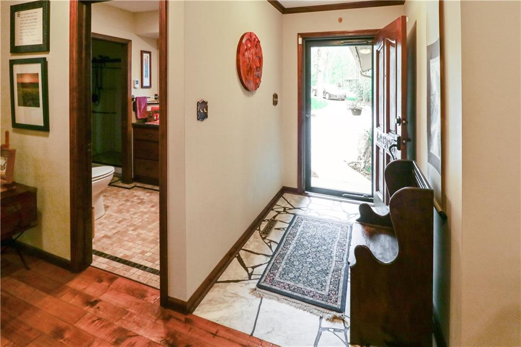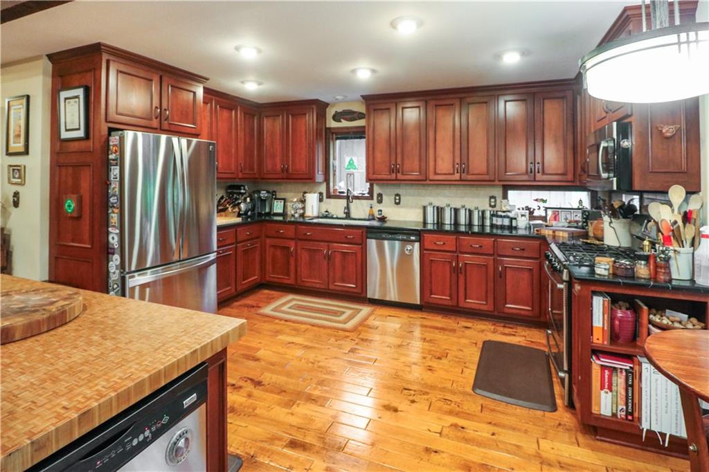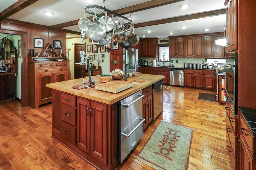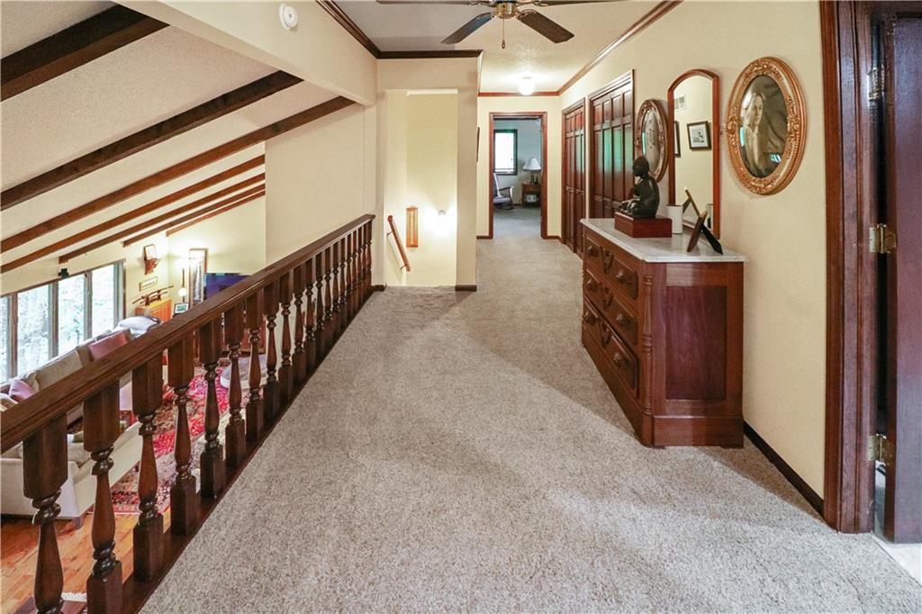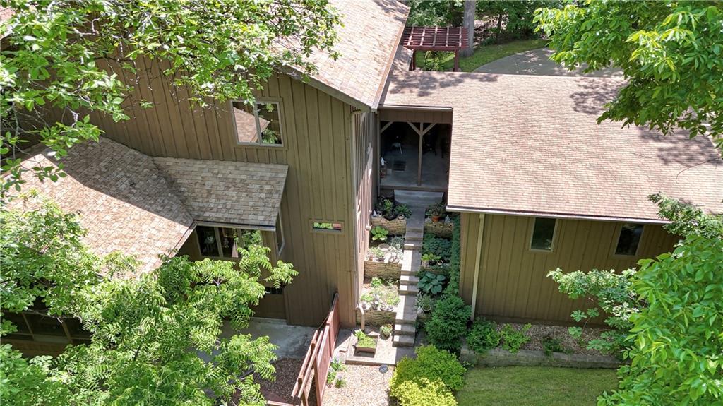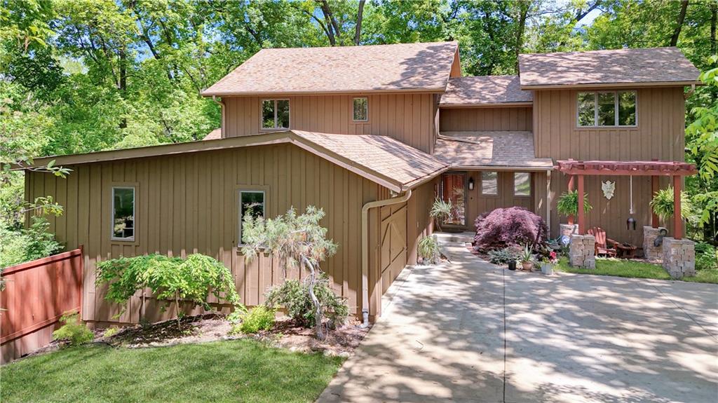 Nestled on nearly an entire acre with lake frontage in the well established neighborhood of Spring Ridge, this one-of-a-kind home has been meticulously maintained and thoughtfully improved by two generations of the same family since it was built. This custom-designed postmodern home showcases a timeless design that transcends trends and eras, standing out with its enduring charm and character. The main floor features a redesigned and remodeled kitchen that is open and offers the perfect space for entertaining and hosting - it is adjoined to a large screened-in porch that overlooks the woods and Spring Ridge lake. The main living space has a vaulted ceiling and large windows. The main ensuite is on the ground level, as well as laundry for ultimate convenience. Upstairs you will find three very spacious bedrooms and a large full bathroom. There is a landing with additional storage and a loft which opens to the lower level. Each bedroom has at least one large closet - storage options are generous throughout the home. Regularly painted to protect the exterior siding, Andersen windows that were built to last, a new roof set to be installed, updated with maple wood flooring, cherry cabinets, wood beams, stunning soapstone countertops, dual dishwashers - sinks - and ovens, a designer butcher block island, heated tile flooring in bathrooms, an in-ground sprinkler system to keep the lawn & landscaping looking sharp, a new circular driveway and decorative stone landscaping are just a few of the special features of this property. The full basement is unfinished but does offer exceptional space for storage, further finished square footage, a workshop, playroom, or whatever you desire and walks out to the side of the home onto a large concrete patio. This is a noteworthy estate and will make a very nice place to call home!