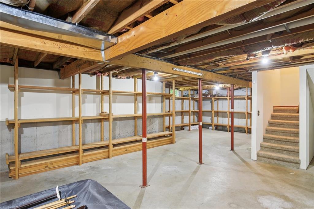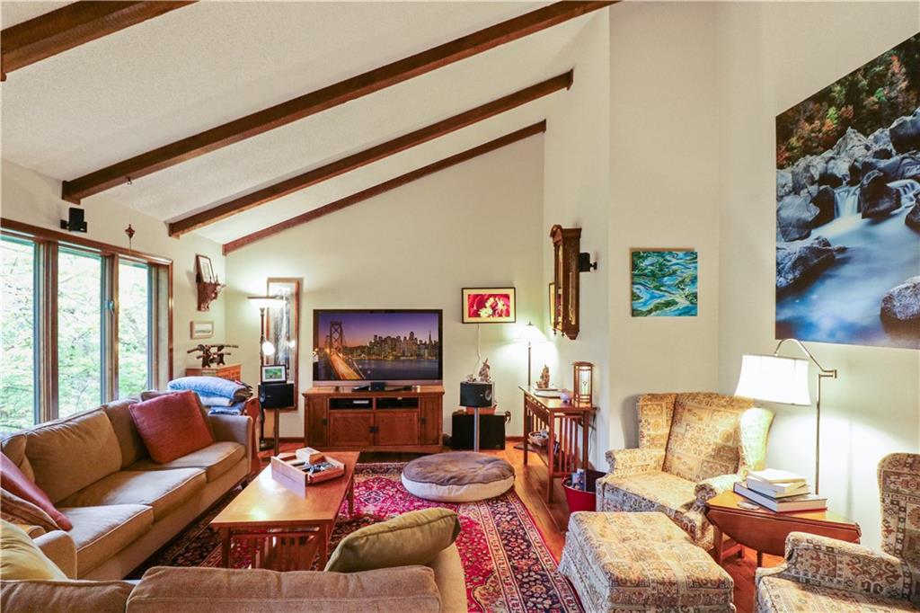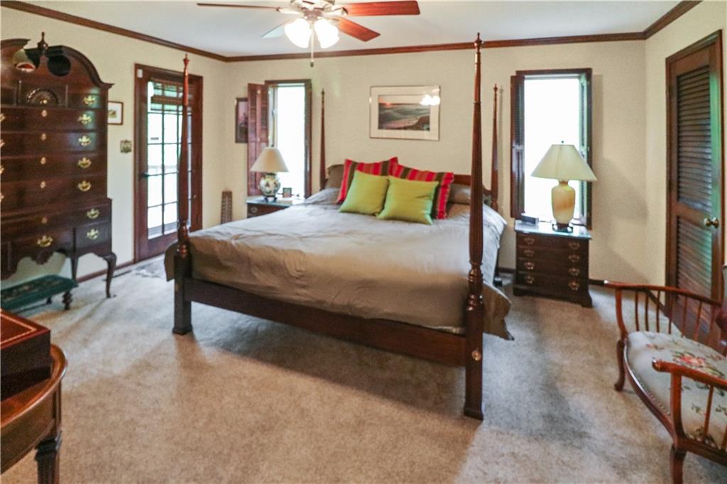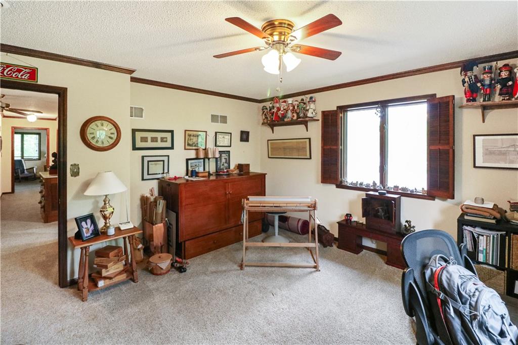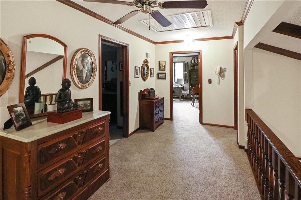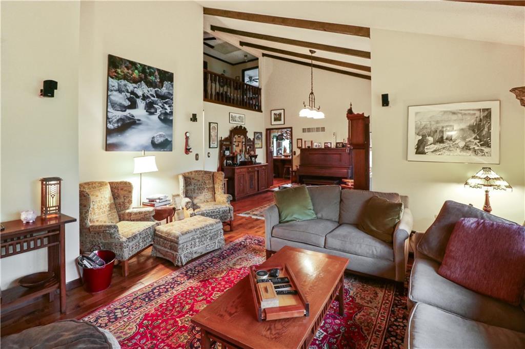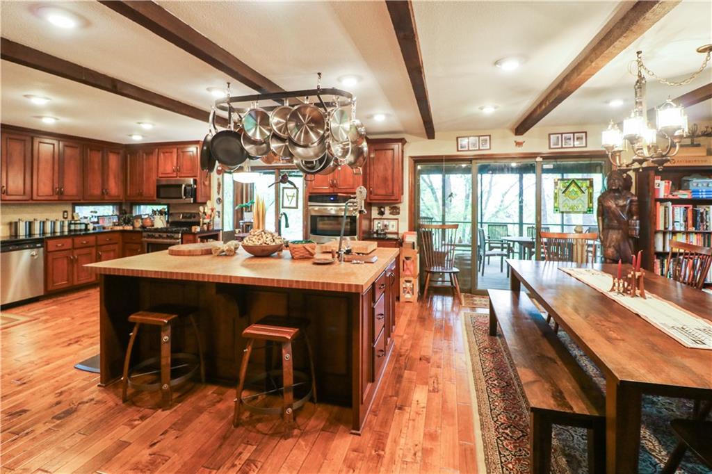 Nestled on nearly an entire acre with lake frontage in the well established neighborhood of Spring Ridge, this one-of-a-kind home has been meticulously maintained and thoughtfully improved by two generations of the same family since it was built. This custom-designed postmodern home showcases a timeless design that transcends trends and eras, standing out with its enduring charm and character. The main floor features a redesigned and remodeled kitchen that is open and offers the perfect space for entertaining and hosting - it is adjoined to a large screened-in porch that overlooks the woods and Spring Ridge lake. The main living space has a vaulted ceiling and large windows. The main ensuite is on the ground level, as well as laundry for ultimate convenience. Upstairs you will find three very spacious bedrooms and a large full bathroom. There is a landing with additional storage and a loft which opens to the lower level. Each bedroom has at least one large closet - storage options are generous throughout the home. Regularly painted to protect the exterior siding, Andersen windows that were built to last, a new roof set to be installed, updated with maple wood flooring, cherry cabinets, wood beams, stunning soapstone countertops, dual dishwashers - sinks - and ovens, a designer butcher block island, heated tile flooring in bathrooms, an in-ground sprinkler system to keep the lawn & landscaping looking sharp, a new circular driveway and decorative stone landscaping are just a few of the special features of this property. The full basement is unfinished but does offer exceptional space for storage, further finished square footage, a workshop, playroom, or whatever you desire and walks out to the side of the home onto a large concrete patio. This is a noteworthy estate and will make a very nice place to call home!