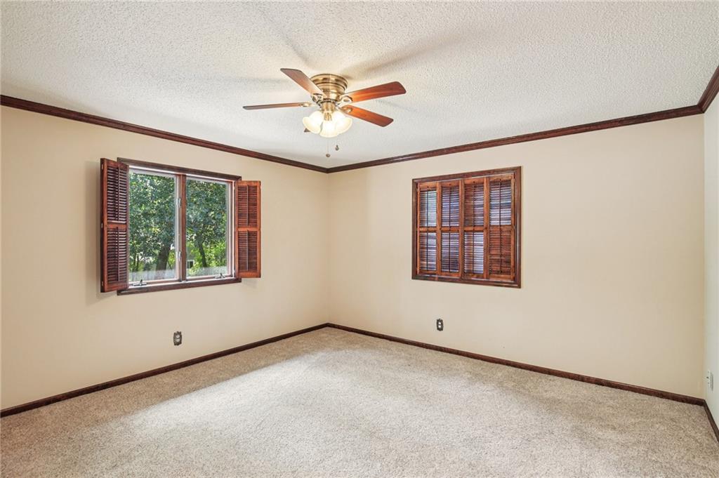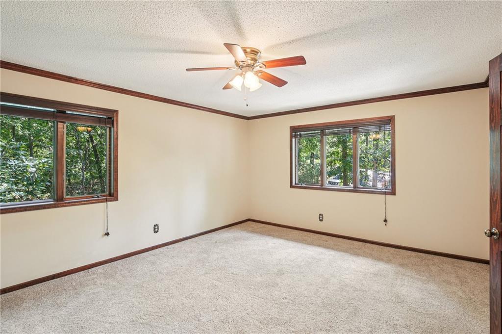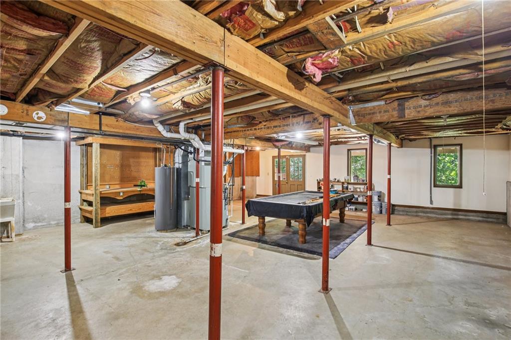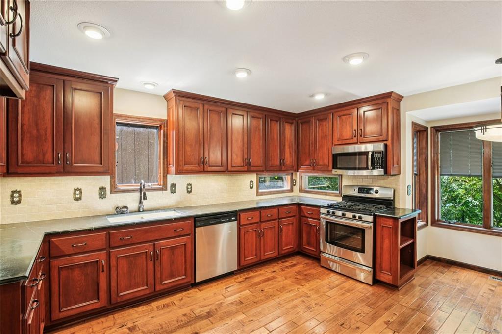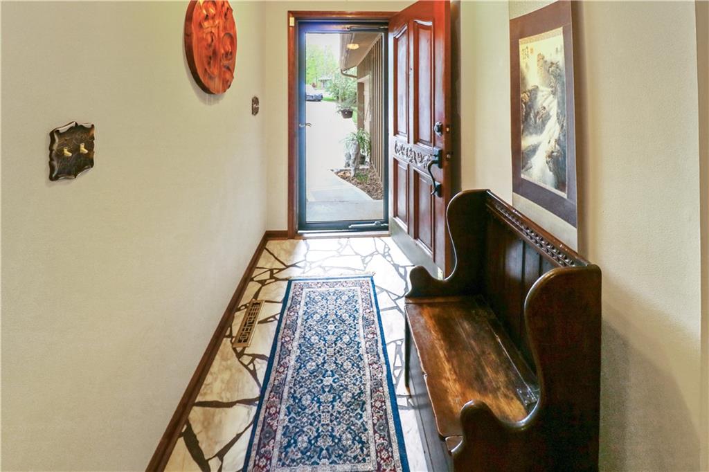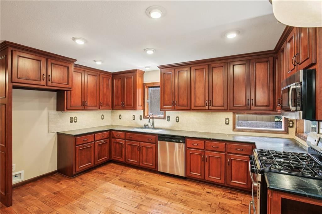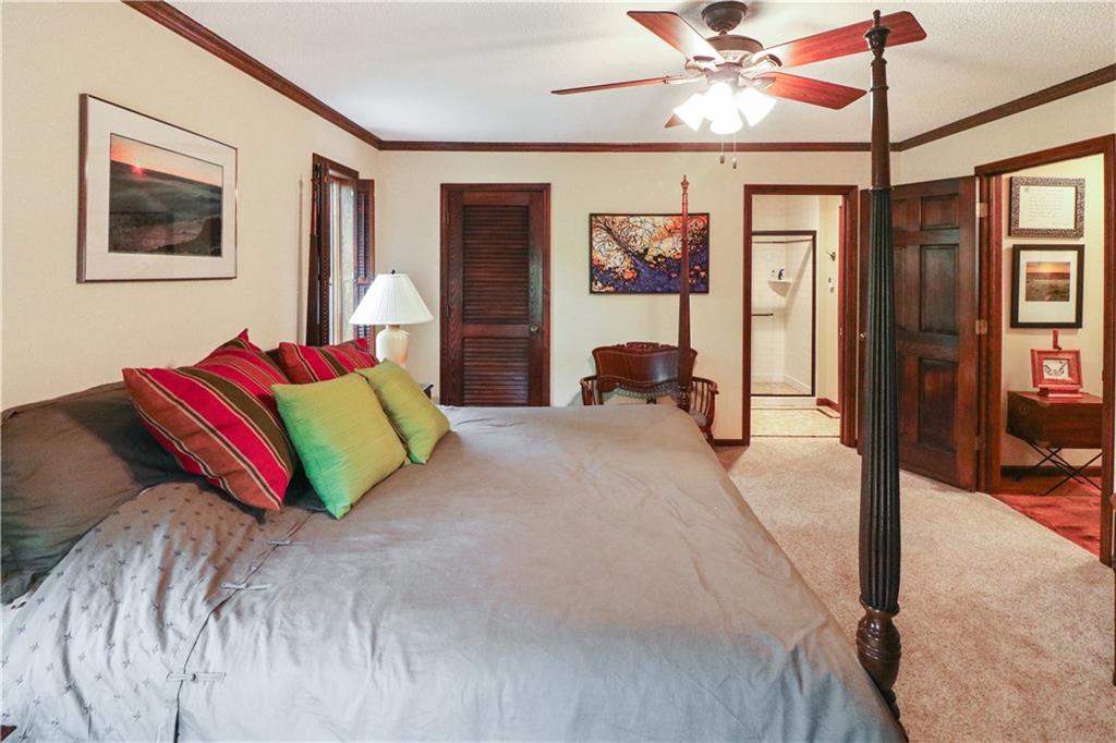 Nestled on nearly an entire acre with lake frontage in the well established neighborhood of Spring Ridge, this one-of-a-kind home has been meticulously maintained and thoughtfully improved by two generations of the same family since it was built. This custom-designed postmodern home showcases a timeless design that transcends trends and eras, standing out with its enduring charm and character. The main floor features a redesigned and remodeled kitchen that is open and offers the perfect space for entertaining and hosting - it is adjoined to a large screened-in porch that overlooks the woods and Spring Ridge lake. The main living space has a vaulted ceiling and large windows. The main ensuite is on the ground level, as well as laundry for ultimate convenience. Upstairs you will find three very spacious bedrooms and a large full bathroom. There is a landing with additional storage and a loft which opens to the lower level. Each bedroom has at least one large closet - storage options are generous throughout the home. Regularly painted to protect the exterior siding, Andersen windows that were built to last, a new roof set to be installed, updated with maple wood flooring, cherry cabinets, wood beams, stunning soapstone countertops, dual dishwashers - sinks - and ovens, a designer butcher block island, heated tile flooring in bathrooms, an in-ground sprinkler system to keep the lawn & landscaping looking sharp, a new circular driveway and decorative stone landscaping are just a few of the special features of this property. The full basement is unfinished but does offer exceptional space for storage, further finished square footage, a workshop, playroom, or whatever you desire and walks out to the side of the home onto a large concrete patio. This is a noteworthy estate and will make a very nice place to call home!
