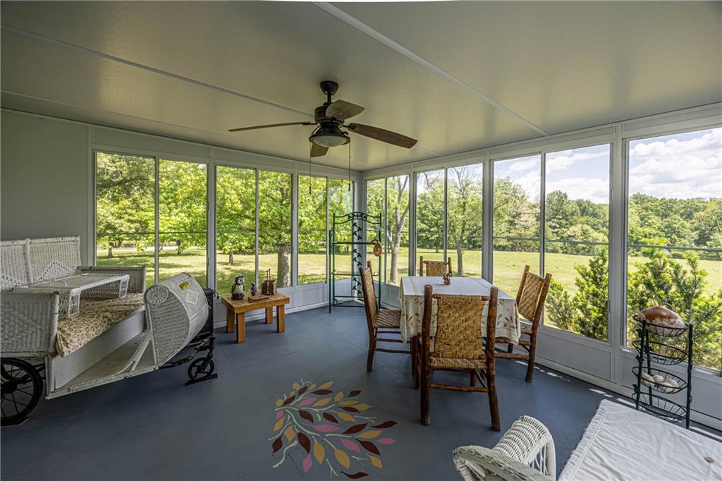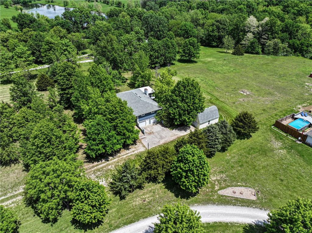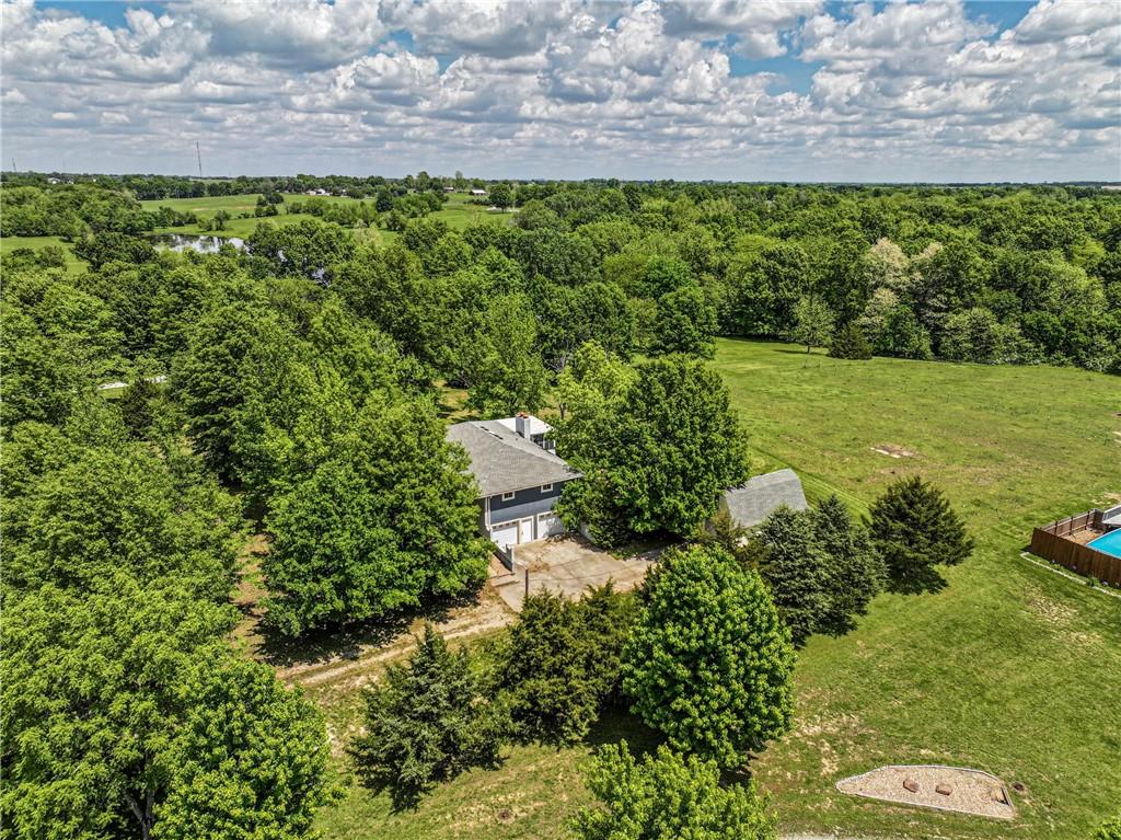 Looking for your get away place..... this is a unique split foyer home nestled in the trees on 10 acres just minutes from Warrensburg. Easy Access to I 70 or 50 hwy. If you have been looking for land and space this could be it. Land is treed and some open pasture space (neighbor currently has leased a few acres to graze a couple cows and plans to move cows/fence and shed) Seller has made numerous updates throughout the years and used this as their second home. Total remodel done making it very modern open floor plan. There are 3 bedrooms and 2 baths on main level with hickory wood floor throughout. Big Open Living/Dining and Kitchen. The kitchen has granite counter tops, two pantries, cooktop and double oven. Sunroom off kitchen to sit and enjoy the view. Huge family room space finished with fireplace and full bath/laundry room (leaving washer/dryer). Oversized 2 car attached garage with big storage closet. Detached outbuilding/garage is 25X14 with steps going up to attic/storage space. Heated and cooled with ground source heat pump. James Hardy siding on exterior. Sellers installed a sump pump system through Dry Basements and has serviced every year (no problem just did for preventative measure) If looking for some land and privacy this one may be for you!! Seller is willing to negotiate the furnishings with the right offer - they have used this as their second home.