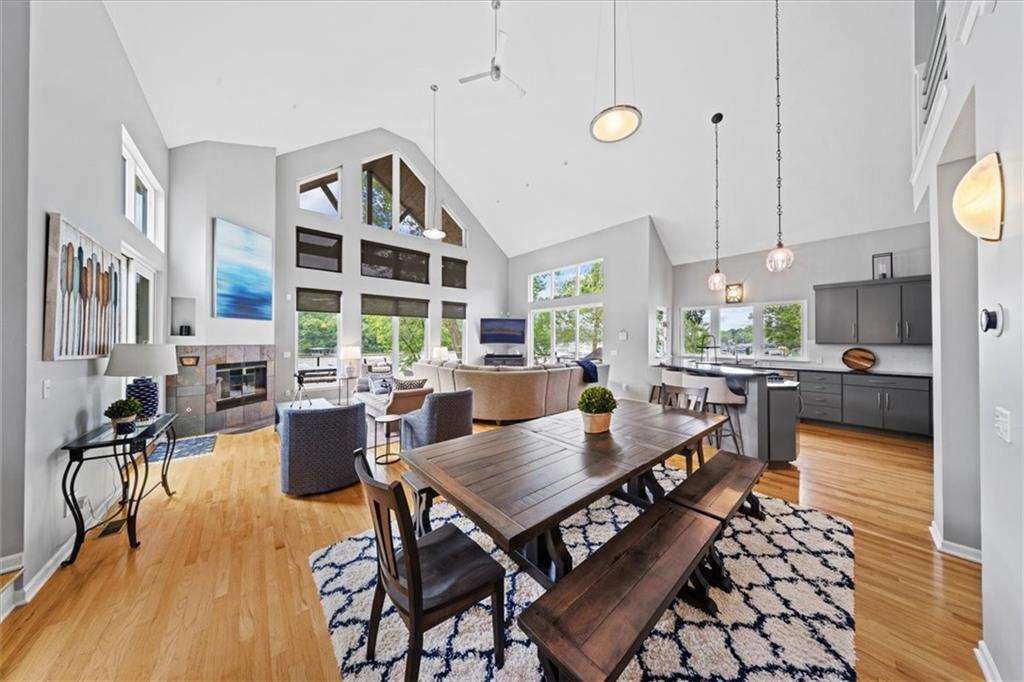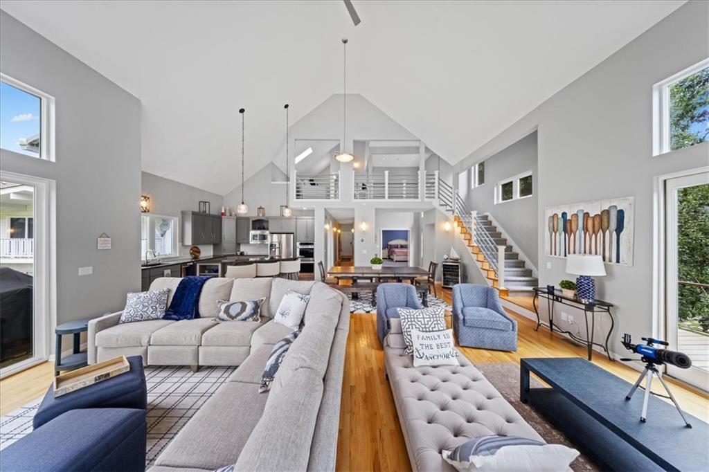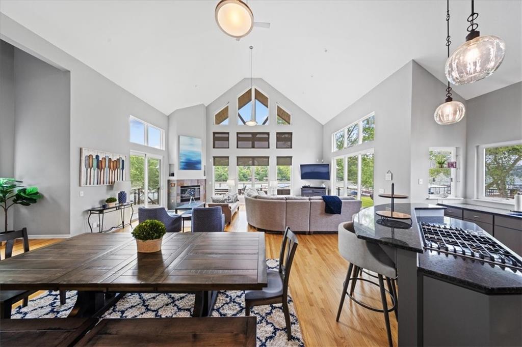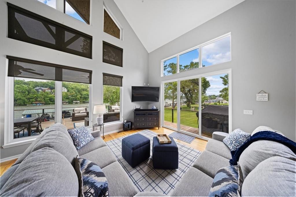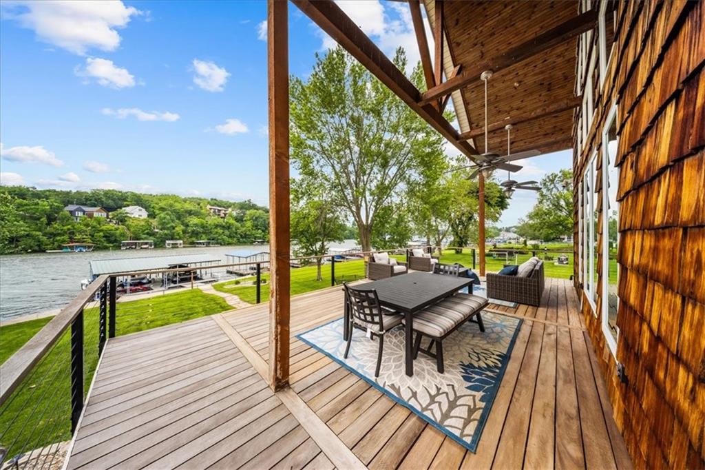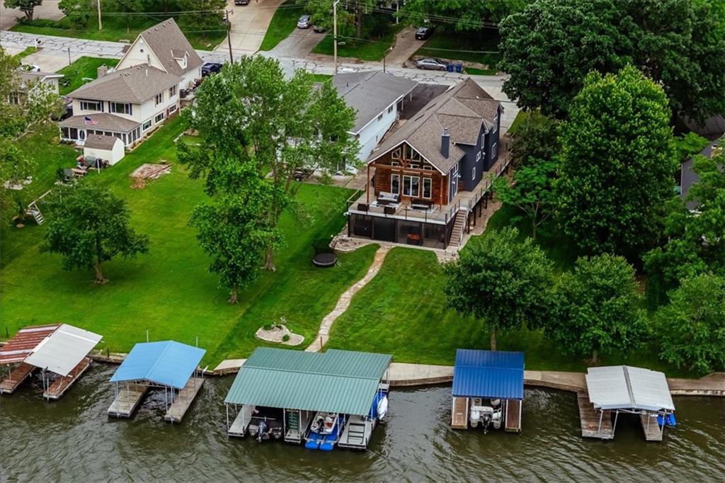 Quiet cove location and BELOW appraised value! The best price per sq foot in Lotawana and it even comes FURNISHED! Rare find on a LEVEL lot with 3 slips! The abundance of natural light and windows in this home allow you to enjoy the views from the main level and upstairs. House comes fully furnished and also includes an additional lot. Quiet cove perfect for swimming, canoeing, boating and all your fun lake activities! Beautiful A Frame architecture and a completely open concept floorplan. Double dock with dual jet ski and 3rd slip nearby included! House also comes with an extra lot across the street for parking or whatever you like. HEATED driveway fits 9 cars!!! Composite deck, whole house generator, epoxied garage floor and plenty of room to sleep up to 12 guests or more! 2 beds on main, Master upstairs with additional bedroom and 2 in lower level. Main kitchen with large center island and a second kitchen on the lower level even has its own entrance from the garage and is perfect for entertaining guests and family. So many updates for you to enjoy your full time or part time stay at the lake. Boats not included.