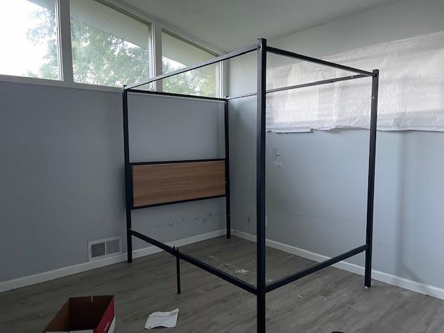 Unfurnished bedroom featuring wood finished floors, baseboards, and multiple windows