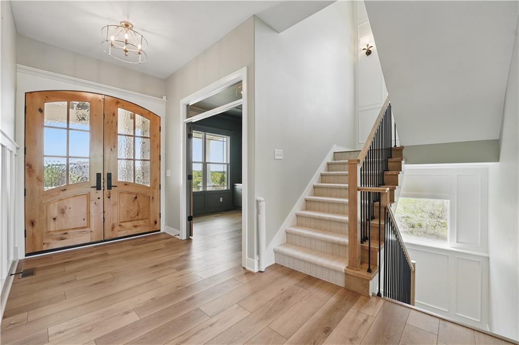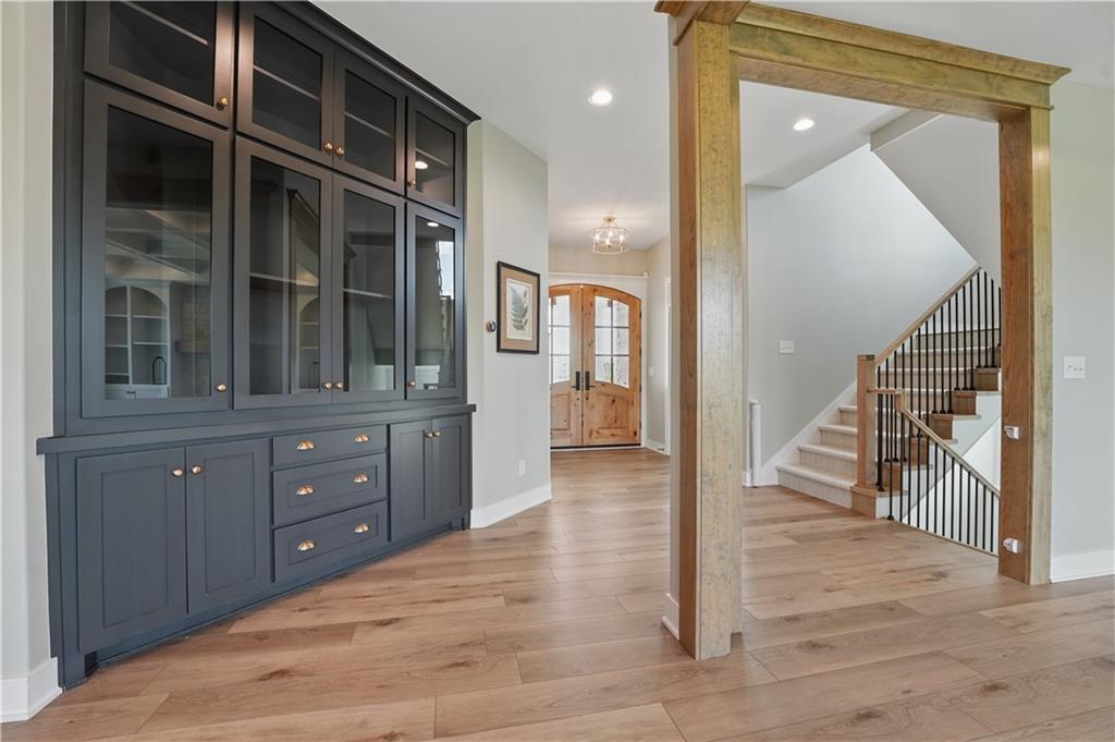 Award winning selections in Cedar Creek! Do you want a new home without the stress or the wait that goes with new construction? This is your chance! This is a rare opportunity to own an award-winning Gabriel Homes - Makenna 2 story that is less than 2 years old. Sitting on one of the best lots in Valley Ridge — backing to a beautiful, treed greenspace. It’s better than new, with the highest of finishes throughout! Step inside through the stunning double door entry into the main floor featuring 10-foot ceilings throughout. The main level office has been upgraded with custom built-ins along with double glass French doors. The expanded great room showcases a large gas fireplace with custom built-ins on either side, coffered ceiling treatment, and a wall of windows featuring upgraded wainscotting. The gourmet kitchen is every chef's dream, featuring beautiful floor to ceiling cabinets, a high end gourmet gas range, a huge walk-in pantry with a grocery pass-through, and an expanded island, perfect for entertaining. Off the main living area, you’ll find a covered deck that looks out over the trees, ideal for your morning coffee or evening relaxation. Upstairs, the primary suite is absolutely incredible. It’s oversized with a huge walk-in closet and has a bonus closet perfect for seasonal clothing or secure storage. The primary suite bathroom feels like your very own spa with heated tile floors, double vanities, a luxurious soaker tub, and a large shower with his and her sides. Every detail on this home has been meticulously selected! Cedar Creek features a 65 acre private fishing/canoeing/kayaking lake. 3 resort-like swimming pools, a 2 story clubhouse with NBA basketball grade court that is also set up for year round pickleball or volleyball, several outdoor tennis and pickleball courts, sand volleyball court, along with miles of walking trails! Come see why Cedar Creek is one of the most sought-after communities to call home in Johnson County!