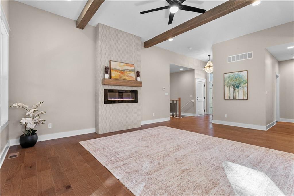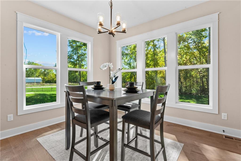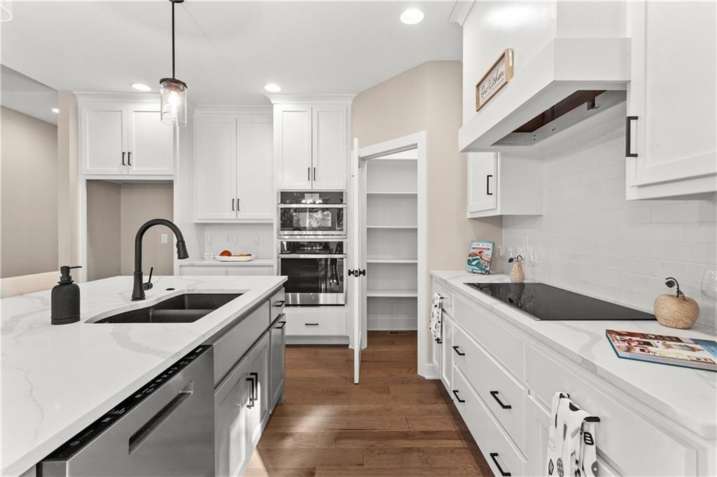 Completion set for Oct 31! Not your typical builder spec home. Amazing straight ranch on a spacious, treed lot. The open kitchen impresses with custom painted cabinets, quartz countertops, a large island with breakfast bar, pantry, and premium appliances, including built-in and convection ovens, an oversized cooktop with downdraft, and a dishwasher. The living room features 12’ ceilings, a floor-to-ceiling tile fireplace, and an abundance of natural light. The primary suite is a peaceful retreat with large windows overlooking the private backyard. The en-suite bath offers a fully tiled walk-in shower, dual quartz vanities, and a linen closet. A spacious walk-in closet adds convenience and function, making this suite the perfect blend of comfort and modern style. Enjoy main floor laundry and a screened-in, covered composite deck with stairs to the yard. Additional highlights include a seven-zone irrigation system, a huge unfinished basement with egress windows and plumbing for a full bath, and a high-efficiency, environmentally friendly HVAC system with humidifier and 14 SEER A/C unit featuring the new R-454B refrigerant. Quality, comfort, and craftsmanship come together—schedule your showing today! Owner/agent