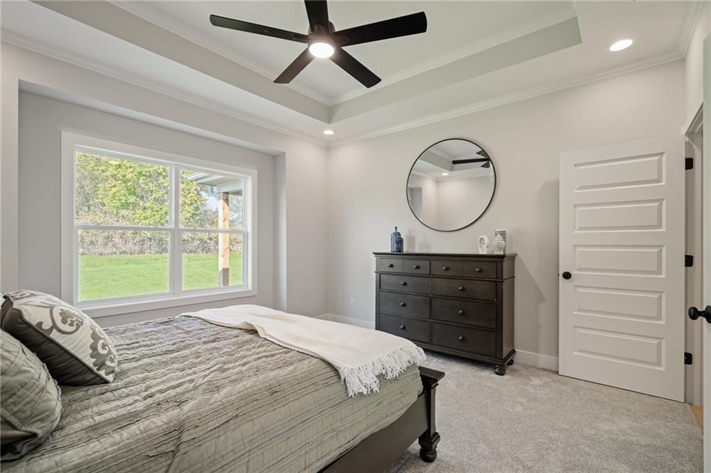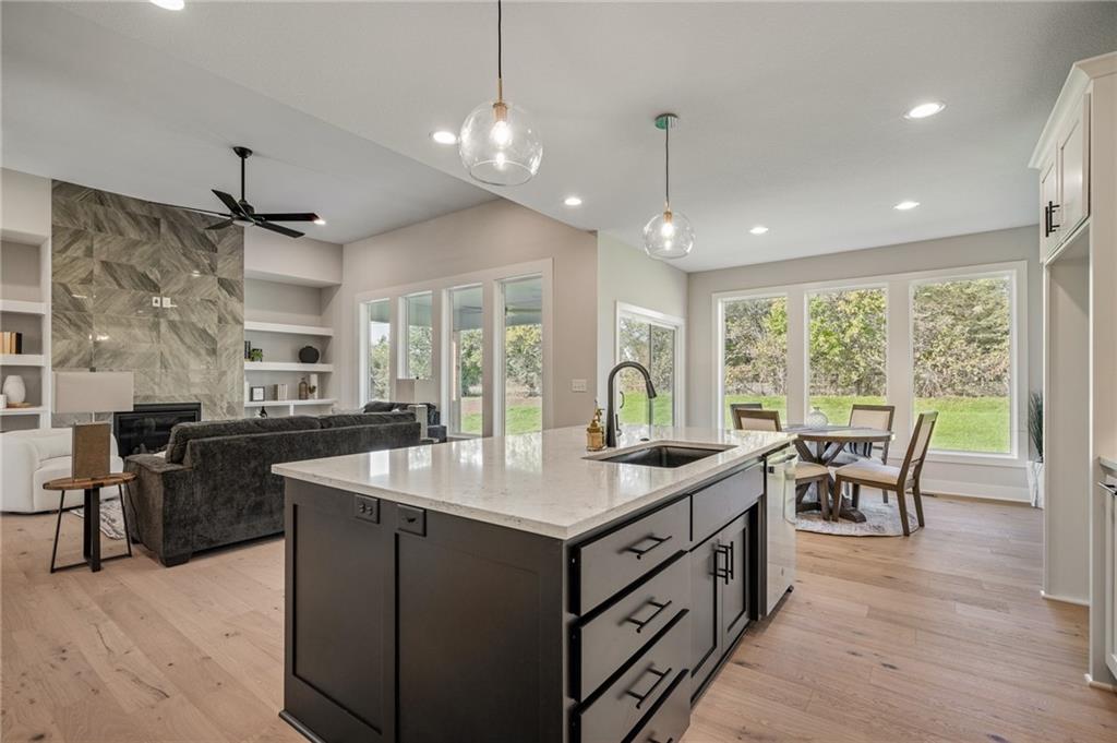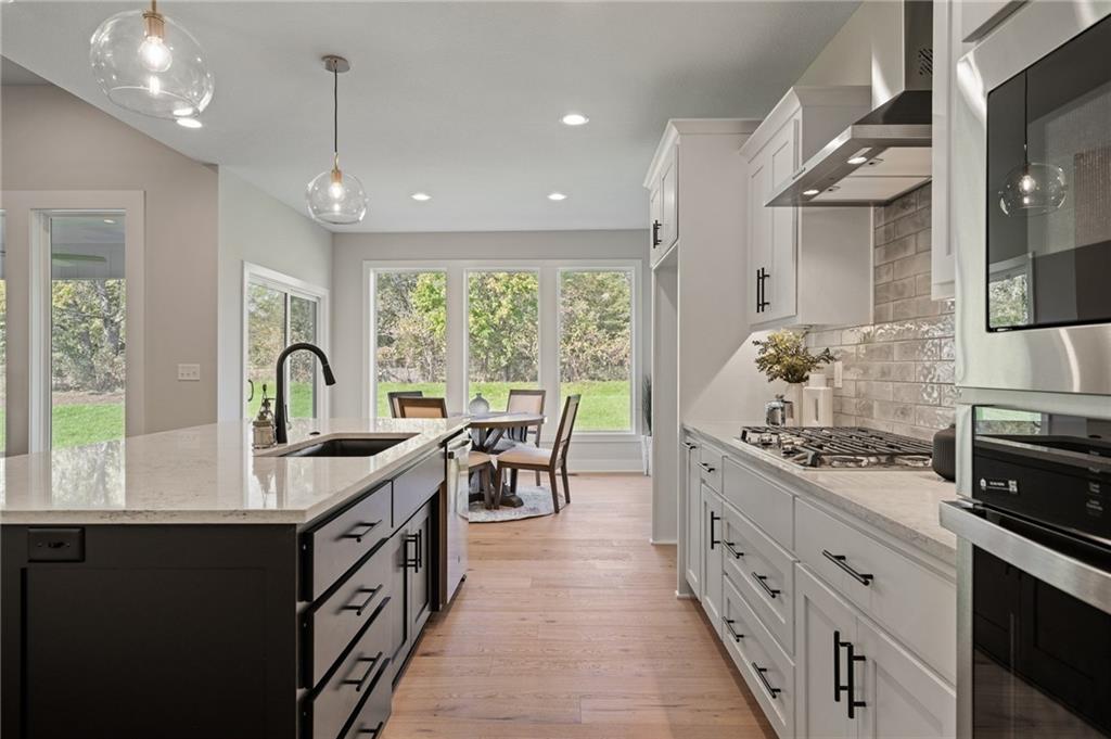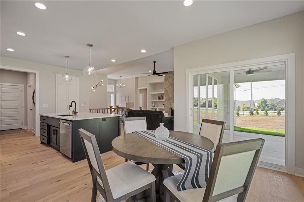 The Kendyl plan by New Mark Homes is a Reverse 1.5 story featuring 3 bdrms, 2 full and 1 half baths, 3 car garage. Home features an open & airy main level w/ Great Room, open dining & kitchen w/ gas cooktop. Spacious Master Suite w/ shower, large closet & office on main-level. Finished lower-level w/ large Rec Room, bar area, 2 secondary bdrms, full bath & tons of storage. HOME IS AT FINISH STAGE READY FOR A QUICK MOVE IN! Taxes are estimated. Lakeview Ridge is a new build community just west of Lake Olathe with great homes started and fantastic lots available. POOL coming in 2026/2027. You can get to the neighborhood off of Dennis & Houston with easy access from K7 or coming from Lakeshore. Our Sales Office is located 14271 Houston. Our development is right next to Lake Olathe and neighborhood feeds into Clearwater Creek Elementary, Oregon Trail Middle School and Olathe West High School.