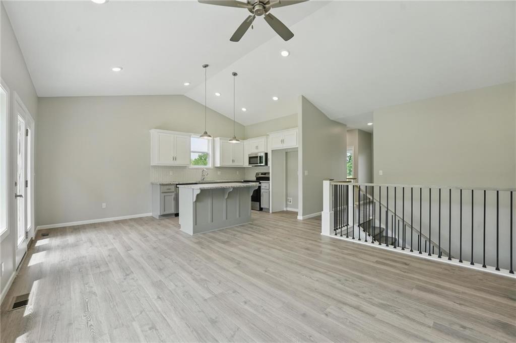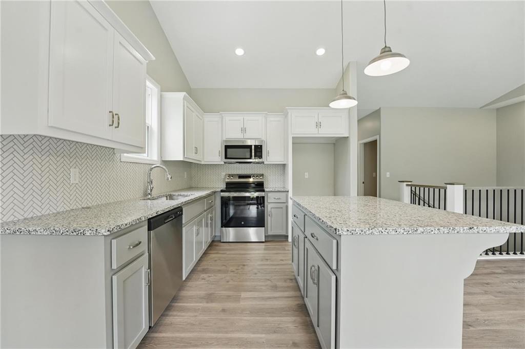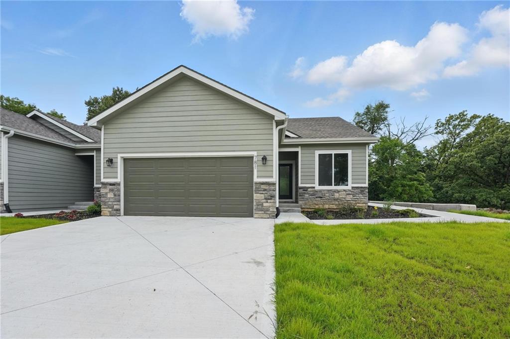 Enjoy a small-town feel just minutes from the city in the desirable Highland Ridge community. This 3-bedroom, 3-bath ranch villa offers an open-concept floor plan with generously sized bedrooms and a finished lower level perfect for additional living or entertaining. The deep garage allows space for multiple vehicles, storage, or recreational equipment. Luxury finishes throughout include granite countertops, tile backsplash, soft-close cabinets and drawers, and floor-to-ceiling tile in the primary shower. 10-foot ceilings and oversized windows provide excellent natural light. The home sits on a generous, mature lot, with upgrade-level features already included at no added cost — a must-see value at this price point. Conveniently located: • 20 minutes to Downtown KC • 5 minutes to The Legends for shopping and entertainment • 15 minutes to the Overland Park business corridor, Garmin HQ, and Panasonic Comfort, quality, and convenience come together here.