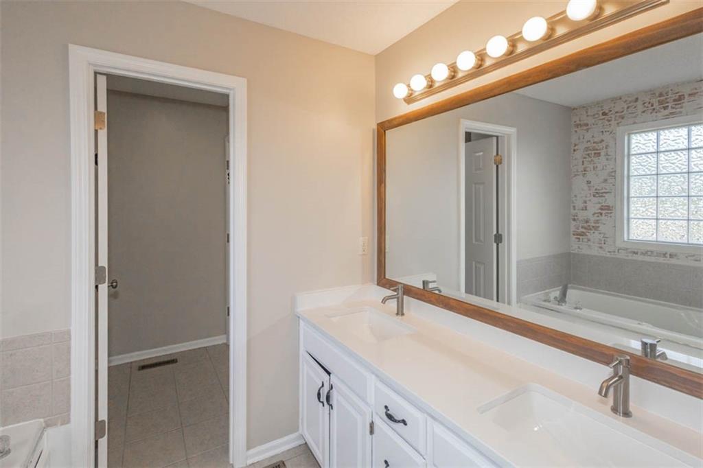 Welcome to this spacious 1.5-story home in the desirable Meadows of Northbrook neighborhood. Featuring 4 bedrooms and 3.5 bathrooms, this home offers a thoughtful layout and fresh updates throughout. Step into the vaulted living room with a cozy fireplace and large windows that fill the space with natural light. The eat-in kitchen includes white cabinetry, a corner sink, and access to the freshly painted back deck—perfect for entertaining. The main-level primary bedroom features a large closet and an en suite bath with a double vanity, jetted tub, and private water closet. Upstairs, you'll find generously sized secondary bedrooms with plush carpet and wainscoting accents. Enjoy the flexibility of a finished basement complete with a full second kitchen, ideal for hosting guests or creating a separate living space. There is also a bonus non-conforming room in the basement The fenced-in backyard adds privacy, and the fresh interior paint and new hardware throughout give the home a modern feel. Nestled in a quiet neighborhood with easy highway access and just minutes from shopping and restaurants, this home checks all the boxes for comfort and convenience.