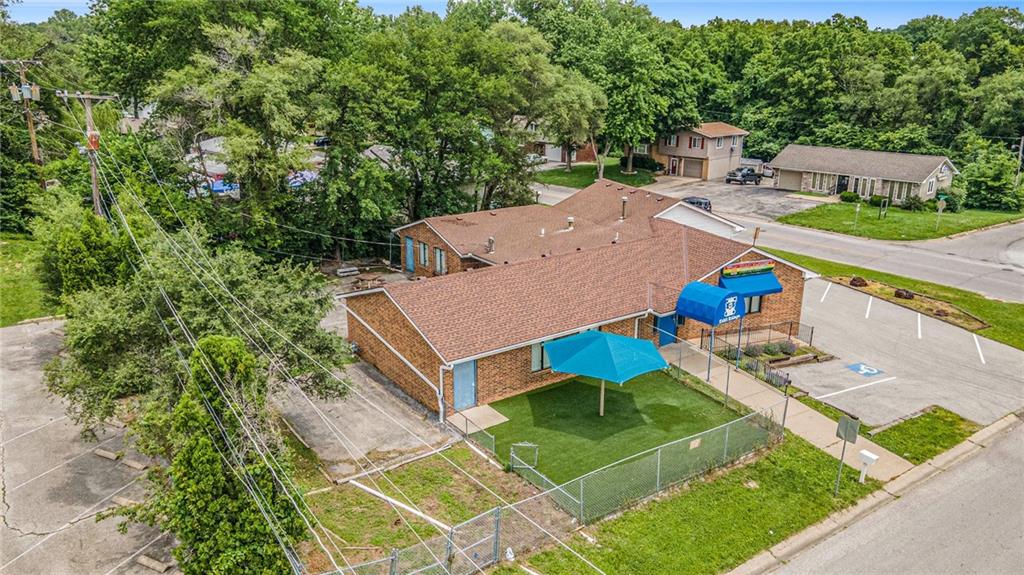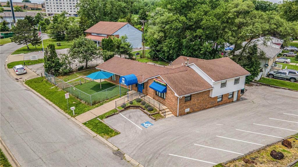 Amazing location at the corner of State Ave and Nebraska Ave, just 1 mile from I -70. With a front reception area and 7 entrance/ exit doors, this commercial property has potential for multiple endeavors. There is a modern finished office space with a private bathroom. There is a fully remodeled retail space on the west side of the building with 3 exit doors including a turfed outside area. The Community Kitchen is centrally located and appliances are negotiable. There is a laundry room and 5+ bathrooms throughout. Quality roller shades on all the windows are included. Plenty of parking on the east side of the building and a large paved lot on the backside which could be converted to extra parking or add a shop. Tons of storage space that could be remodeled for commercial tenants. Gas furnace and electric AC were replaced in 2023. Water heater was replaced in 2020.Finishes are needed for some portions of this property. Personal property and appliances are negotiable