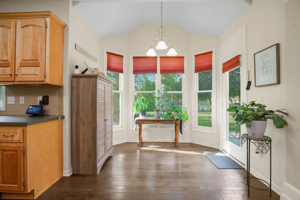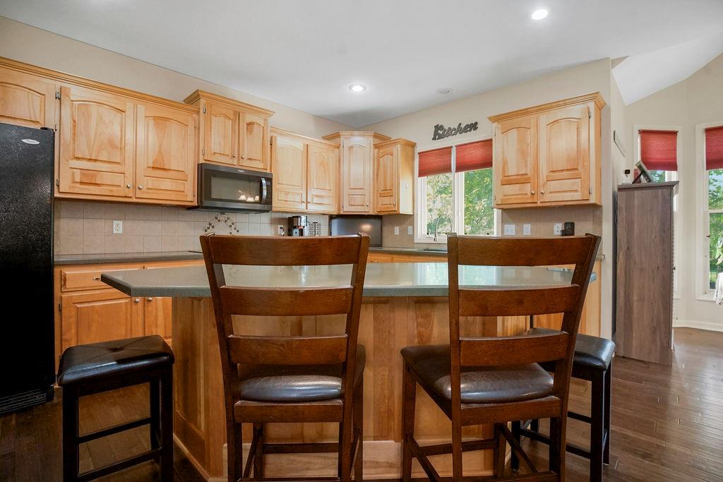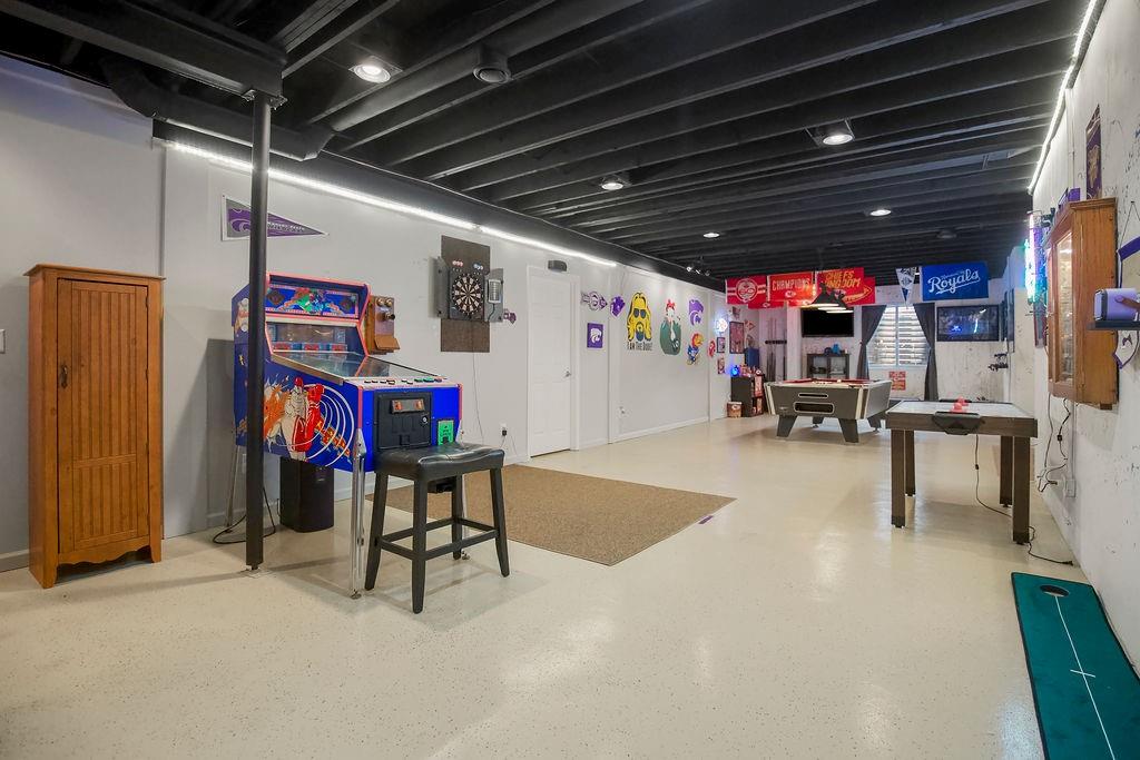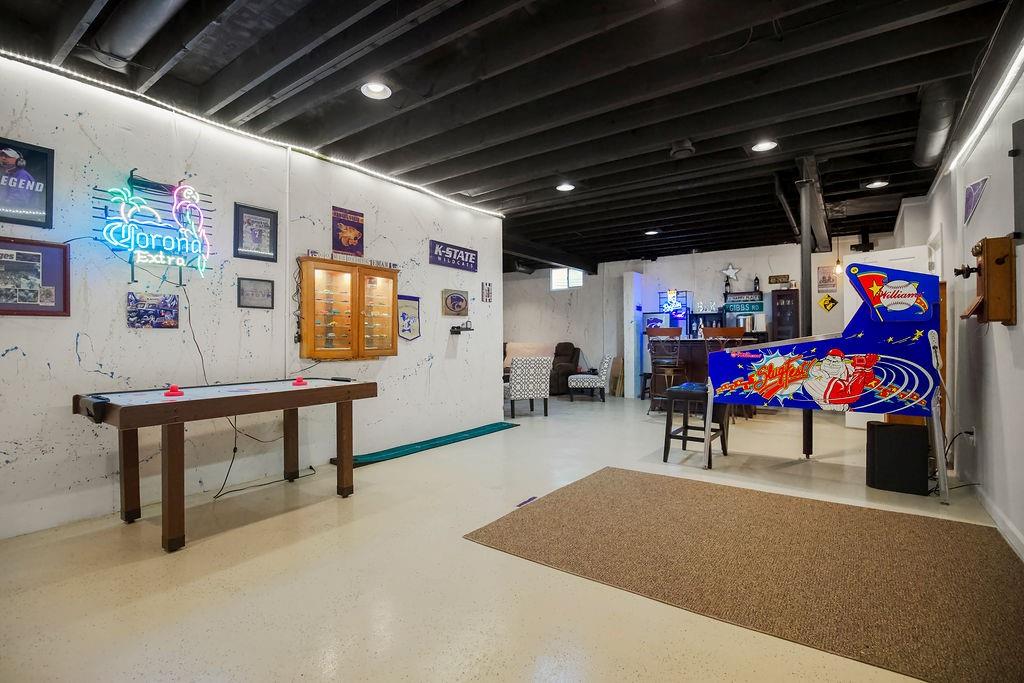 This popular ranch-style floor plan in Rockwood Estates offers effortless main-level living with beautiful hardwood floors and an open layout that provides clear sightlines throughout. The kitchen is both functional and inviting, featuring Corian countertops, a walk-in pantry, cabinet pull-out drawers, and a counter-height island—perfect for handicap accessibility. Enjoy casual meals in the sunlit breakfast nook or host gatherings in the formal dining room just off the main living space.. A cozy gas fireplace adds warmth and charm to the great room or main level family room. The primary suite includes tray ceilings, double sinks, a walk-in bathtub for accessibility, and heated bathroom floors (currently non-functioning but ready for restoration). There are two side-by-side guest bedrooms and bath on the main level. Downstairs, the finished basement is a true entertainment hub, complete with a family room, half bath, a wet bar with sink, and a fully furnished game room—pool table, ping pong, pinball, and air hockey all stay. You’ll also find 750 sq ft of unfinished space, ideal for storage or future expansion. Step outside to a newly poured back patio and enjoy the fenced backyard, enclosed with a no-dig fence. The lot extends beyond the fence line. Additional features include a 2-car garage and a 7-year-old roof. Located in a golf course community, you’re just a short golf cart ride to the course and country club—golf cart available for purchase. Enjoy private walking trails and a community playground, making this an ideal place to call home.