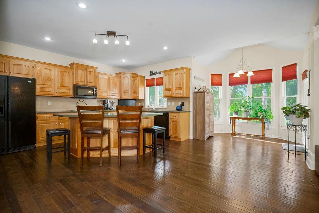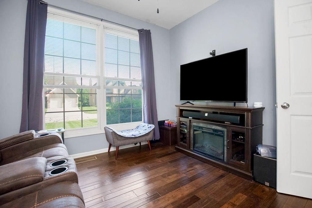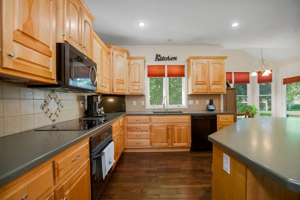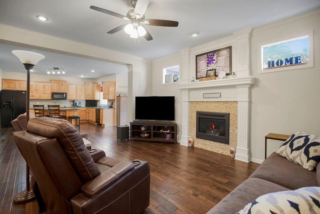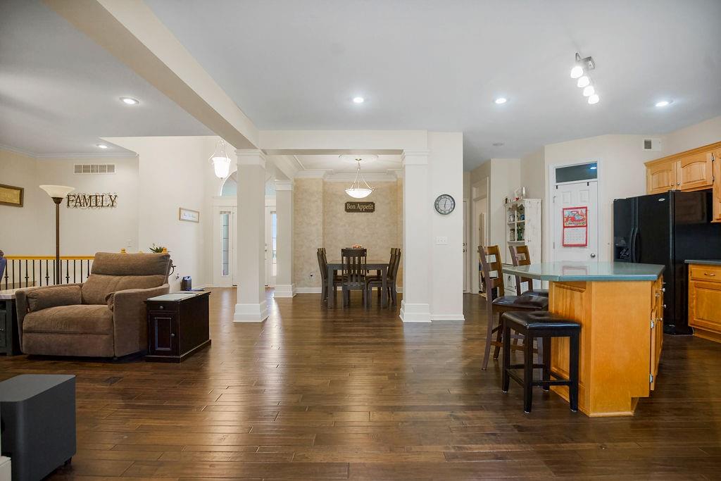 This popular ranch-style floor plan in Rockwood Estates offers effortless main-level living with beautiful hardwood floors and an open layout that provides clear sightlines throughout. The kitchen is both functional and inviting, featuring Corian countertops, a walk-in pantry, cabinet pull-out drawers, and a counter-height island—perfect for handicap accessibility. Enjoy casual meals in the sunlit breakfast nook or host gatherings in the formal dining room just off the main living space.. A cozy gas fireplace adds warmth and charm to the great room or main level family room. The primary suite includes tray ceilings, double sinks, a walk-in bathtub for accessibility, and heated bathroom floors (currently non-functioning but ready for restoration). There are two side-by-side guest bedrooms and bath on the main level. Downstairs, the finished basement is a true entertainment hub, complete with a family room, half bath, a wet bar with sink, and a fully furnished game room—pool table, ping pong, pinball, and air hockey all stay. You’ll also find 750 sq ft of unfinished space, ideal for storage or future expansion. Step outside to a newly poured back patio and enjoy the fenced backyard, enclosed with a no-dig fence. The lot extends beyond the fence line. Additional features include a 2-car garage and a 7-year-old roof. Located in a golf course community, you’re just a short golf cart ride to the course and country club—golf cart available for purchase. Enjoy private walking trails and a community playground, making this an ideal place to call home.