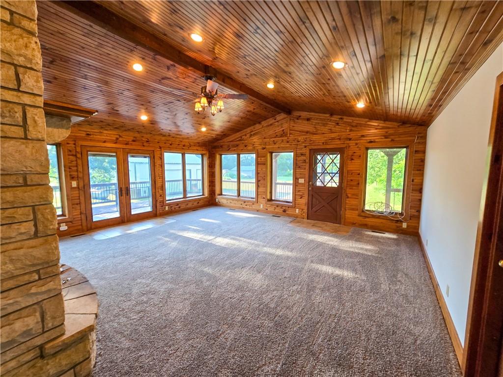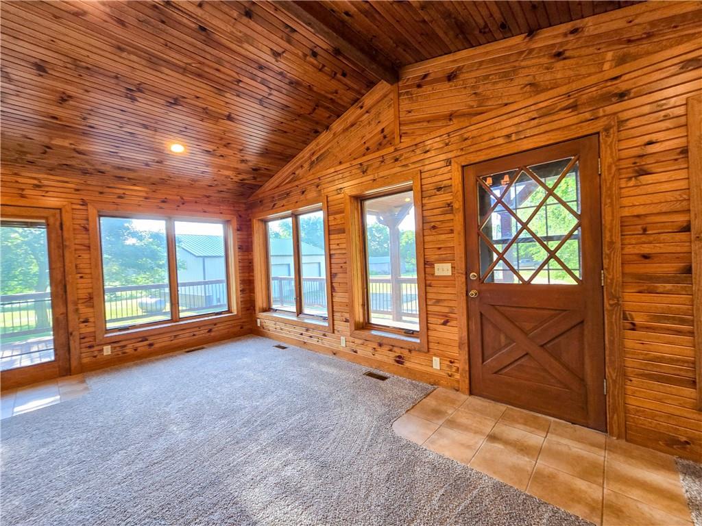 The Flint Hills are a special place, and this ranch provides the perfect setting to experience it firsthand. Sitting at the end of a long driveway, this Satterwhite Log Home is nestled in the heart of the surrounding acreage, which consists of hay meadows, native pasture, and nearly a half mile of Collett Creek with excellent hunting. A wooden wraparound porch that flows on three sides of the home. The house features two large living rooms, one with a propane fireplace and one with a traditional wood-burning fireplace. The master bedroom features an electric fireplace, two closets, and its own master bathroom. Two additional bedrooms and one bathroom provide plenty of room for family members or guests. The home features new carpet in all of the bedrooms and the living room and new vinyl flooring in the pantry and utility rooms. The farmstead includes a fully insulated Morton building that is heated and cooled by four mini-split units, resulting in supreme comfort. The shed provides a great work environment for a small business, tinkering on personal projects, or enjoying as a place to hang out. The horse barn features six 12x12' horse stalls with automatic waterers, and a separate area for tack, hay storage, and vet supplies. A covered riding area can be utilized to train horses and enjoy riding when Mother Nature doesn't cooperate. The surrounding terrain provides a picturesque place to leisurely trail ride as well as ample room to add an outdoor arena. The flint hills region in Kansas is home to world-class whitetail deer who call this farm home year-round. During the rut, there is no telling what may show up as bucks cruise in search of the next hot doe. As mentioned at the start, this farm offers something for everyone from the avid whitetail deer hunter to the equestrian. Farms in this area don't hit the market often, contact the listing agent today to schedule a showing! *Acreage is also listed under Heartland MLS #2580003 and #2580008