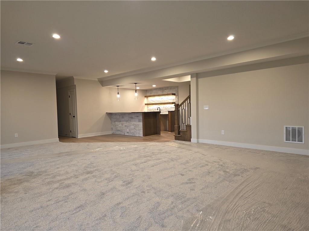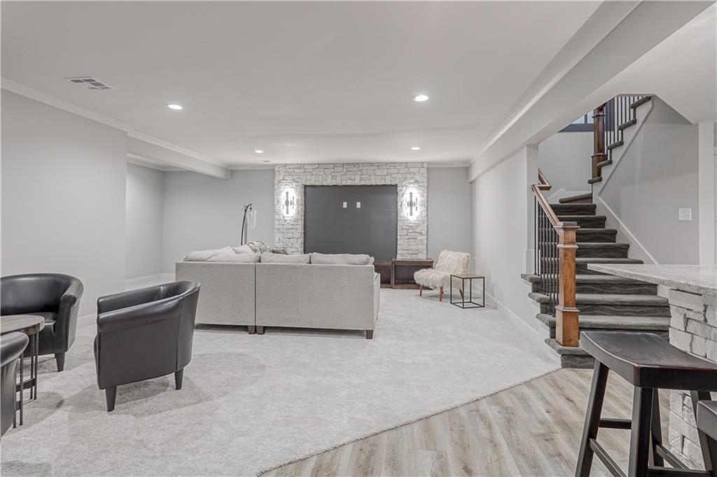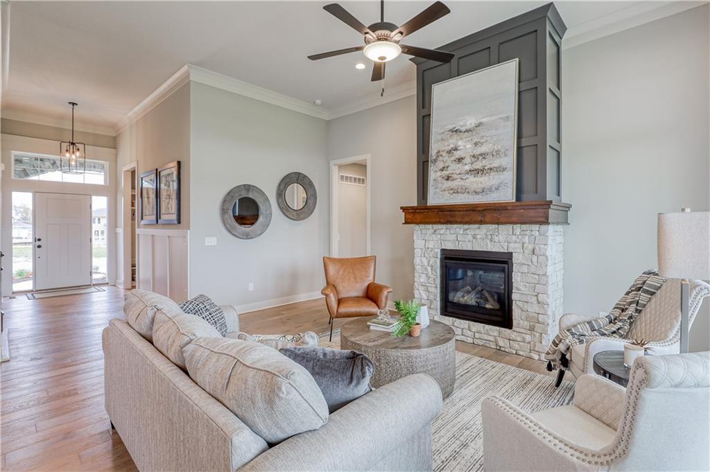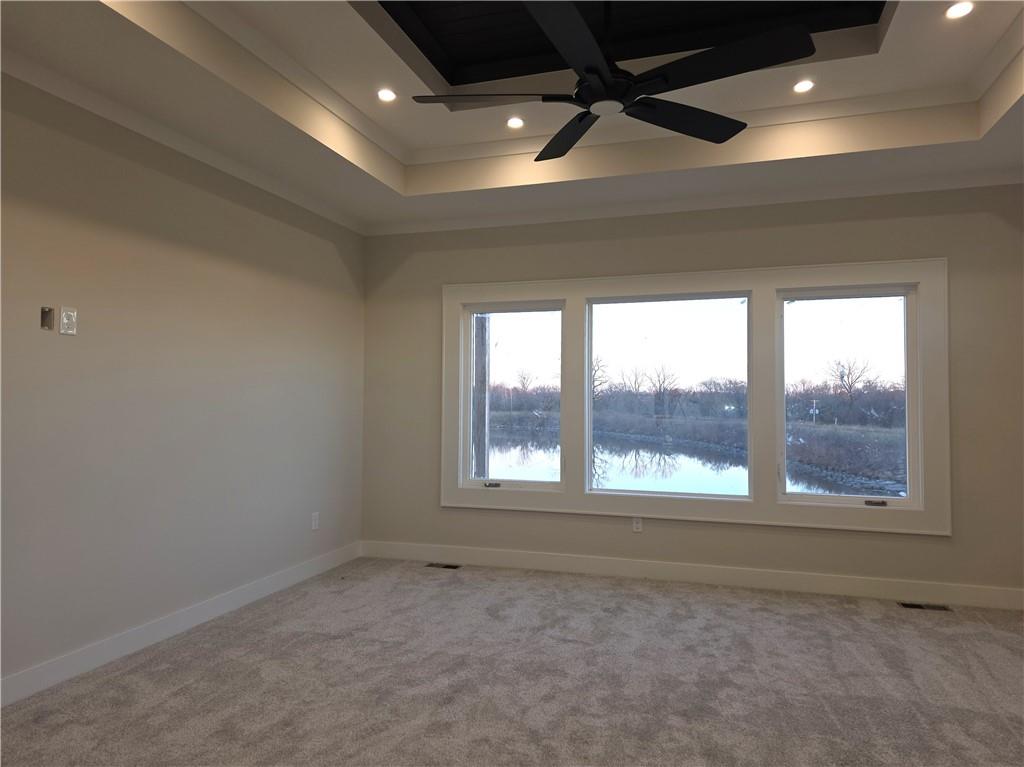 Lot 122 The "Prairie Rose" by McQueen Homes! Spectacular home and LAKE views in a GOLF COURSE COMMUNITY!! Professional photos coming soon. The finished photos and tour are from a previous similar home. Can be ready in 30 days or less! Reverse plan with open Great Room full of windows with fireplace. Open to the Kitchen and Dining Area with large Island & walk in pantry. The Primary Bedroom boasts a double box up ceiling and windows to view the lake! Additional higher transom windows on a feature wall for added light. Unique Primary Bathroom has a walk in shower and a stand alone tub with a view of the lake! Second Bedroom and Bath are on the main level. The Lower Level walkout Rec Room includes a wet bar, entertainment area and gorgeous upgraded sliding doors to your outdoor living. A full bath and Bedrooms 3 & 4 complete the lower level. Good storage! Large covered deck and additional uncovered deck for viewing the Lake and enjoying the outdoors as well as a large patio at the lower level walk out. All homes in the Boulder Estates come with irrigation system and fully sodded yard. Riprap seawall at property edge also included. Convenient highway access. Ten minutes to the Legends and 30 minutes to the airport and most other parts of the metro area as well as Lawrence. Community pool, play area, basketball, tennis and pickleball courts. Wonderful restaurant open to the public. Acclaimed Basehor-Linwood Schools!