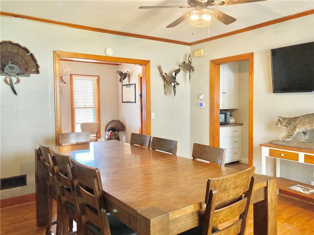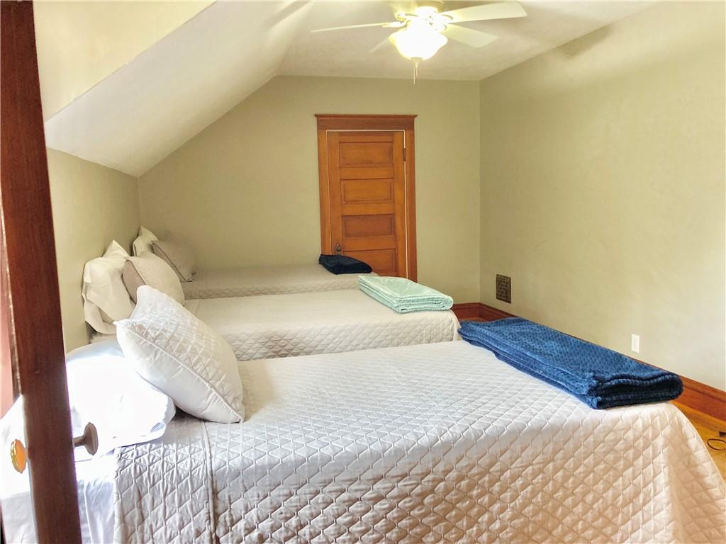 Tidy and traditional home on a quiet street! Move in ready OR great investment lodging opportunity! With beautiful hardwood floors and original woodwork, this property offers 4 spacious bedrooms with the primary suite on the main floor, an additional non conforming bedroom, full baths in the basement, main, and second floors, and a half bath on the mail level. You’ll find a large kitchen with plenty of space for cooking and eating on the other side of the charming walk through pantry, and a formal dining room, sitting room, and family room great for entertaining. A functional mud room off the back door makes this property excellent for high traffic, and the fenced in back patio is a great space for larger company. New upstairs shower, new roof in 2022, new AC blower motor and inside/outside unit in the last two years, and lots of maintenance to various systems and features. So much to offer in this small town home! Come see for yourself!