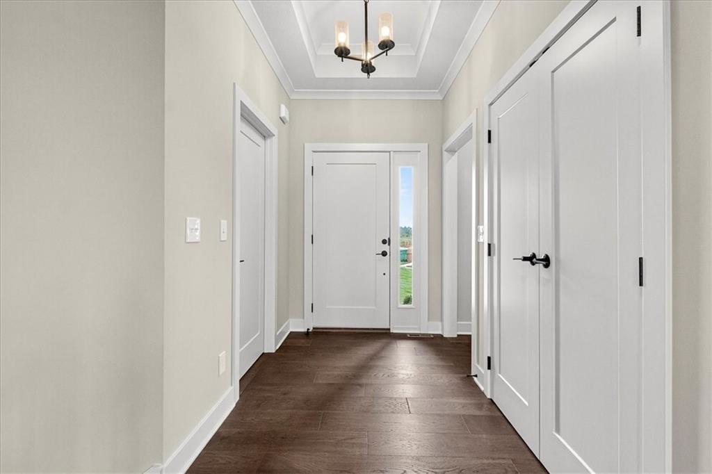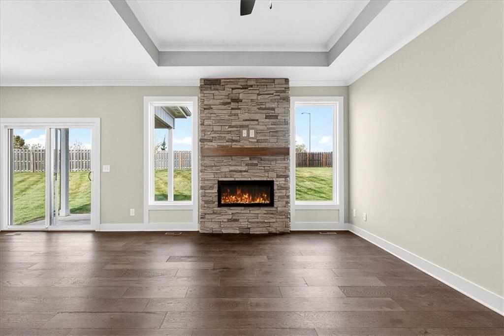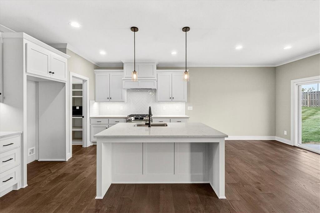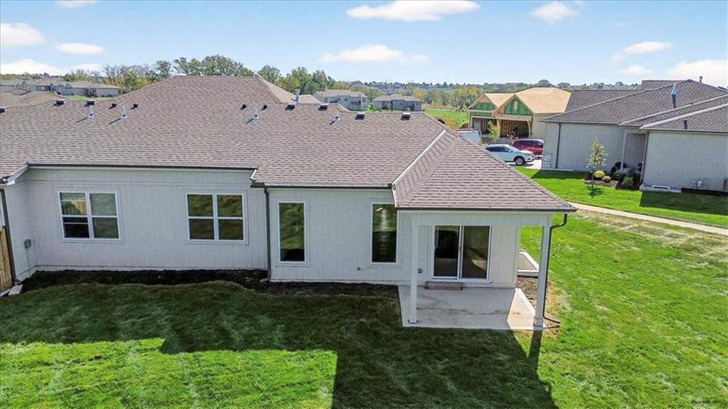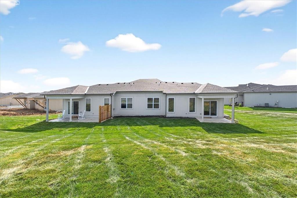 $15,000 Flex Spend From Builder To Buyer!! The Newberry by Lambie Homes is a stunning 3-bedroom, 2.5-bath reverse 1.5-story floor plan designed for modern living. The home is move-in ready and filled with luxury upgrades and perfectly positioned on a premium cul-de-sac lot. Step inside and enjoy the elegance of the Best Grade Interior Finish Package, showcasing top-tier quartz countertops, custom true shaker cabinets, and engineer hardwood floors. The gourmet kitchen is a chef’s dream with a wood hood and vent liner, under-cabinet lighting, and a gas range. The open-concept great room features a floor-to-ceiling cultured stone with 40" Allusion electric fireplace and abundant natural light. The primary suite offers a walk-in shower with bench seating, quartz-topped vanity, and generous walk-in closet. Additional upgrades include 8lb carpet padding for extra comfort and premium finishes in every space. Outdoor living shines with a covered patio and fully sodded, irrigated yard - maintained for you! Located in Lenexa with quick access to parks, shopping, dining, and major highways, this home blends upscale style with convenience. Experience the best of maintenance-free living. Open Wednesday-Sunday from 12:00p-5:00p - Reach out to agent for additional details on builder incentives for closings in 2025! *For Builder Incentive, contract must close on or before 12/31/2025*