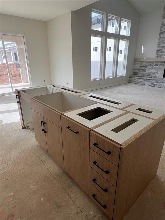 The Hudson Reverse 1.5-story by Rodrock Homes blends modern architecture with everyday livability in Sundance Ridge. Now at paint stage, this home showcases the Contemporary Elevation 4 package featuring upgraded garage doors, a 5-panel front door, linear 46" fireplace, metal roof, and black exterior/white interior windows. The open-concept main level highlights a sleek kitchen with large island, walk-in pantry, and designer finishes flowing into the great room with floor-to-ceiling windows and fireplace. The private primary suite offers a spa-inspired bath and walk-in closet, while the finished lower level adds a spacious rec room and two bedrooms. Photos are of a prior model and may show optional features. Enjoy The Village amenities—two pools, clubhouse with fitness center, indoor gym, pickleball, bocce, playground, and trails—in Blue Valley Schools. Just 11 min to Blue Valley High, 8 min to Price Chopper, 16 min to BluHawk, and 16 min to Heritage Park.