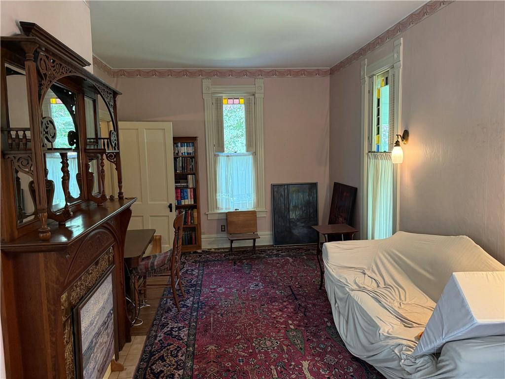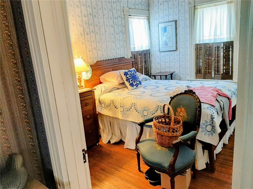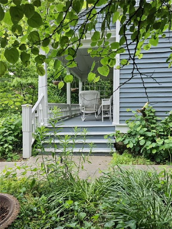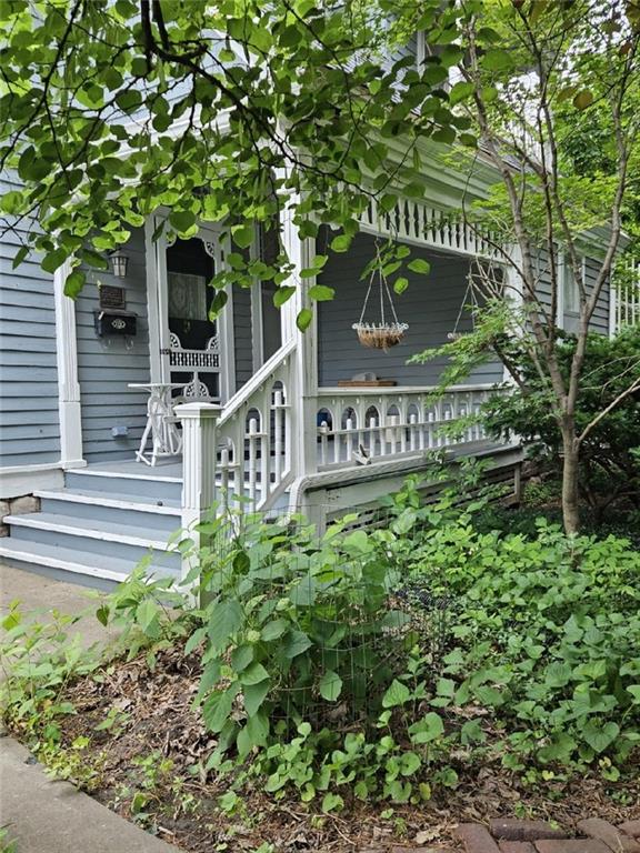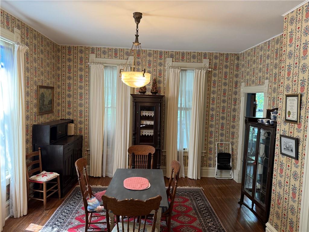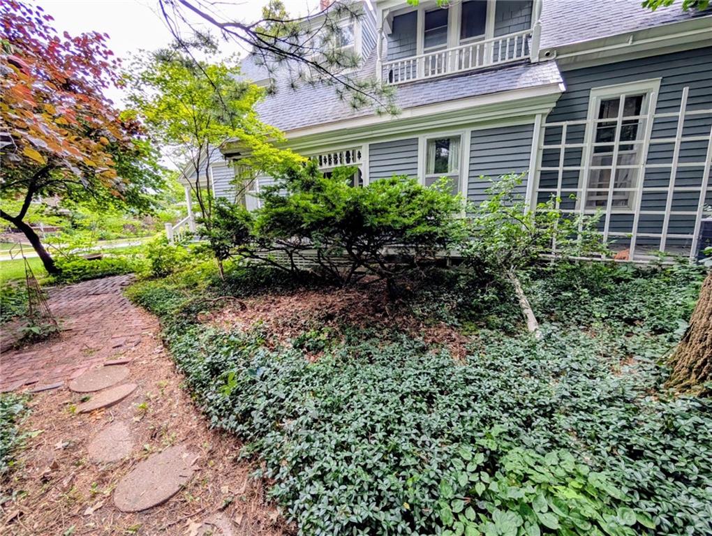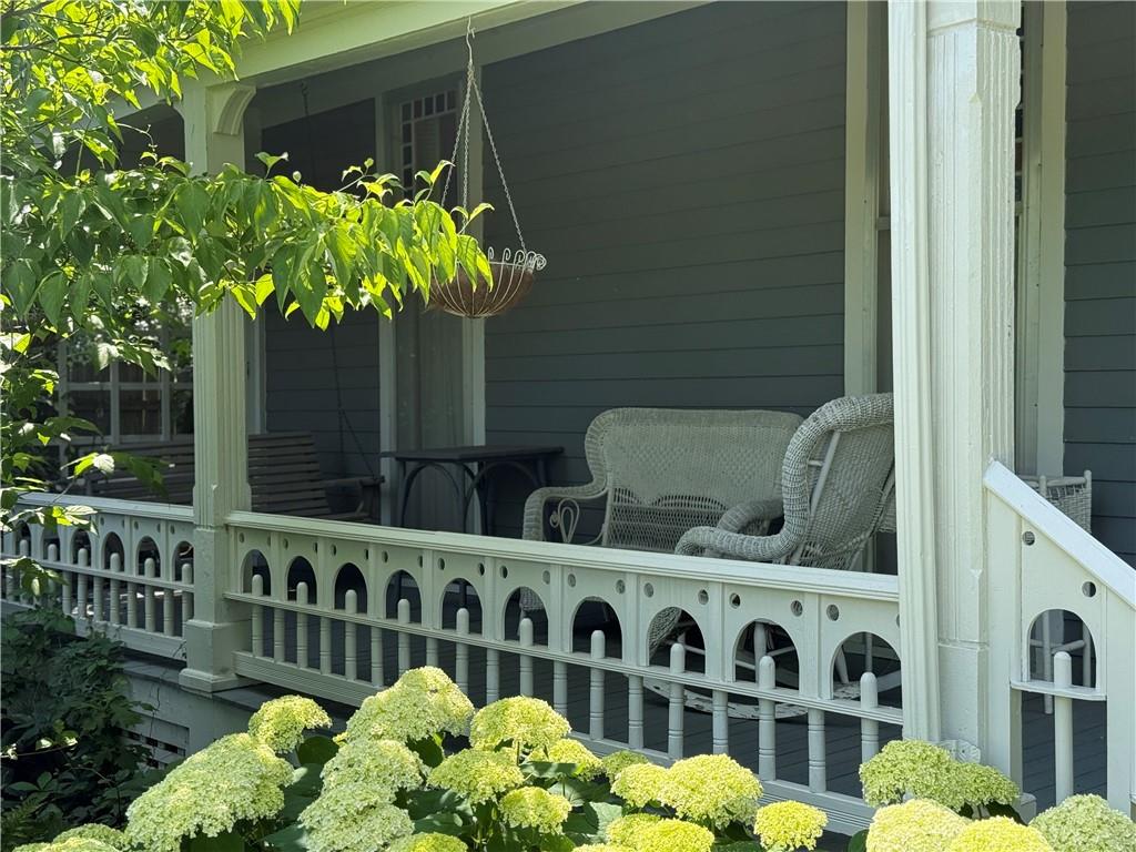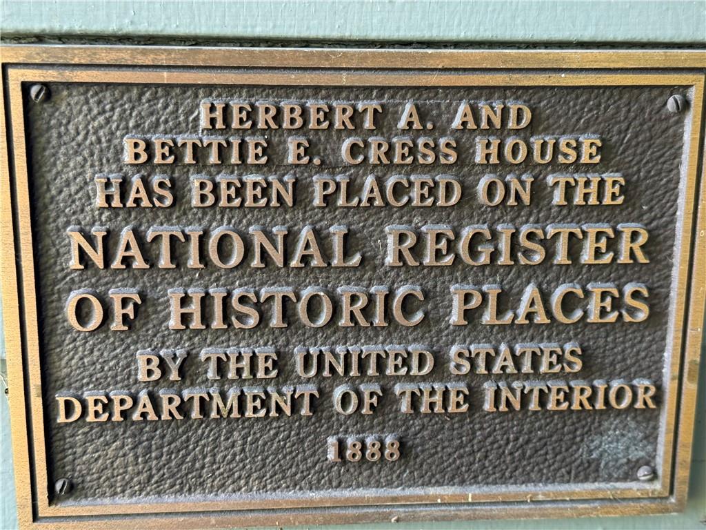 Historic Gem on the National Register – Timeless Elegance on a Corner Lot Nestled on a picturesque .3-acre corner lot, this stately two-story historic home is a rare opportunity to own a piece of the past. Listed on the National Register of Historic Places, the residence combines period charm with modern comforts. Boasting 4 spacious bedrooms and a beautifully updated bathroom featuring a classic clawfoot tub, this home offers timeless sophistication. Step inside to admire the original hand-carved tile and walnut fireplace, rich hardwood floors, and woodwork adorned with historic trim. Stained glass transoms and windows throughout add a splash of color and artistry to every room. Enjoy morning coffee or evening breezes from two covered porches, or unwind in the expansive sunroom filled with natural light. The lush garden, cobblestone walkway, and patio create a private outdoor sanctuary, ideal for entertaining or quiet reflection. A detached 2-car garage provides convenience, while the property's double-lot feel and thoughtful layout offer privacy and curb appeal. This architectural treasure is more than just a home—it's a lifestyle steeped in history and beauty.