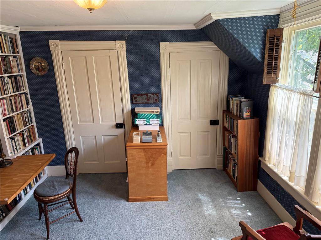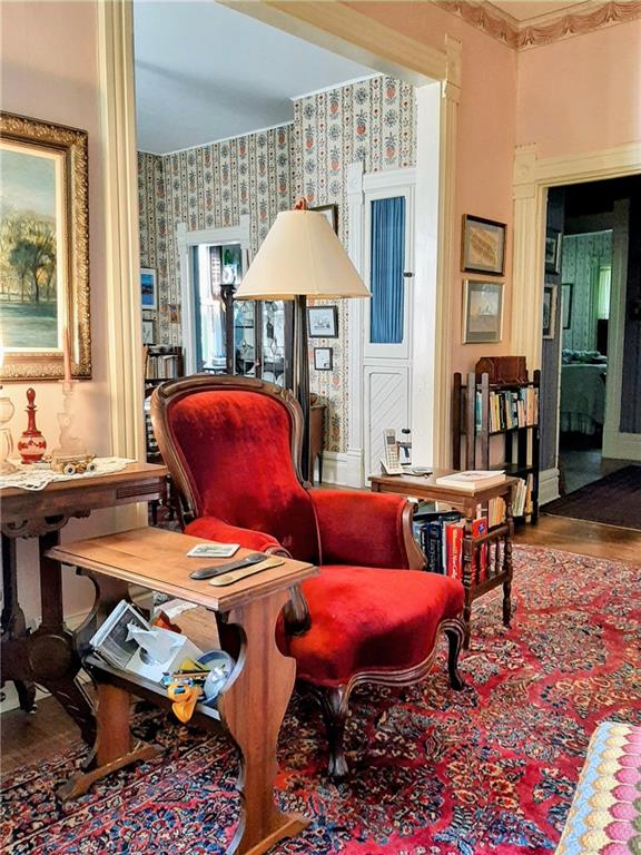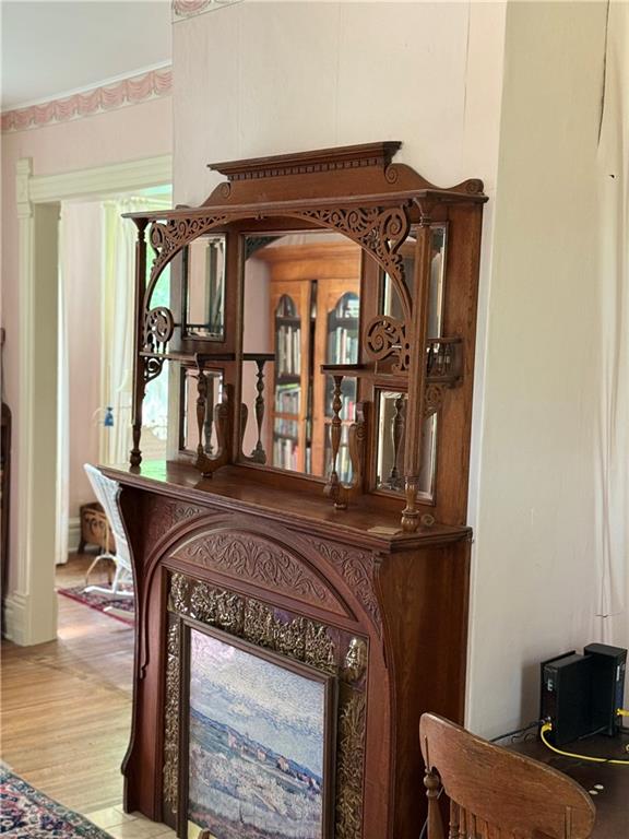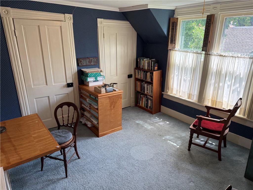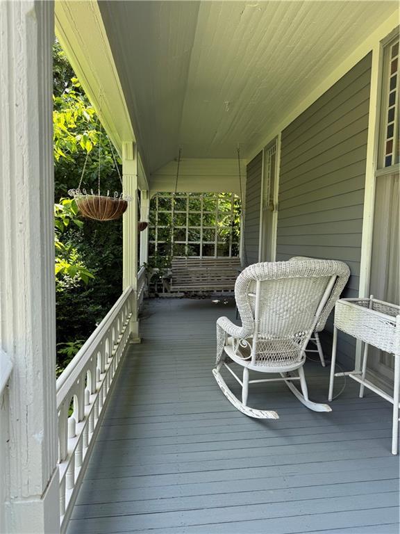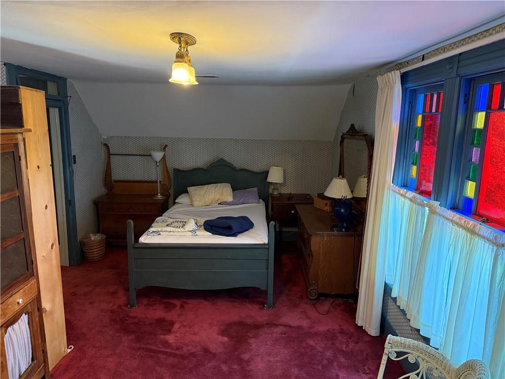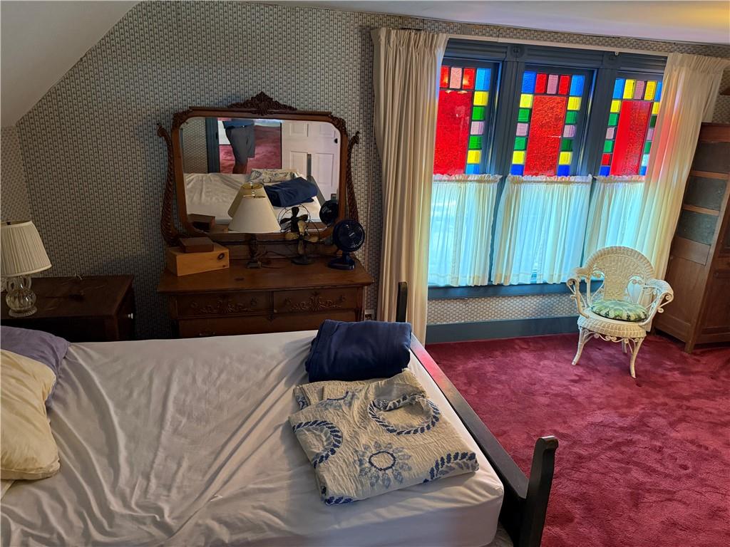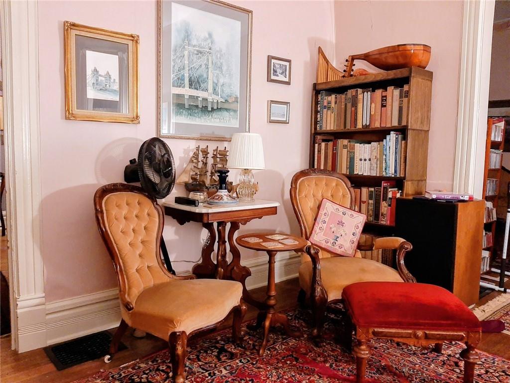 Historic Gem on the National Register – Timeless Elegance on a Corner Lot Nestled on a picturesque .3-acre corner lot, this stately two-story historic home is a rare opportunity to own a piece of the past. Listed on the National Register of Historic Places, the residence combines period charm with modern comforts. Boasting 4 spacious bedrooms and a beautifully updated bathroom featuring a classic clawfoot tub, this home offers timeless sophistication. Step inside to admire the original hand-carved tile and walnut fireplace, rich hardwood floors, and woodwork adorned with historic trim. Stained glass transoms and windows throughout add a splash of color and artistry to every room. Enjoy morning coffee or evening breezes from two covered porches, or unwind in the expansive sunroom filled with natural light. The lush garden, cobblestone walkway, and patio create a private outdoor sanctuary, ideal for entertaining or quiet reflection. A detached 2-car garage provides convenience, while the property's double-lot feel and thoughtful layout offer privacy and curb appeal. This architectural treasure is more than just a home—it's a lifestyle steeped in history and beauty.