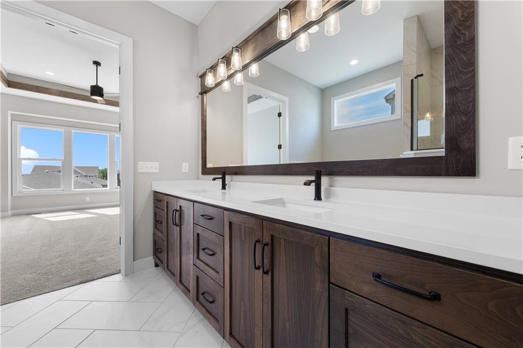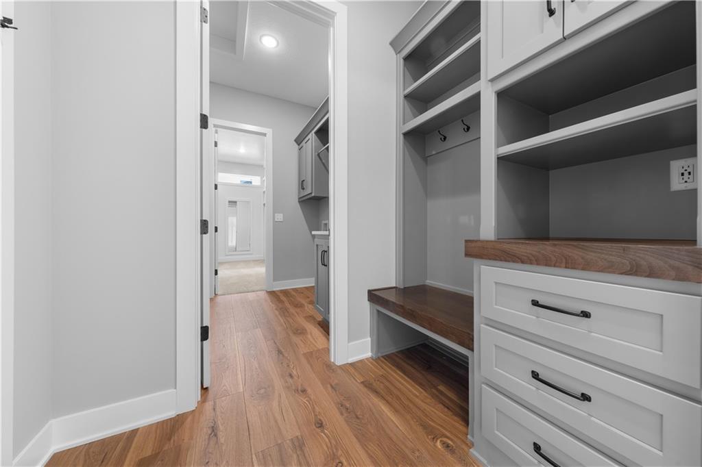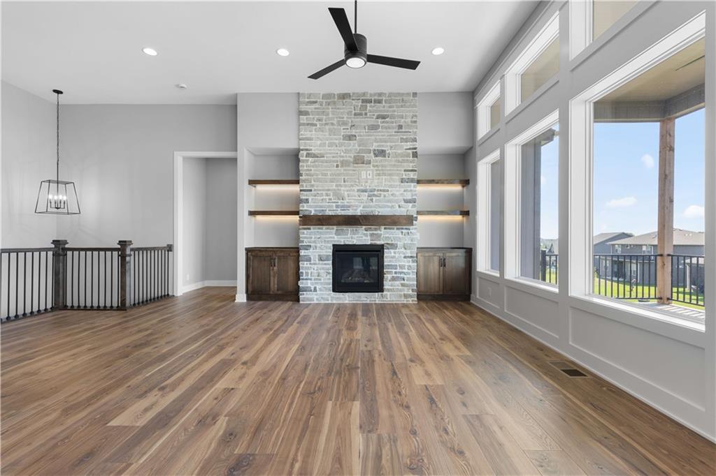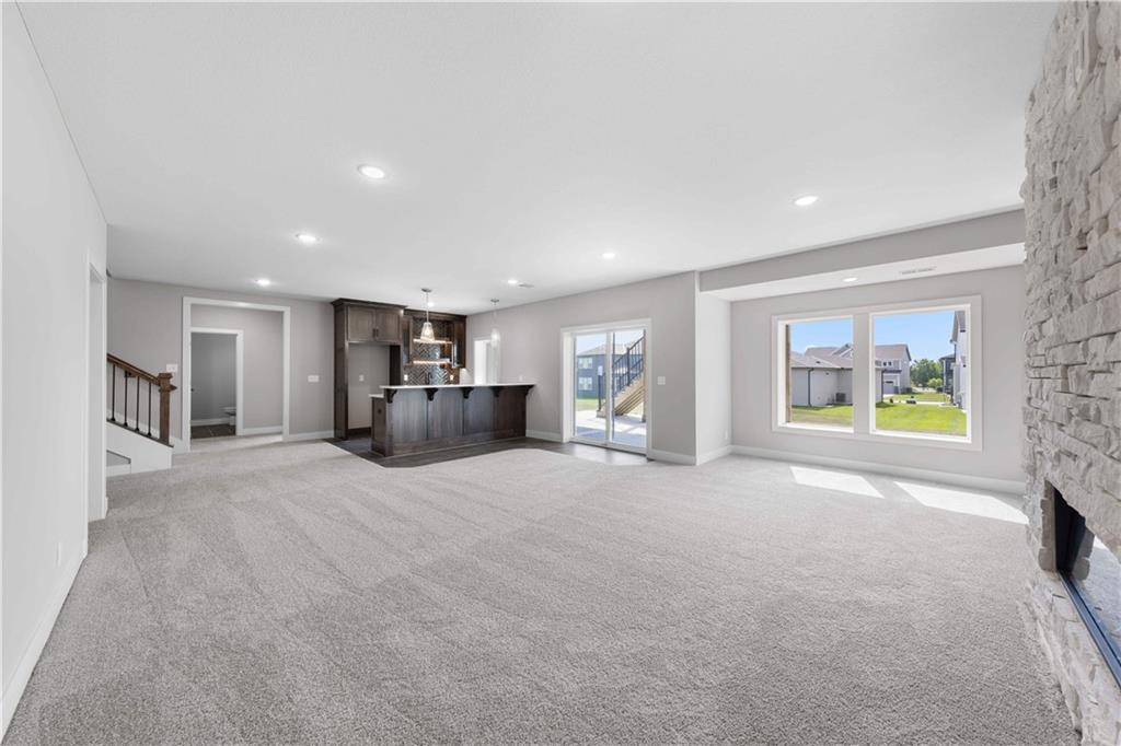 MOVE IN READY! Welcome home to the WINDSOR by Inspired Homes, a Reverse 1.5 Story that boasts over 3,500 SF and is situated on one of the communities FEW WALKOUT LOTS! As you enter the home, you'll be greeted with a large kitchen featuring stained cabinetry and an oversized 10-foot island, creating the perfect entertainer's space. This home also includes a huge low maintenance, covered deck with aluminum rails, composite decking & stairs leading down to a lower patio. Designer options for this home feature a full basement wet bar, wood trim ceiling & wall details, upgraded lighting, upgraded quartz countertops, built-in cabinets & shelving in great room, an additional fireplace in the basement, direct access to laundry room from the primary closet, and a HUGE walk-in pantry! This home includes extra deep garages, 8’ garage & front doors, irrigation systems, HVAC humidifier, garage openers and gas cooking with built in SS GE Profile appliances, low-e Pella windows and doors, custom wood cabinetry, tray ceilings, and so much more! Located in the highly sought-after Pryor Ridge neighborhood in Lee's Summit, this property offers a lifestyle characterized by both comfort and convenience. Residents can indulge in community amenities including a junior-competition sized swimming pool and sun cabanas, a large playground, pickle ball and basketball courts, an off-leash dog park, local walking trails, and expanses of green space to enjoy. Notably, shopping destinations and restaurants are just minutes away, providing homeowners with the opportunity to enjoy the charm of a countryside atmosphere while benefiting from the practicality of urban living right in Pryor Ridge. ***BUY WITH PEACE OF MIND, the convenience of new construction backed by a 2-10 Home Warranty, offering 10 year structural, 2 year mechanical, 1 year workmanship PLUS in house warranty representative! Photos are of actual home.