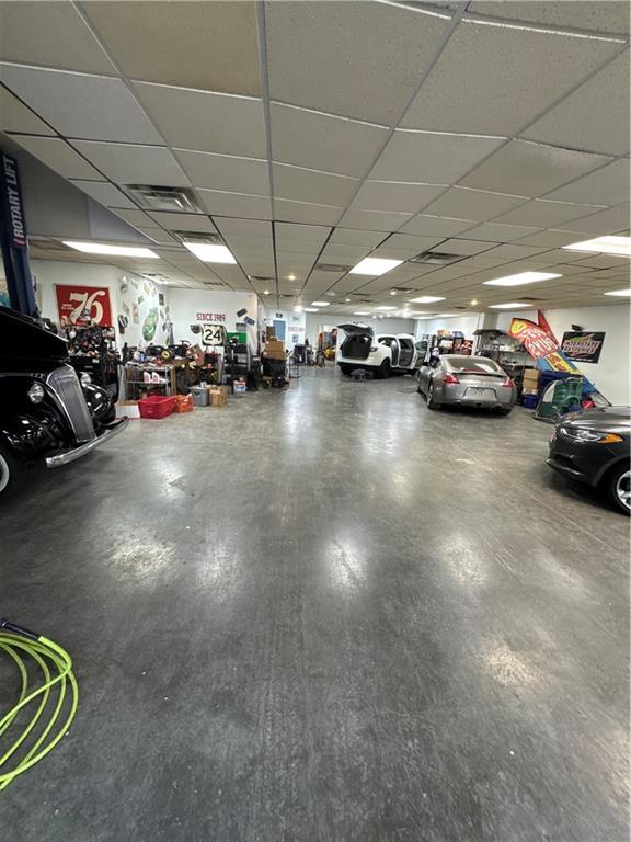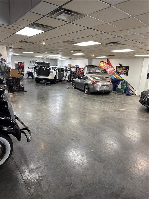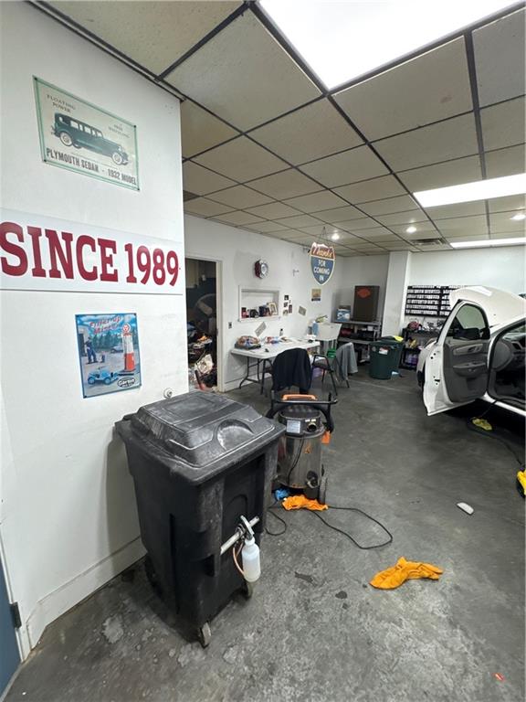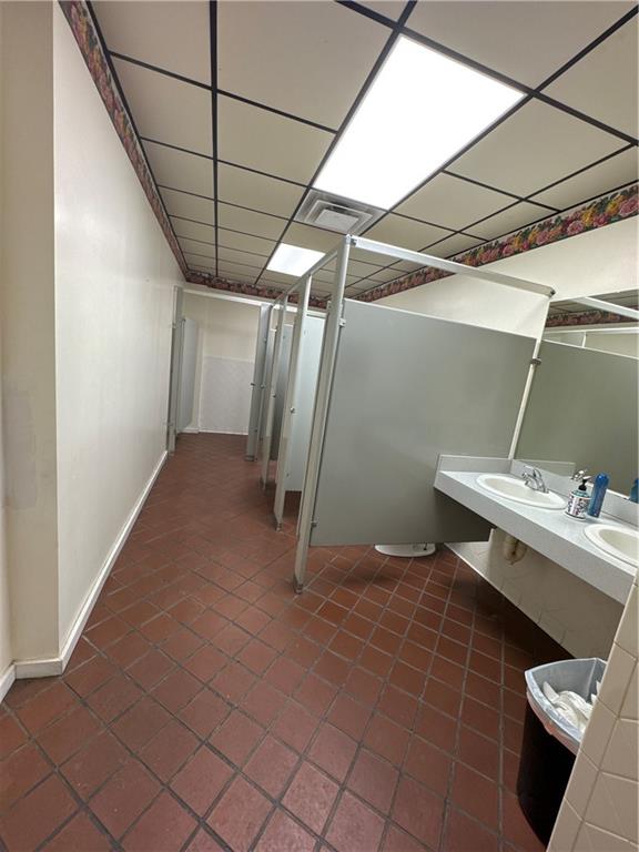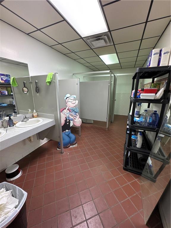 Below grade area featuring tile patterned flooring and a drop ceiling