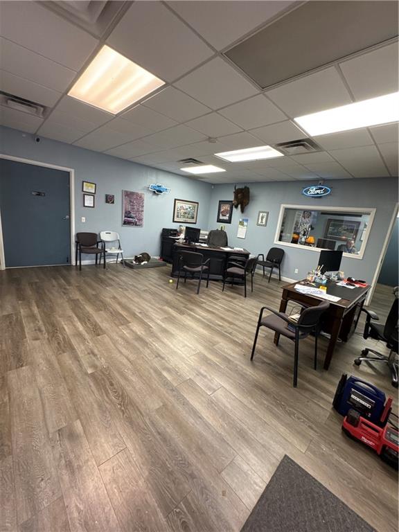 Office featuring a paneled ceiling and wood finished floors