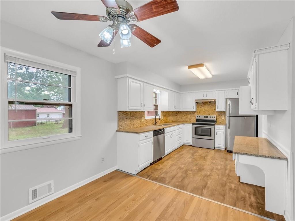 Lovely ranch on a great lot, all new interior paint and hardwood floors/ LVP throughout the main areas of the home. Open floor plan allows for natural light to flow through the home. Recently upgraded kitchen features granite counter tops and newer backsplash and stainless appliances that stay in the home! Main hall bath has been updated with new tile surround, check this one out!