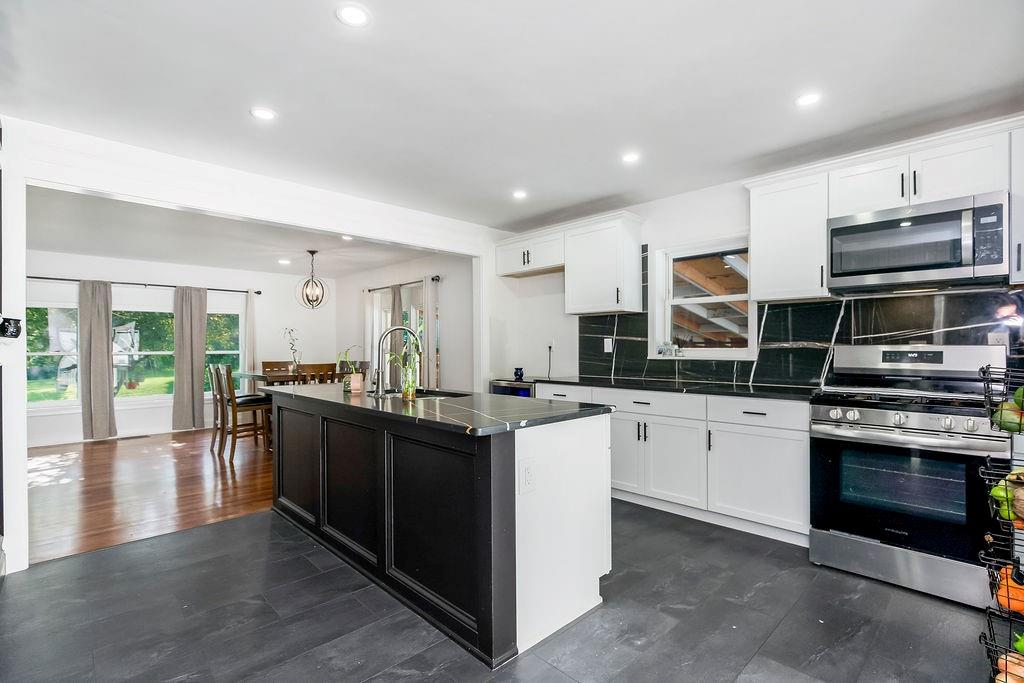 This beautifully updated ranch-style home sits on close to an acre and delivers a private outdoor retreat ideal for entertaining, hobbies, and everyday living. A set of double ranch-style doors opens directly to the backyard oasis, featuring a stamped-concrete patio with an outdoor cooking and seating area, plus a dedicated workshop space — all within a fully fenced yard. Inside, the home features a modern gourmet kitchen, seamlessly connected to the dining and living areas for an inviting open-concept layout—perfect for everyday living and entertaining. The main level includes two bedrooms, including a primary suite with an impressive 10×10 walk-in closet. The finished lower level adds two more bedrooms and a huge entertainment area for versatile use. Thoughtfully updated with quality and care throughout, this home offers space, style, and a rare outdoor setting you won’t want to miss.