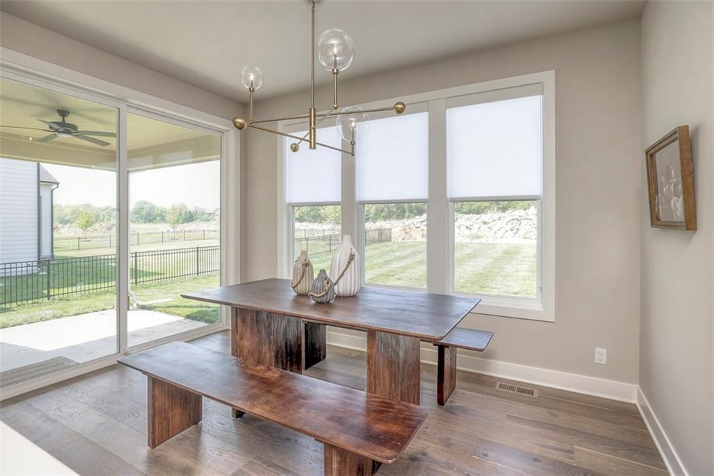 This stunning 2 story, is the Sullivan II by SAB Homes. The main floor is bright and welcoming, featuring ample amounts of cooking, prepping and storage space in the kitchen including a walk in pantry. A main floor bedroom or study privately located behind the kitchen area. This plan features a true dinning room with a bonus breakfast area in the kitchen as well. In the upstairs you'll find a large primary suite, with a large en-suite including features like a free-standing tub, large walk-in shower with two shower heads, dual sinks, toilet room and a large walk in closet. Upstairs you'll find 3 additional bedrooms, one with its own private bathroom, the other two featuring a "Jack and Jill" bathroom. Basement stubbed for bathroom and agree window well with the potential to add an additional bedroom. 14'x12' covered patio off great room and breakfast area. End of November estimated closing date. All in the coveted Heritage Ranch, A Lambie-Rieke Community, with Amenities Galore such as state-of-the-art pool, clubhouse, trails, pickleball, play area, half-court basketball, ponds and so much more coming soon! This community provides a wonderful lifestyle and right next to the 1,238 Acre Heritage Park with Dog Park, Sports Parks, Golf, Lake, Trails and so much more! Contact Onsite Agents for Estimated Completion of homes on site, and design selections. Our welcome center is now open, located at LOT 65. Open 7 days a week! Renderings &/or images may show features that are subject to change. Sq Ft & Taxes are estimated. Home is under construction. LOT 6. Welcome Home to Heritage Ranch - one of the last NEW Home Communities in Johnson County!