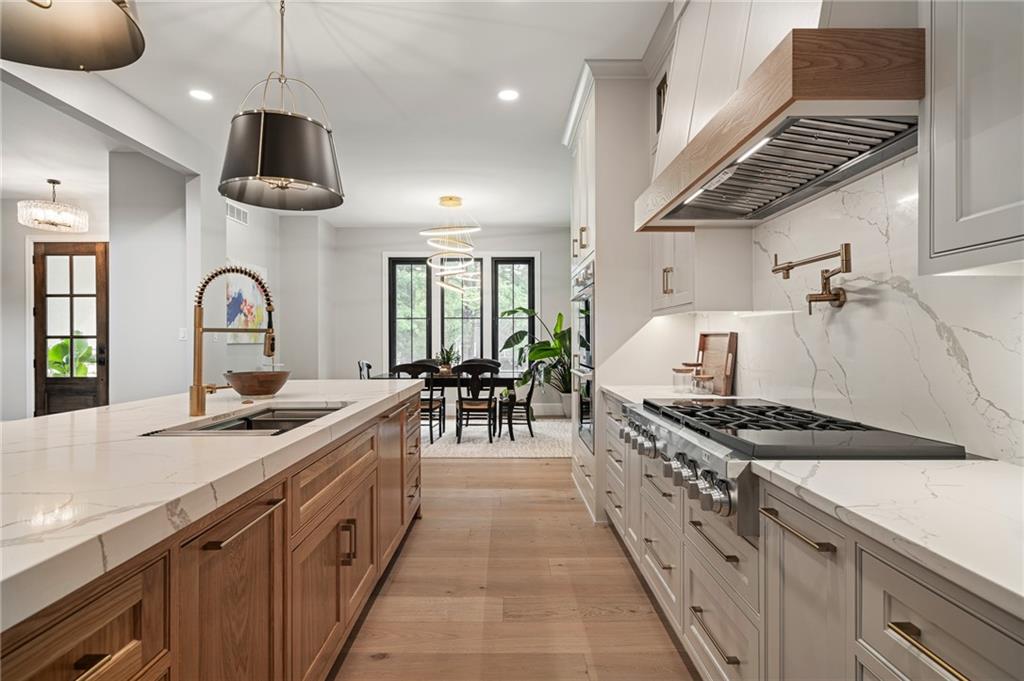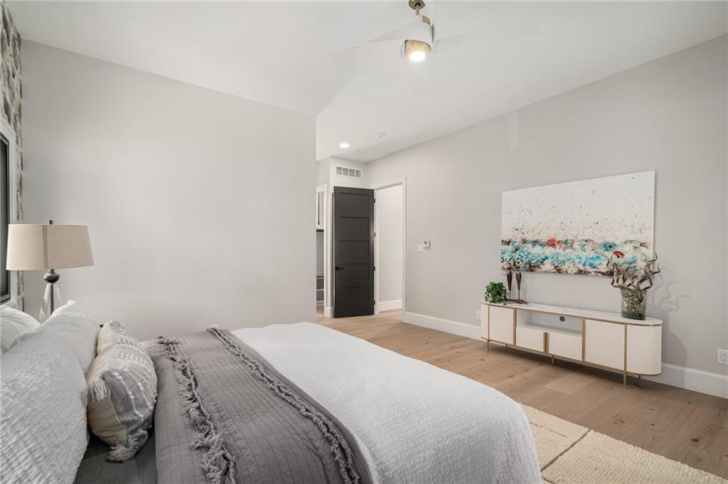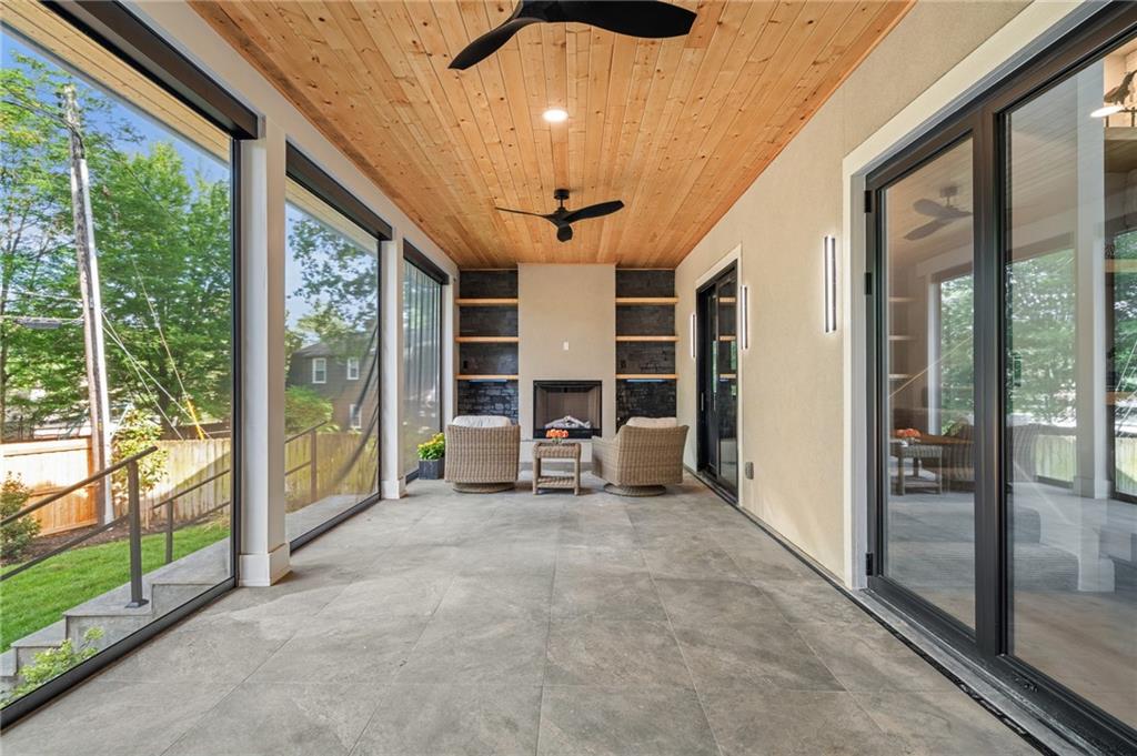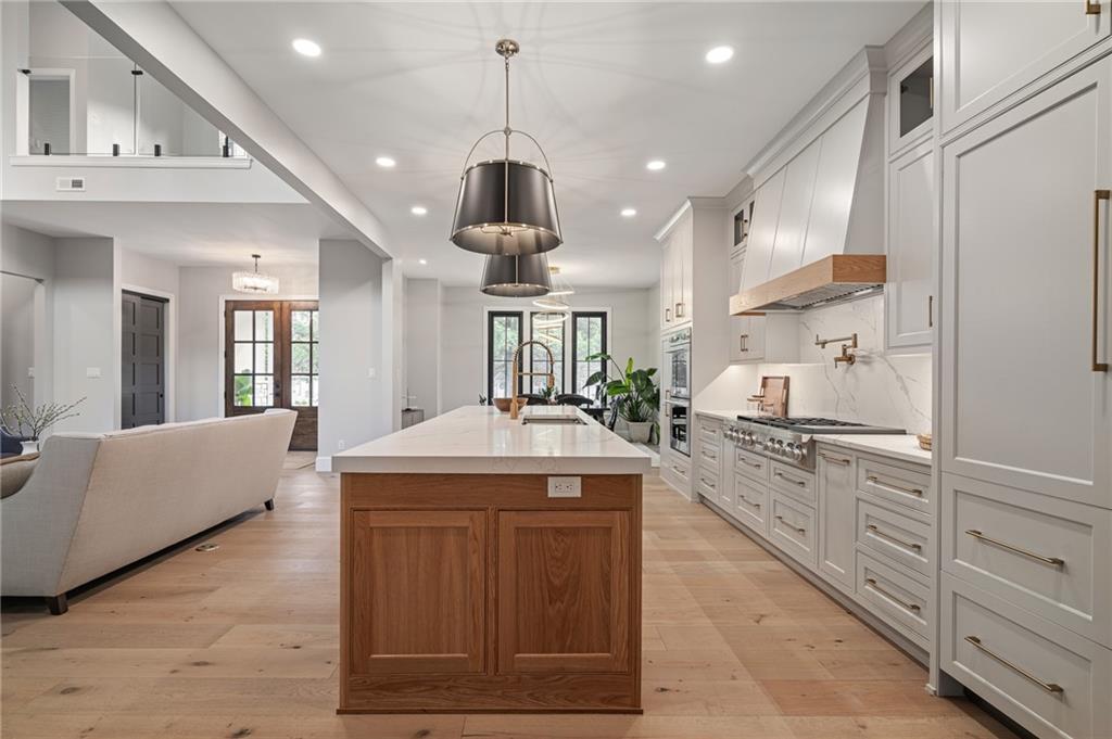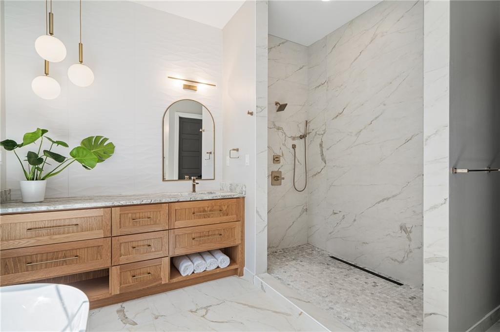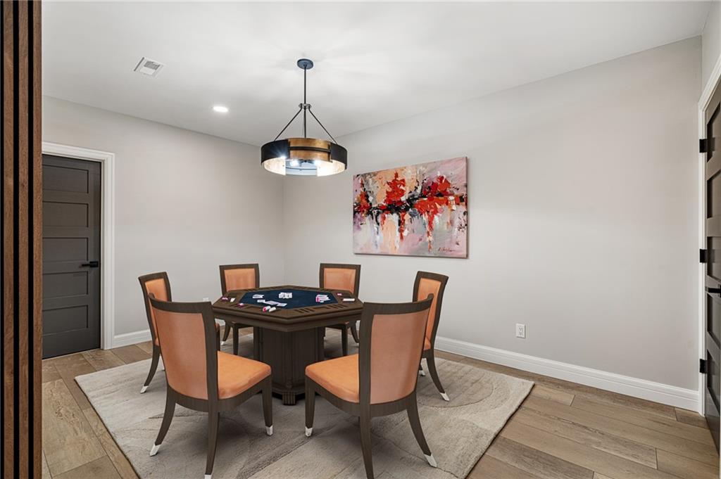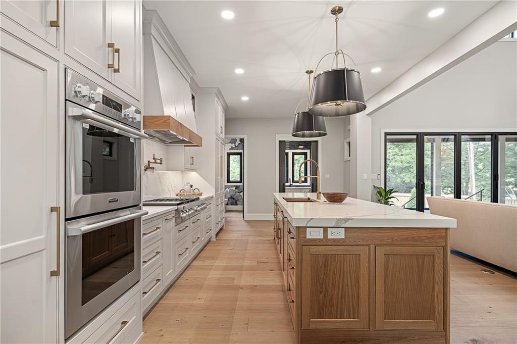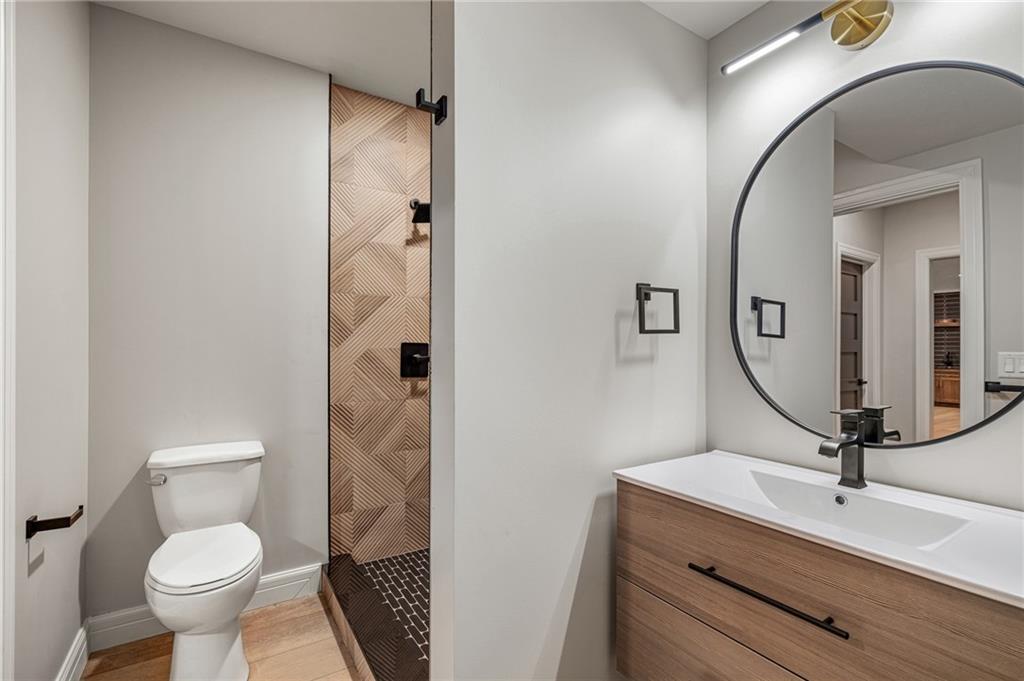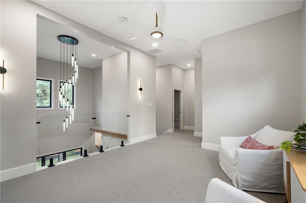 This 6-bed, 4 full plus 2 half bath, luxury home has exceptional quality and exclusive features. It seamlessly blends elegance, comfort, and intelligent design. From the stately front porch with self-watering planters, to the grand double door entrance, every detail reflects timeless sophistication. Inside, you will see the wide, open space with lofty ceilings, engineered white oak floors, and full glass, bifold, accordion doors that open to a covered lanai with a gas fireplace and twin waterfalls creating a seamless indoor-outdoor flow. Ceiling fans cool the warm days; lush landscaping is kept pristine by a full irrigation system. The magnificent Chefs kitchen has high quality, custom cabinetry, quartz counters, statement backsplash, hidden spice and utensil drawers, and a walk-in pantry with coffee bar and microwave. A stylish mudroom serves as a staging space for catered events. The kitchen flows into the dining area and vaulted living room, anchored by a dramatic stone, electric fireplace. A chic powder room adds guest comfort. The main level primary suite offers lanai access and a spa-like bath with jetted tub, walk-in shower, and dual quartz vanities—“hers” has custom storage for styling tools. Upstairs you are greeted by a spacious loft with a great view, three bedrooms, two baths, and a huge flex room that can be a home office, studio, or guest suite. You will fall in love with the whimsical and functional laundry room that gives a nod to Kansas City’s historic Nelly Don and the practicality of spacious storage, a convenient sink, and a huge island for laundry or crafts. The lower level is an entertainer’s dream! It is certainly a high-end mancave, wired for multiple TVs-no game left behind-plus wet bar, and two more bedrooms! It has a secret bonus room as well that can be a home theatre, golf simulator, or home gym. Thoughtfully designed and beautifully executed, this once-in-a-lifetime home delivers the ultimate in comfort, luxury, and lifestyle