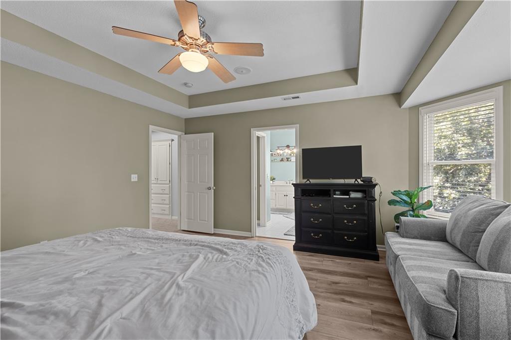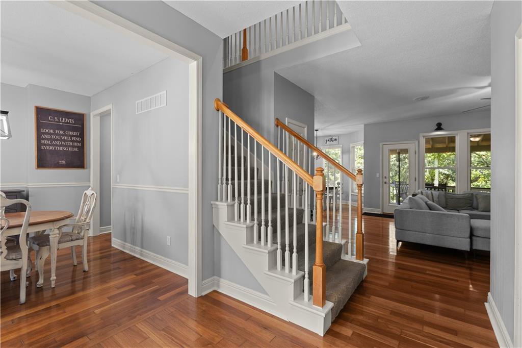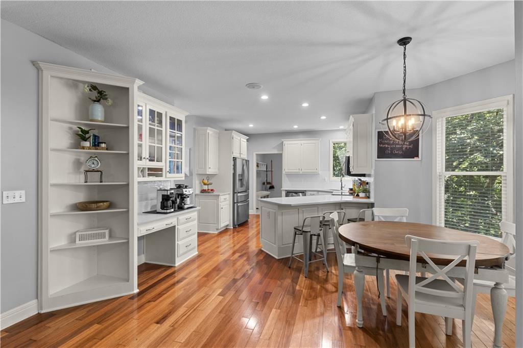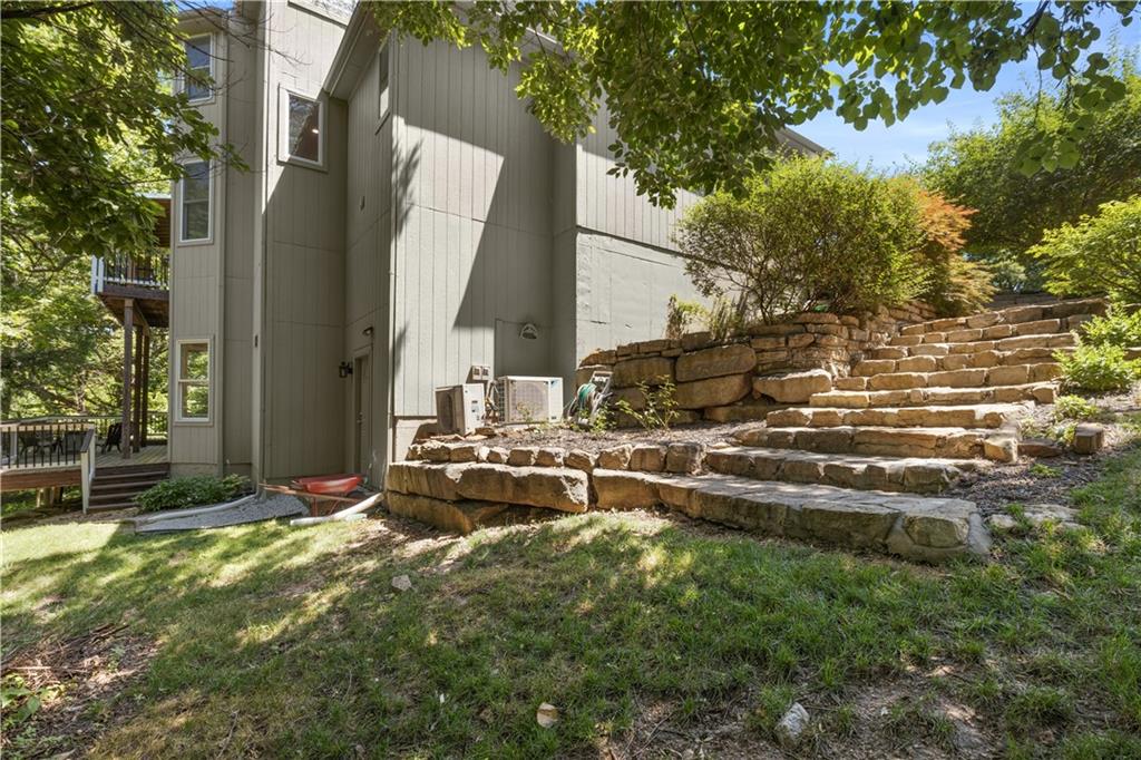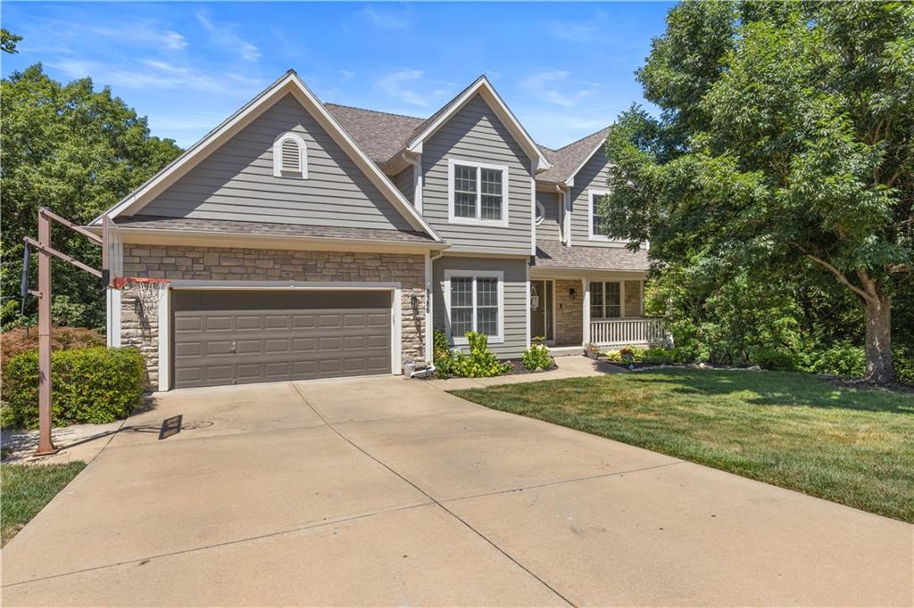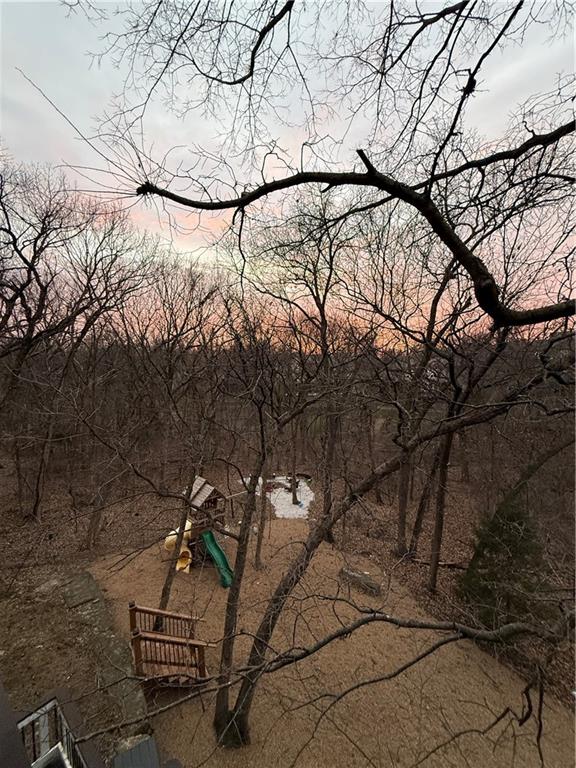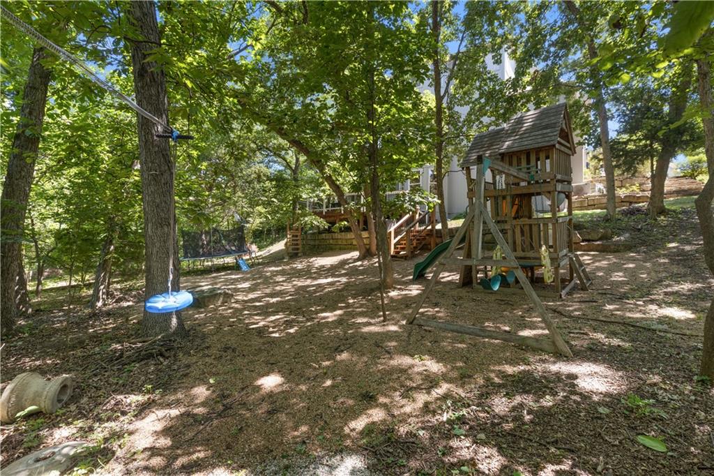 Sellers are open to all offers! Very motivated! Welcome to this custom two-story home in Timber Trails, nestled on a full acre of wooded privacy in growing De Soto. One of the largest lots in the neighborhood, this property offers space, nature, and tranquility. Enjoy outdoor living with upper and lower decks, a covered treetop retreat, an in-ground fire pit, and a tree-filled yard perfect for a treehouse, there is even a zip line for extra backyard fun. Inside, you'll find hardwood floors, large windows, and an inviting, open layout. The updated kitchen connects to a functional mudroom. All four bedrooms, including the primary suite, are located upstairs. The primary bedroom features low-maintenance LVT flooring, while the others include spacious closets, one with a private bath, the other two connected by a Hollywood bath. The finished, two-level basement offers a bar, play area, and room to grow with a room stubbed for a full bathroom. Additional storage areas in the utility room and attic above garage. Garage also includes an EV (240) outlet. Recent updates: HVAC, decks, countertops, lighting, and more. Don’t miss this peaceful, private retreat—schedule your showing today!