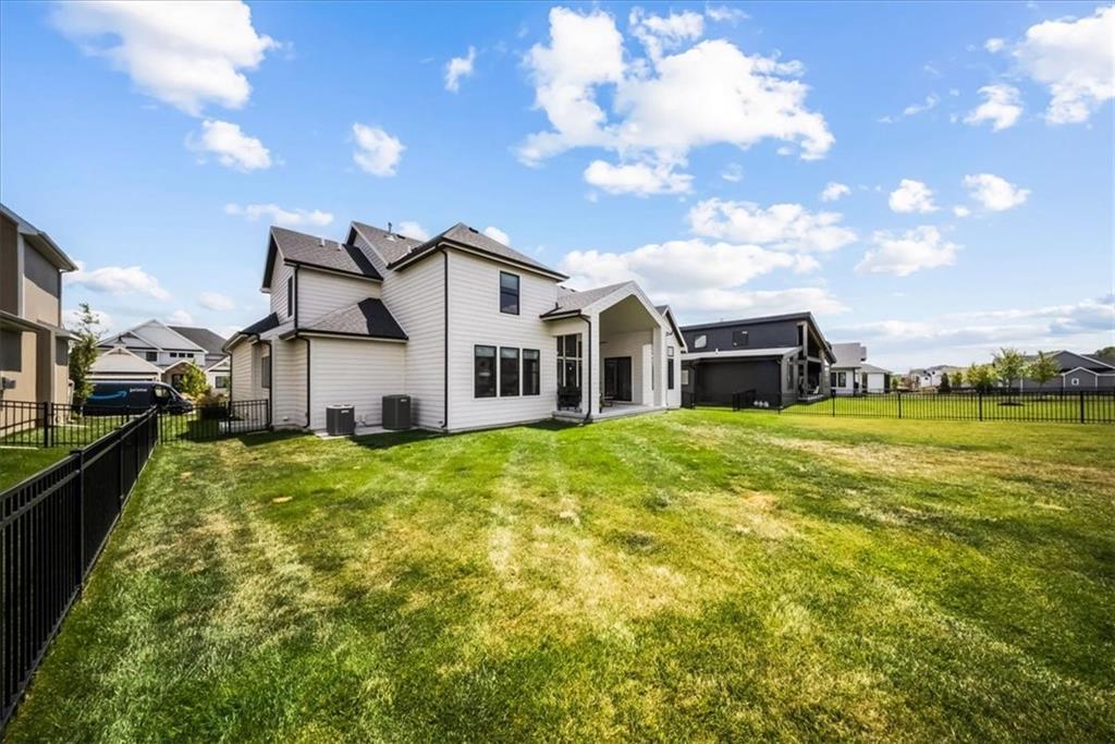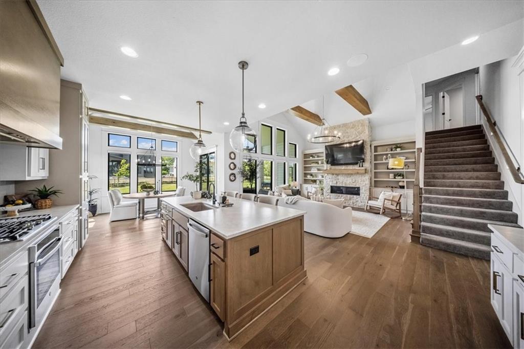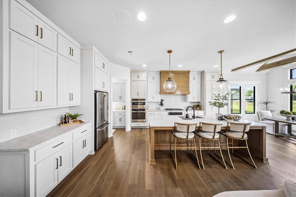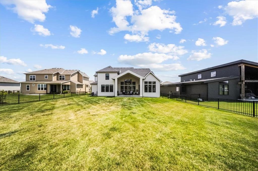 Incredible New Price! Enjoy the holidays and luxury living in sought-after Century Farms! This stunning 1.5-story, 2 yr old home, blends timeless elegance with modern design and is packed with high-end upgrades that set it apart. Bathed in natural light, the open layout features soaring vaulted ceilings with rustic wood beams and 8’ interior doors for a grand, airy feel. The gourmet kitchen with prep area, double ovens, large pantry and spacious great room flow seamlessly to a large vaulted covered patio—perfect for entertaining or relaxing outdoors. Recent Updates include: custom window treatments throughout, fenced backyard, a water softener and epoxy garages. Thoughtfully designed for comfort and style, this home includes a freestanding tub, his-and-hers walk-in closets, secondary bedrooms with all their own ensuite, double laundry, and expanded garage for ultimate convenience. The real stone exterior and sleek black windows offer incredible curb appeal on a spacious, level lot—ideal for a future pool. Located in one of Overland Park’s premier neighborhoods, Century Farms offers resort-style amenities including a sparkling pool with slide, pickleball courts, family center, fitness room, fire pit, play areas, community garden, and more. Just minutes from top-rated schools, Heritage Park, shopping, and the Coffee Creek trail system—with quick access to Hwy 69 off 167th Street. Why settle for standard when you can have standout? This is more than a home—it’s a lifestyle. Schedule your private showing today!