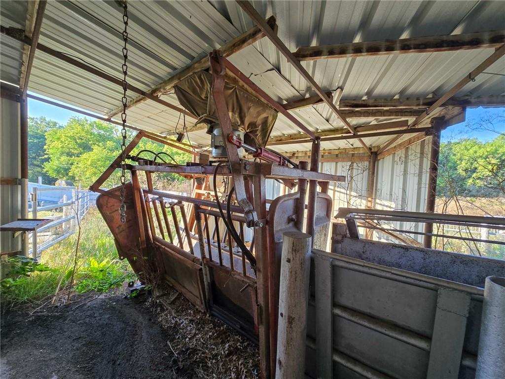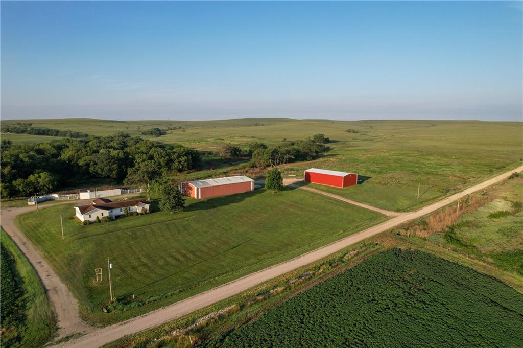 Located between the fields along the Neosho River and Flint Hills pasture, this 8.6+/- acre farmstead offers a rural lifestyle with a combination of living space, shop buildings, and fenced pasture with amazing Flint Hills views. The home is a 2,456 sq. ft. ranch-style layout with 4 bedrooms and 2 full bathrooms. It includes a high-efficiency heating and cooling system, a new water heater, and all major appliances: refrigerator, range/oven, dishwasher, washer, and dryer. A single-car attached garage adds secure parking and utility space. Outside, the property has been improved to support small-scale livestock operations or hobby farming. A 100' x 50' metal shop building includes a full concrete floor; the southern 25 feet is insulated and heated, offering excellent potential for a year-round workshop or climate-controlled storage. The second outbuilding is an 80' x 40' open-front pole barn with a gravel base—ideal for storing hay, trailers, or machinery. Livestock infrastructure includes a pipe corral system, circle tub, and hydraulic squeeze chute—efficient for handling cattle or other animals. The fencing is in place for approximately 5 acres of native grass pasture, providing turnout space for horses or room for a small cow-calf operation. Access is by gravel county road, and utilities are already established, making this property move-in ready and operational. The setting is private yet accessible, surrounded by open prairie and native grasslands characteristic of the eastern edge of the Flint Hills. It offers enough acreage to manage livestock without requiring extensive upkeep, making it an appealing choice for those wanting functionality without large-scale commitments. This farm provides an efficient mix of residential comfort and functional improvements for anyone seeking land with utility, storage, and the infrastructure to support livestock or hobby farming in east-central Kansas. Contact the listing agent today to schedule a showing.