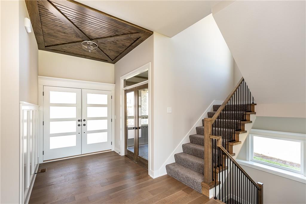 Welcome to Overland Parks highly sought after community, Southern Meadows. This award winning Makenna I 2 story home by Gabriel Homes sits on lot 57 and features everything you are looking for. Fantastic level lot with serene farm views and dynamite curb appeal. This wildly popular floor plan features a contemporary modern elevation, 4 bedrooms, 3.5 baths and main floor office perfect for those work from home days. Enjoy a large family room that features impressive fireplace with built in’s and large windows. Opens to an incredible kitchen filled with custom cabinets, large island and huge walk in pantry. Fantastic covered low maintenance deck perfect for those scenic summer BBQ’s. 2nd floor is equally as impressive with an enormous master suite, 2 shower heads, free standing tub, and large walk in closet. Additional features in this home include double doors at entry, daylight basement, 10’ ceilings on first floor, irrigation system, Trimmed ceiling detail at foyer, painted kitchen cabinets and more. Incredible value in highly desired area. Home is currently framing with an estimated completion date of Spring 2026. Still time to make all of your color selections. Pictures of finished home are same floor plans. Finishes and colors will vary. This neighborhood falls within the award winning Blue Valley schools. Known for great highway access yet a peaceful and serene surrounding you will be in awe from the moment you step foot into this community.