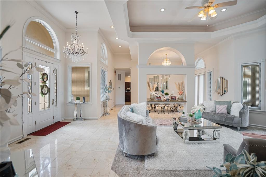 Luxury Estate on 1.6 Acres with Resort-Style Amenities. Nestled in one of the area’s most sought-after neighborhoods, this stunning custom-built luxury home offers refined living on a private 1.6-acre lot. Built in 2005 and impeccably maintained, this spacious residence features over 3,025 square feet on the main floor, plus a full finished basement, blending timeless elegance with modern comfort. From the moment you enter the marble tile foyer, you'll notice the craftsmanship and attention to detail, including soaring 14-foot ceilings that create an airy, open ambiance throughout. The heart of the home is the gourmet kitchen, adorned with granite countertops, custom cherry cabinetry, and a cozy hearth room just off the kitchen — perfect for intimate gatherings. This home offers four spacious bedrooms and four full bathrooms, along with a dedicated office and two additional rooms in the basement ideal for a home theater, exercise space, or game room. The lower level also features a large family room with a bar, and the pool table stays, making it the perfect space for entertaining. Outside, you’ll find a true backyard retreat with an inground pool complete with a waterfall, a hot tub, and a fire pit — perfect for relaxing evenings or hosting guests. The property includes a three-car attached garage, a two-car detached garage, and a large circle driveway that offers both convenience and curb appeal. Additional highlights include a stucco exterior for low-maintenance elegance, dual HVAC systems and water heaters for comfort and efficiency, and ownership interest in the neighborhood pond, adding to the peaceful and picturesque setting. This property truly has it all—space, privacy, upscale features, and access to a prestigious neighborhood. Schedule your private tour today and experience luxury living at its finest.