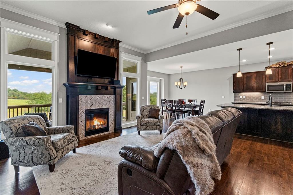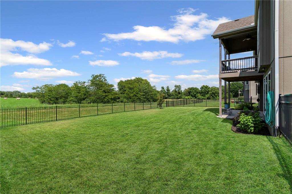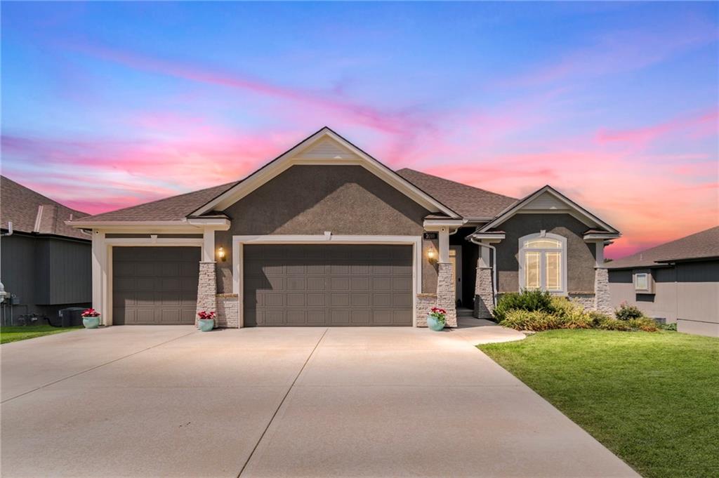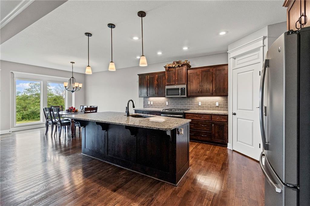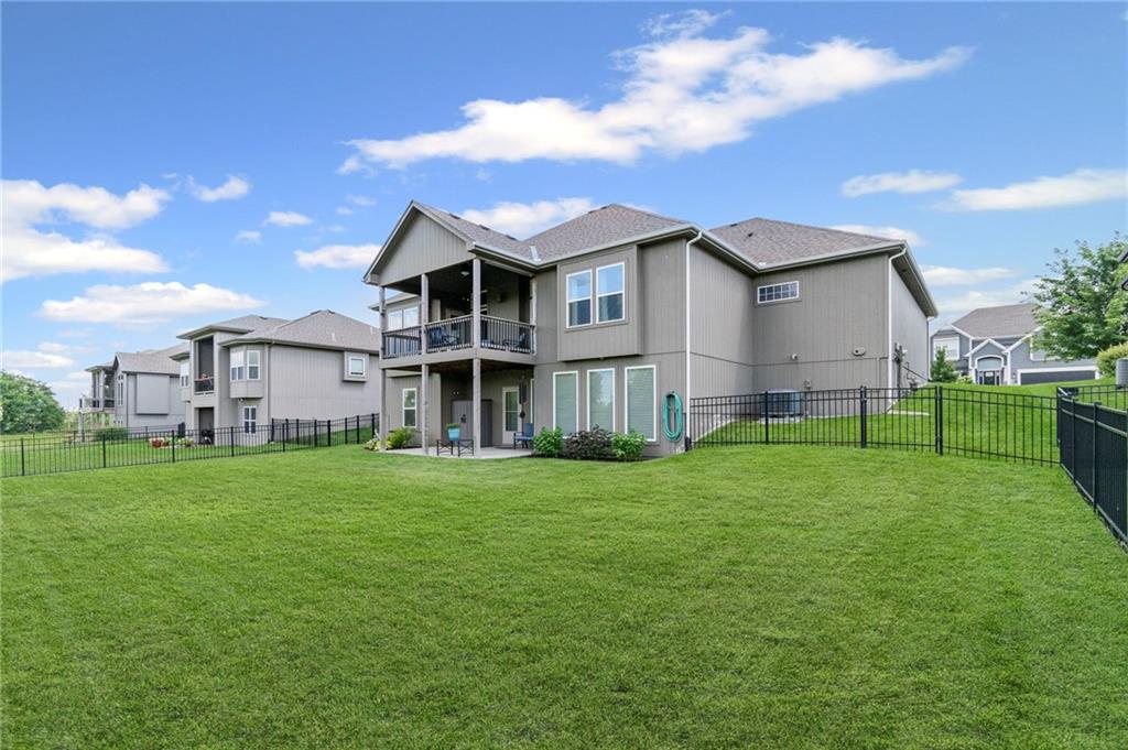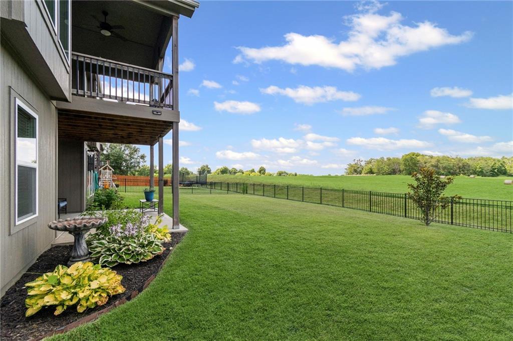 This home is located in the quiet Staley Hills Subdivision which is in the Staley High School zone, New Mark Middle School, and Bell Prairie Elementary. Not many homes are this meticulously maintained. The home has an open concept for everyday living and entertainment and features 4 bedrooms (all with walk-in closets-master closet is amazing in size), 3 full bathrooms, wet bar, extra large laundry room, plentiful unfinished storage, fenced yard (irrigated), walkout lower level. The kitchen has an oversized island, granite countertops, walk-in pantry and stainless steel appliances (appliances stay with the property). The dining area is spacious and will fit a large dining table with plenty of seating. The dining area features large windows overlooking the greenway and open field behind the home where you will be able to view deer, turkeys, an occasional eagle and other wildlife. Outside is a covered deck where you can enjoy peaceful moments and pristine views. Back inside is the great room with gas fireplace and plenty of room for a sectional or multiple seating pieces. The owner's suite (bedroom, closet and bath) are large and spacious; with dual vanities, jetted tub oversized walk-in shower, separate toilet area, and super large walk-in master closet. The owner's bath is directly connected to one of the largest laundry rooms in this price point! The 3 car garage has an extension on the 3rd stall for extra storage or a workbench area. Directly inside the garage entrance is a mudroom/drop zone. In the lower walkout level you will be the "Life of the Party" with entertainment space for billiards, a wet bar and plenty of room for large gatherings. There is also an unfinished area, perfect for storage or future expansion and includes a storm shelter. This home is close to the airport, major highways and interstate (I435, I29, I35, HWY 152,and HWY 169). When someone says: Location-Location-Location, look no further this home has it all.