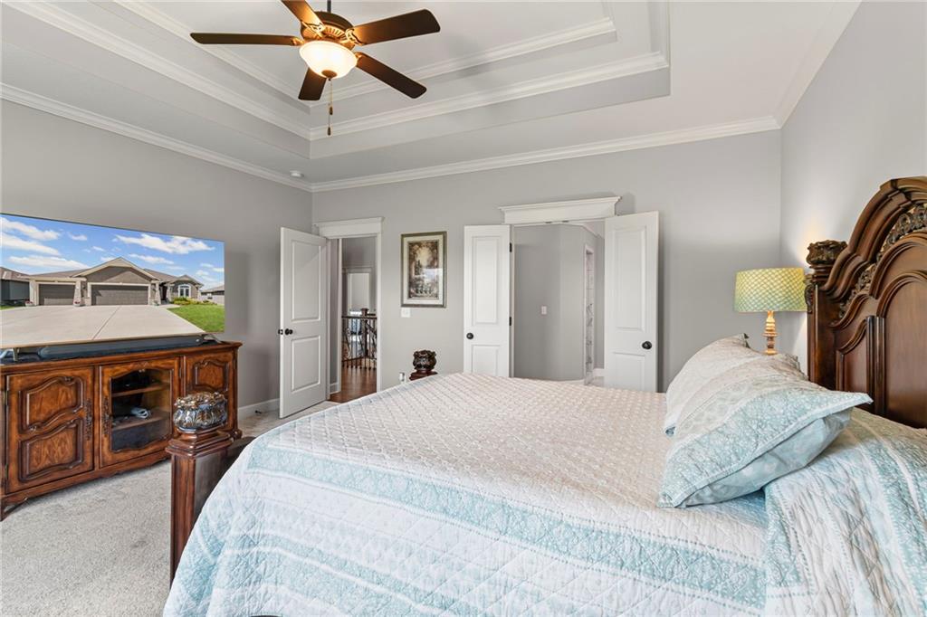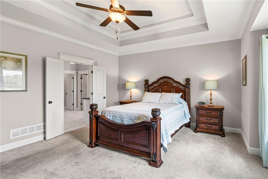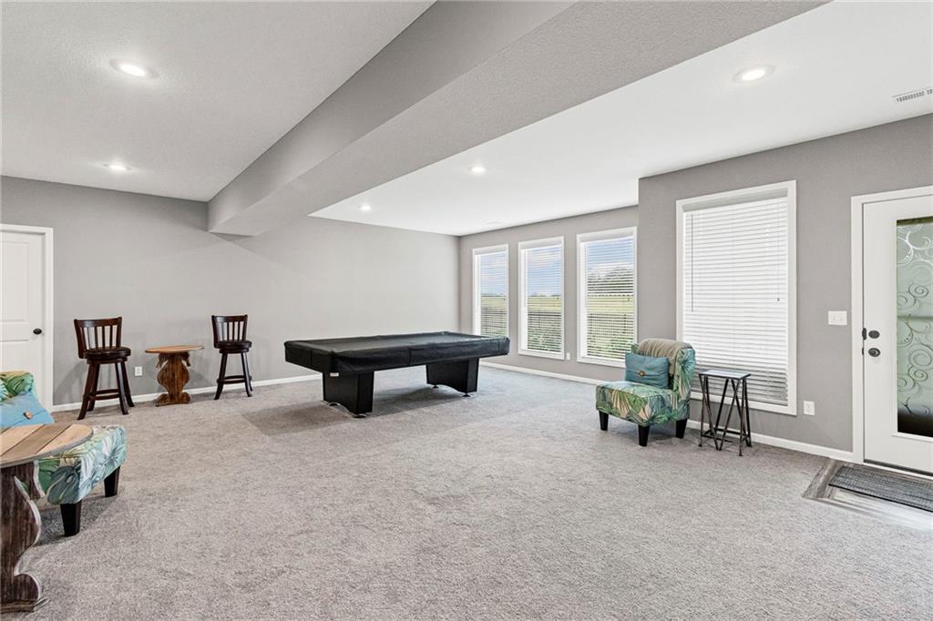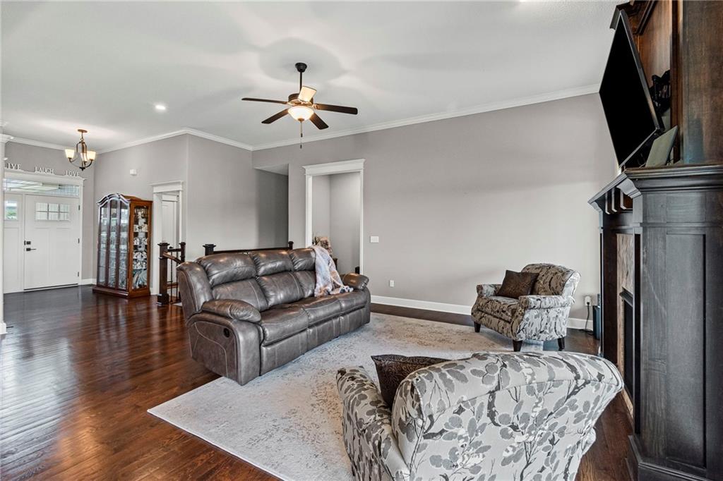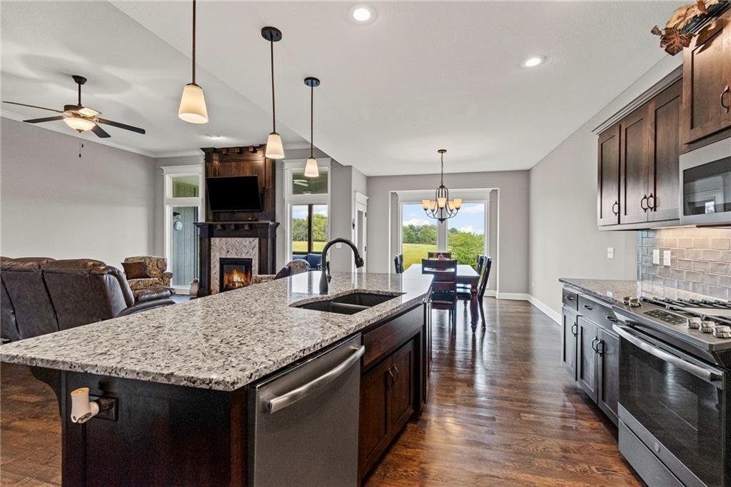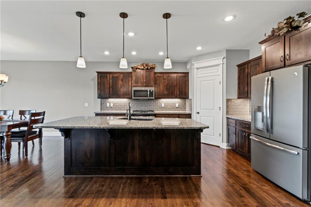 This home is located in the quiet Staley Hills Subdivision which is in the Staley High School zone, New Mark Middle School, and Bell Prairie Elementary. Not many homes are this meticulously maintained. The home has an open concept for everyday living and entertainment and features 4 bedrooms (all with walk-in closets-master closet is amazing in size), 3 full bathrooms, wet bar, extra large laundry room, plentiful unfinished storage, fenced yard (irrigated), walkout lower level. The kitchen has an oversized island, granite countertops, walk-in pantry and stainless steel appliances (appliances stay with the property). The dining area is spacious and will fit a large dining table with plenty of seating. The dining area features large windows overlooking the greenway and open field behind the home where you will be able to view deer, turkeys, an occasional eagle and other wildlife. Outside is a covered deck where you can enjoy peaceful moments and pristine views. Back inside is the great room with gas fireplace and plenty of room for a sectional or multiple seating pieces. The owner's suite (bedroom, closet and bath) are large and spacious; with dual vanities, jetted tub oversized walk-in shower, separate toilet area, and super large walk-in master closet. The owner's bath is directly connected to one of the largest laundry rooms in this price point! The 3 car garage has an extension on the 3rd stall for extra storage or a workbench area. Directly inside the garage entrance is a mudroom/drop zone. In the lower walkout level you will be the "Life of the Party" with entertainment space for billiards, a wet bar and plenty of room for large gatherings. There is also an unfinished area, perfect for storage or future expansion and includes a storm shelter. This home is close to the airport, major highways and interstate (I435, I29, I35, HWY 152,and HWY 169). When someone says: Location-Location-Location, look no further this home has it all.