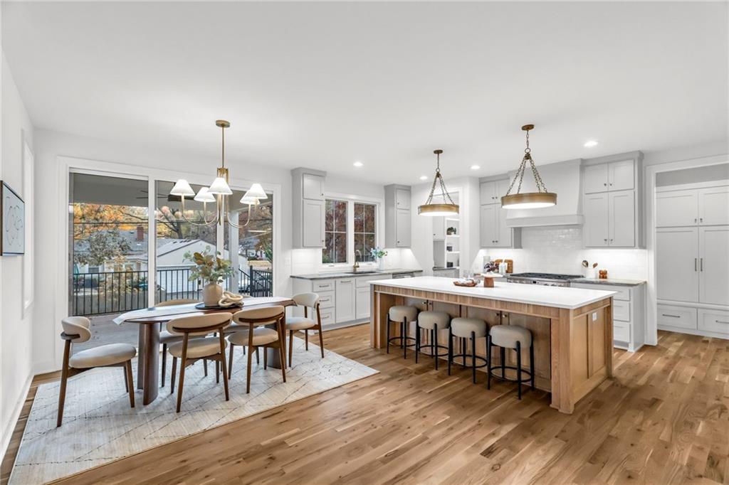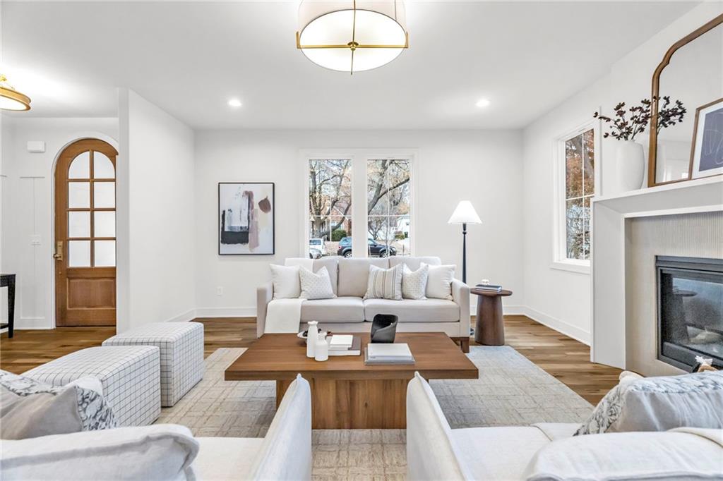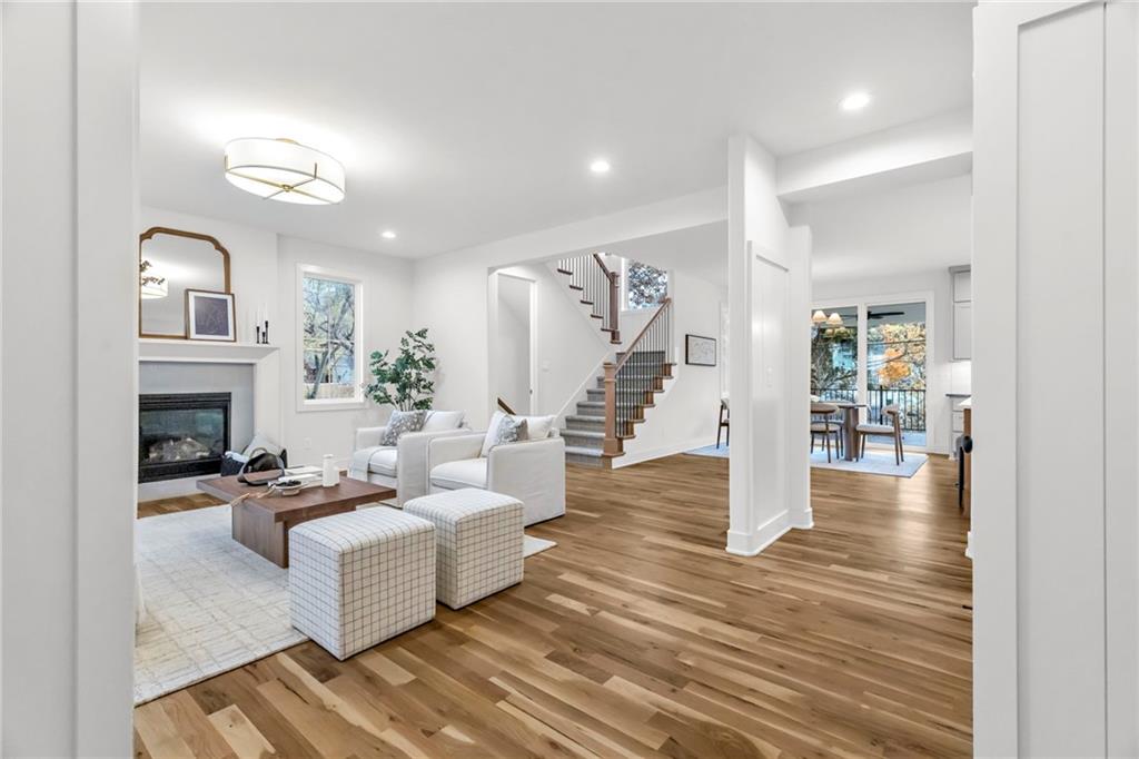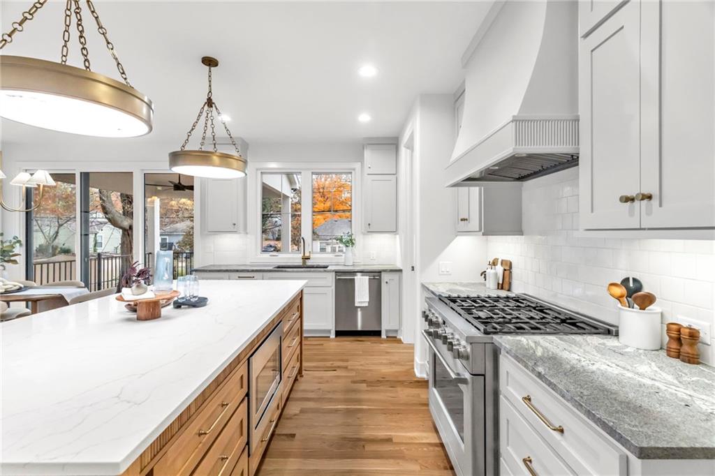New Construction in prime location ready now! This home is fully finished as of 11/17/25. Located just minutes from Prairie Village Shops, the Plaza, Johnson Drive Shops and within walking distance to multiple parks, Highlands Elementary and Indian Hills Middle School. This home features a flexible floor plan with open-concept kitchen, dining, and living areas, all with white oak hardwood flooring on the main level. The kitchen includes a large window over the sink overlooking the backyard, an oversized island, a spacious walk-in pantry with a custom coffee station, and a 36" gas range with a designer hood. Just off the garage entry, a mudroom with a built-in drop zone adds everyday convenience. The dining area boasts a 9' sliding glass door that opens to a covered deck—perfect for entertaining. Upstairs, the oversized primary suite includes a luxurious bathroom and a large walk-in closet with custom shelving. The laundry room connects directly to the primary closet and is also accessible from the hallway—an ideal layout for busy households. The finished lower level offers a guest bedroom with a full bath, a large living area, a flex space perfect for a home office or gym and an optional bar area. Exterior highlights include a side-entry garage that enhances curb appeal, full acrylic stucco with black standing seam metal roof accents and a custom cast stone arch surrounding the covered front porch. High-end finishes throughout. Soft-close cabinet drawers, 8' doors on the main level, solid core doors throughout, inset hardwood floor vents, hardwood stair treads to the second floor, LVP flooring throughout the lower level, custom fireplace surround, sprinkler system, new fence, battery backup sump pump and more.