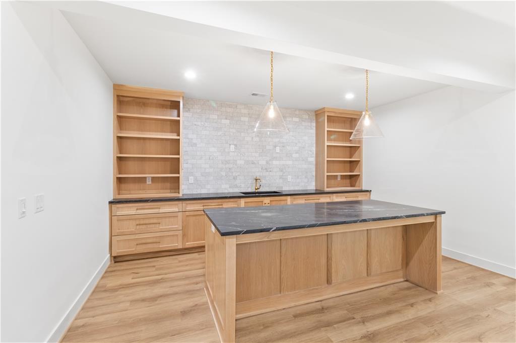 Stunning New Construction by Chris George Custom Homes. This exceptional new build is located on one of the last remaining estate lots in Sycamore Springs. Enjoy country-style living on a sprawling 3+ acre lot, with the convenience and amenities of Olathe just a few minutes away. Estimated completion date of early January 2026. The flexible floor plan offers main-level living, featuring a spacious primary suite, a large kitchen with an oversized walk-in pantry, a versatile office/study/flex room, and 10' ceilings throughout—vaulted to 12' in the living room. The living room showcases a custom 12' wide by 8' tall aluminum sliding door that opens fully to a covered deck, blending indoor and outdoor living. The garage includes a third tandem bay measuring 35' deep (500+ sq ft) with front and rear garage doors—ideal for an RV, camper, boat, or a future custom-finished space. Upstairs, you’ll find three bedrooms, each with on-suite bathrooms and walk-in closets, plus a loft area. The daylight lower level includes a large island bar, expansive living space suitable for game tables and entertaining, a full bathroom, and a fifth bedroom—perfect for guests or easily converted into a home gym. High-end finishes include generous selection allowances, soft-close cabinet drawers, 8' doors throughout the main level, solid core doors throughout, hardwood flooring throughout the main level (except master closet & laundry), inset hardwood floor vents, hardwood stair treads and hardwood floors at upper-level hallway/loft, LVP flooring throughout the lower-level, custom fireplace surround, battery backup sump pump, etc. Please note the photos in the listing are of a similar floorplan with similar level of finishes that we built last year.