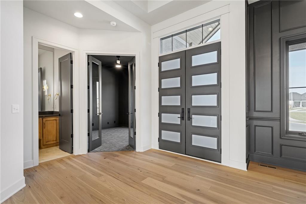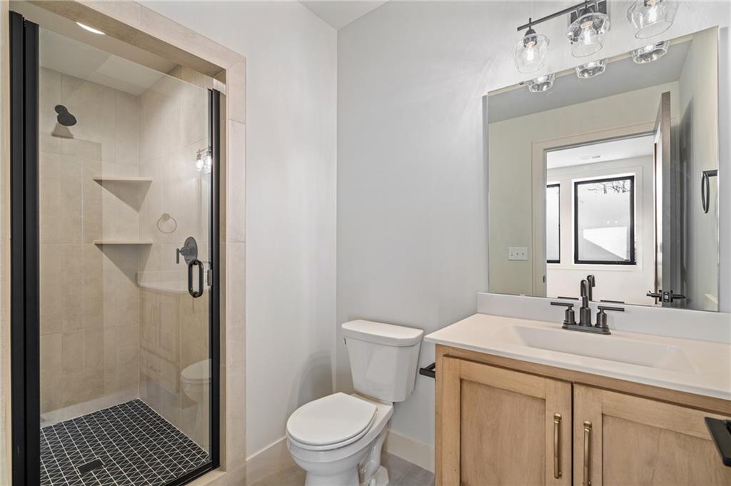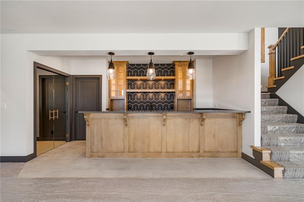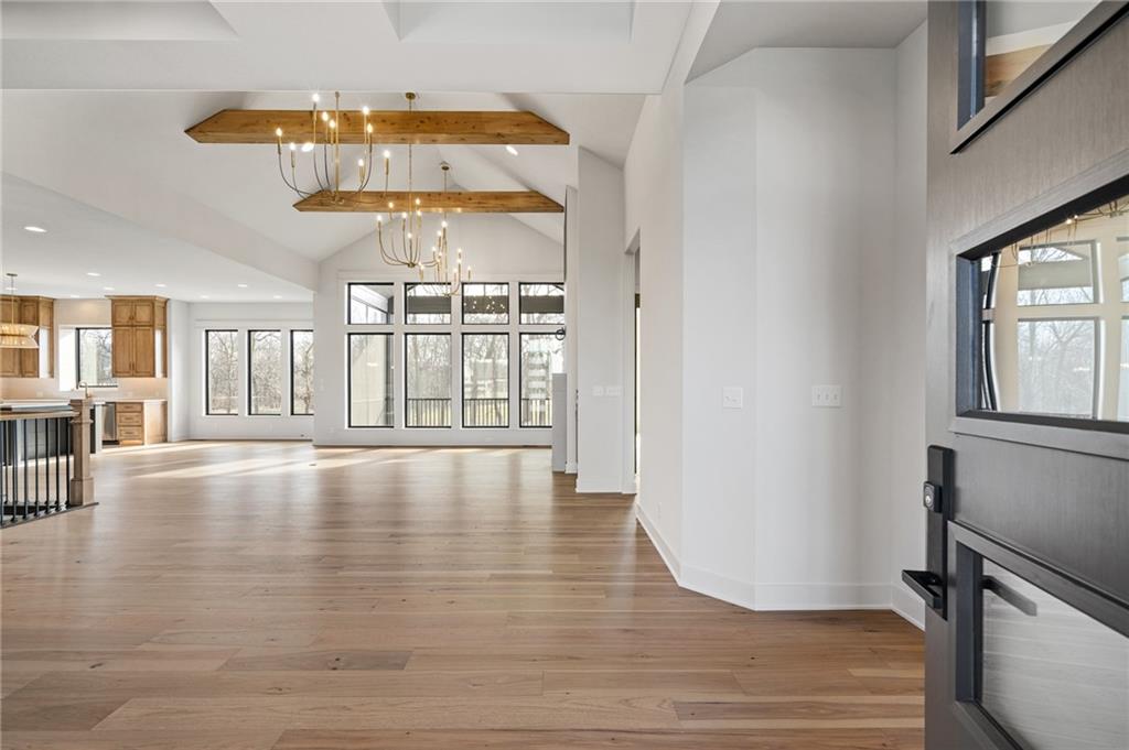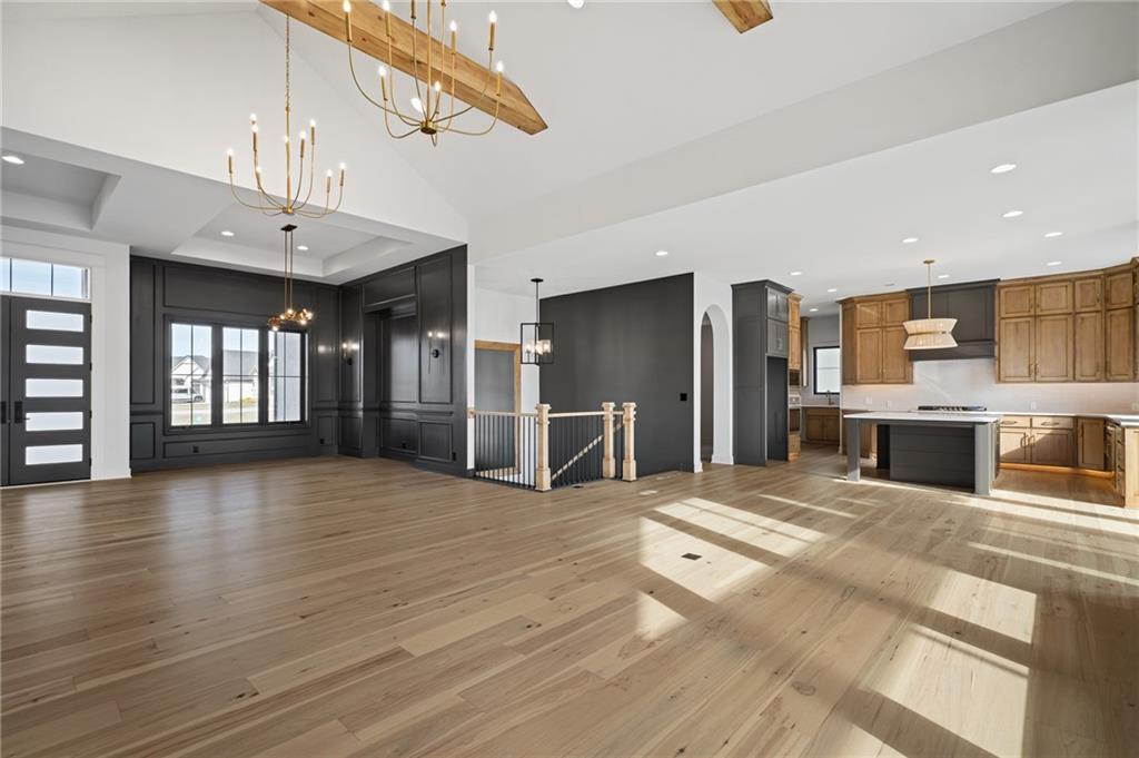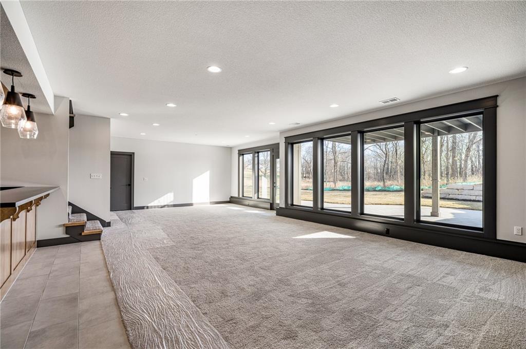 This Stunning Reverse 1.5 by C&M Builders redefines contemporary elegance, showcasing cutting-edge decor & design. Prepare to be enchanted by the spectacular upgrades & thoughtful luxuries infused throughout. As you step into the home through the grand entrance, a sweeping vista of the main living area opens up, seamlessly connecting to the covered deck with fireplace. The master bedroom on the main floor boasts a vaulted ceiling adorned with a bespoke wood accent wall, accompanied by a wall of windows that invite natural light. A doorway from the master bedroom & dining area leads to a screened deck perfect to relish outdoor serenity. The master bath, offers an Oversized soaker tub for relaxing, Quartz counters & a tile floor. Custom cabinets & accent lighting elevate the experience. The walk-in shower is a masterpiece, & the colossal walk-in closet is artfully designed with built-ins to house even the most extensive wardrobes. The main level also accommodates a second bedroom with full bath, a great room adorned with a modern fireplace & exposed beams, & a kitchen that epitomizes culinary ingenuity. The dining area with a vaulted ceiling & expansive windows, ensures every meal is a delight. The walkout lower level accommodates 2 generously sized bedrooms with 2 full and 1 half bath with shower/tub and granite counter tops. The lower level offers an 800+ Sq Ft rec room, accompanied by an impressive bar boasting custom cabinets & quartz counters.