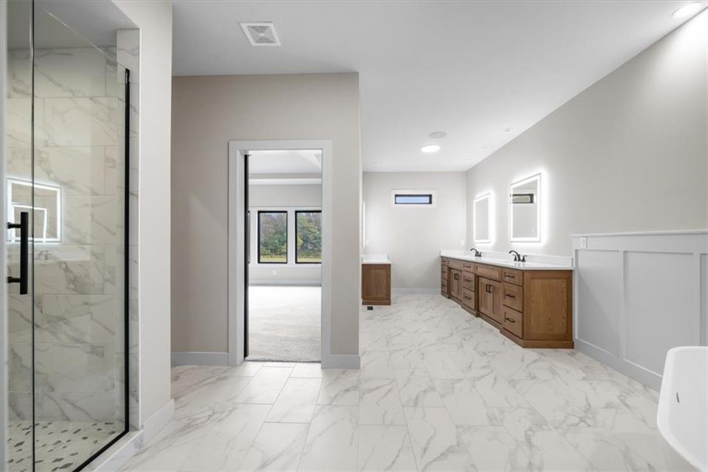 Your dream home on 3 acres is ready—and opportunities like this don’t last long. This breathtaking 1.5-story property offers the perfect blend of comfort, style, and space with 5 bedrooms and 4.5 bathrooms designed to fit a variety of lifestyles. Step inside to an impressive open floor plan with soaring vaulted ceilings and a wall of windows that bring in gorgeous natural light. The chef’s kitchen stands out with quartz countertops, a large island, and a butler’s pantry—ideal for everyday convenience or hosting your largest gatherings. Enjoy effortless indoor-outdoor living on the covered deck, complete with a fireplace for year-round relaxation and entertainment. The main-floor primary suite provides a quiet retreat with a spa-style bath featuring a double vanity, oversized walk-in shower, luxurious soaker tub, and a spacious closet that connects directly to the laundry room. A flexible main-level room easily serves as a home office or guest space. Upstairs offers three additional bedrooms and two full bathrooms, giving everyone room to spread out. The finished basement adds even more value with a generous rec room, wet bar, 5th bedroom, full bath, and extra storage. Just 20 minutes from the heart of Lee’s Summit, this home delivers country living without sacrificing convenience. Don’t wait—this is one you’ll want to see in person.