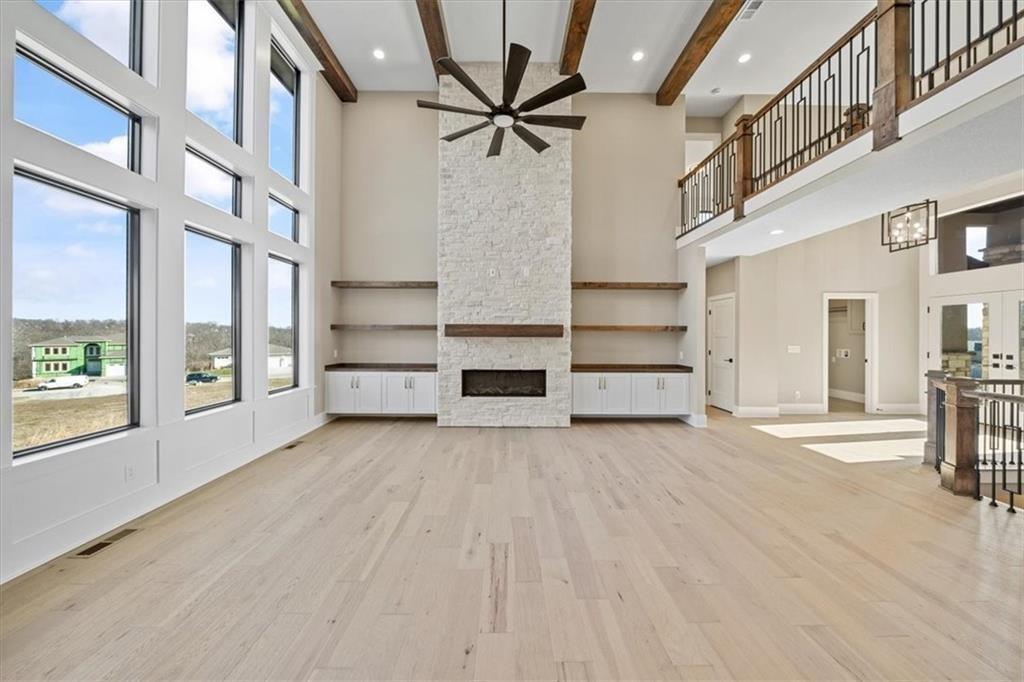 The "Layla" Floorplan is here! Located on a beautiful Level Lot backing to trees. This 1.5 Story plan is everything you have been looking for! As you enter through the gorgeous double doors to the grand entry next to the stunning staircase, you have an ample amount of natural light gracing your Great Room with fireplance, Dining Room and Kitchen. Access to the covered patio is off the Dining Room. The Master En-Suite is behind the Great Room with a wet room shower with stand alone tub for the serene spa experience, double vanity, next to walk-in closet and connected to Laundry Room. The opposite side of the main level is Bedroom #2 with its own bathroom with a tiled shower. Up the stairs is a catwalk connecting 2 bedrooms and a bathroom with double vanites and walk-in closets to the other side with bedroom #5 with its own bathroom, shower over tub and walk-in closet. Option to finish the basement. All in the coveted Heritage Ranch, A Lambie-Rieke Community, with Amenities Galore such as state-of-the-art pool, clubhouse, trails, pickleball. play area, half-court basketball, Putting Green & ponds and so much more coming soon! This community provides a wonderful lifestyle and right next to the 1,238 Acre Heritage Park with Dog Park, Sports Parks, Golf, Lake, Trails and so much more! Contact Onsite Agents for Estimated Completion of homes on site, and design selections. Our Welcome Center Office is now open, located at LOT 65. Open 7 days a week! Renderings &/or images may show features and sq ft that are subject to change. SPEC HOME IS UNDER CONSTRUCTION on LOT 107. With an Estimated Completion of MARCH 2026. Welcome Home to Heritage Ranch - one of the last NEW Home Communities in Johnson County!