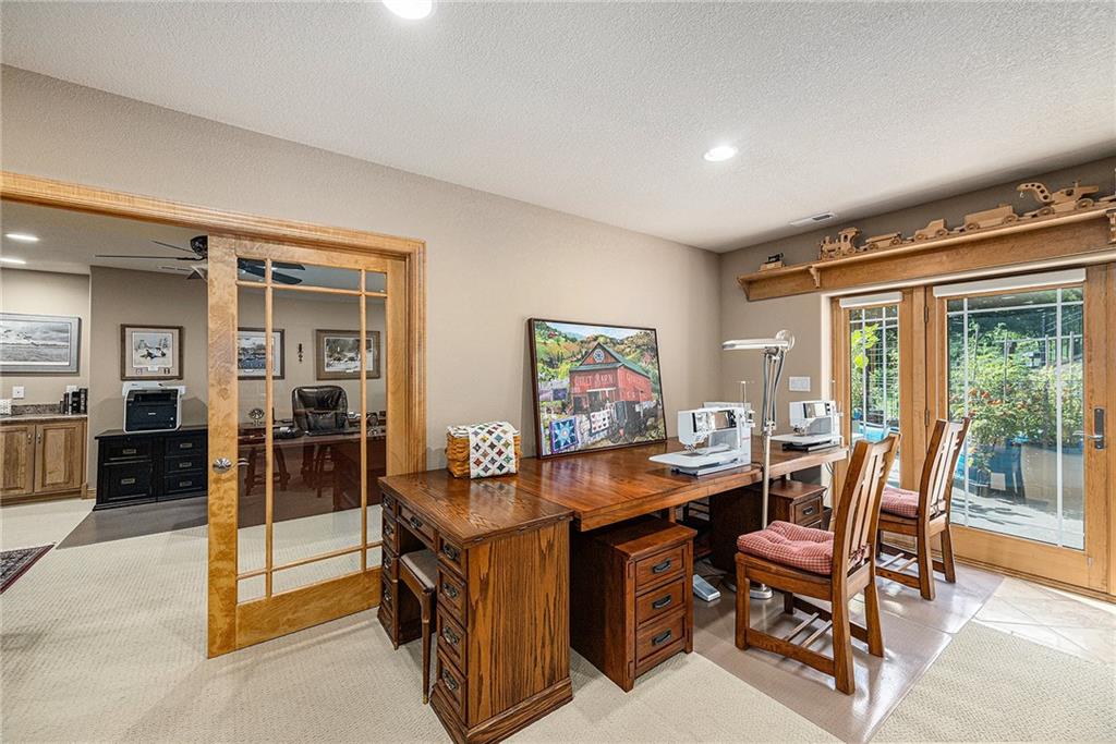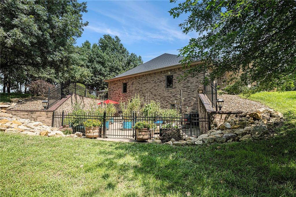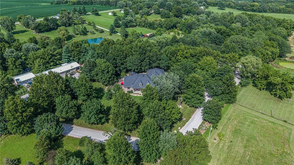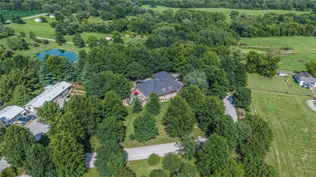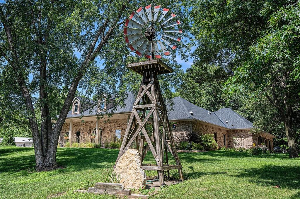 A stunning, custom-built all-brick ranch estate nestled on nearly 4 acres in Platte County. The meticulously maintained property offers over 4,500 square feet of finished living space, and a suite of impressive outbuildings designed for both lifestyle and utility. The Ranch home features 4 spacious bedrooms & 5 full bathrooms, a primary suite with vaulted ceiling and spa-like whirlpool tub. The home has vaulted ceilings, a formal dining room, private TV room, and a beautiful kitchen upstairs and a smaller kitchen downstairs. Premium solid hickory cabinetry, trim, and interior doors throughout. The HVAC system is efficient climate control with geothermal heating, radiant in-floor heat, LP gas furnace, and multiple A/C systems. Other features include 13 solar tubes for natural daylight, plus a fireplace, upgraded high-efficiency water softener, and Bosh electric boiler. The roof is a Durable composition roof (2 years old) with 5 new solar roof fans and R49 attic insulation in the attic. Entertain for hours enjoying the patio space with open and covered sections, a custom firepit, and concrete pathways finished for style and durability. Anderson casement windows throughout Extensive landscaping with mature oak, white pine, and fruit trees including apples, pears, peaches, cherries, and plums. Working windmill, gazebo, a storm cellar adds preparedness and safety. The outbuildings include a 40’x60’ insulated shop, partially finished with heating, A/C, water service, sink, and urinal. A Cleary building (27’x84’) with four 16’ automatic overhead doors, full electric, and ample room for additional toys. There is a 12’x16’ building insulated chicken coop for year-round farm-to-table egg production. 10’x12’ livestock building with upgraded security and lighting. Fenced-in dog kennel with water access and sloped flooring. High-speed 5G fiber optic internet, public water, and electric service, a 1,000-gallon owned propane tank, lateral field septic system