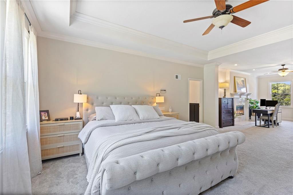 MOTIVATED SELLER: Exquisite Colonial with lake views in prestigious gated community. Nestled on one acre private, treed lot with serene lake views, this custom-built residence combines timeless elegance with modern updates. A stunning rotunda entry, stately columns, and Italian-imported marble floors set the tone for the home’s exceptional craftsmanship. Inside, enjoy a chef’s dream kitchen featuring a 6-burner gas stove, double ovens, SUB-ZERO refrigerator/freezer, and a granite island with bar seating. The home offers unique spaces including a wine cellar off the dining room, a fabulous sunroom, and a one-of-a-kind imported bar from England in the lower level—perfect for entertaining. Recent updates include all new windows, sliding doors, and a new furnace, ensuring both beauty and efficiency. Other updates include new primary bathroom, Outdoors, a $150K landscape renovation showcases a half sport court (basketball/pickleball), extensive underground drainage, and lush, private grounds. The gated community provides 24/7 security and an abundance of amenities: golf, swimming, fitness center, country club, nature trails, pickleball courts, and a newly completed pool and wellness facilities. This is a rare opportunity to own a high-quality, Colonial home that offers privacy, luxury, and an unmatched lifestyle.
