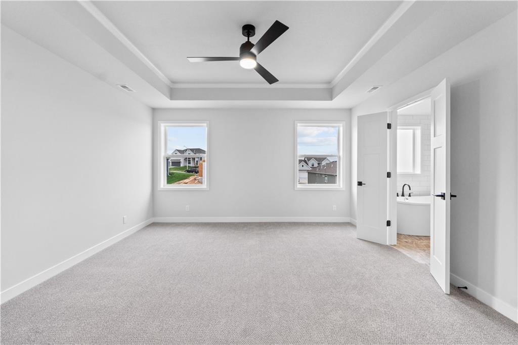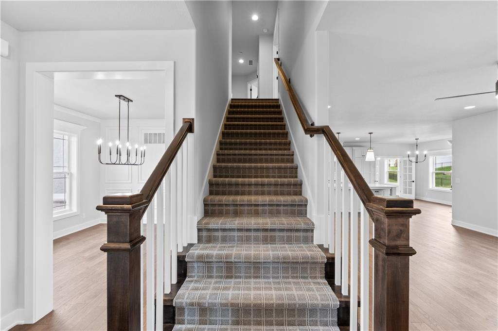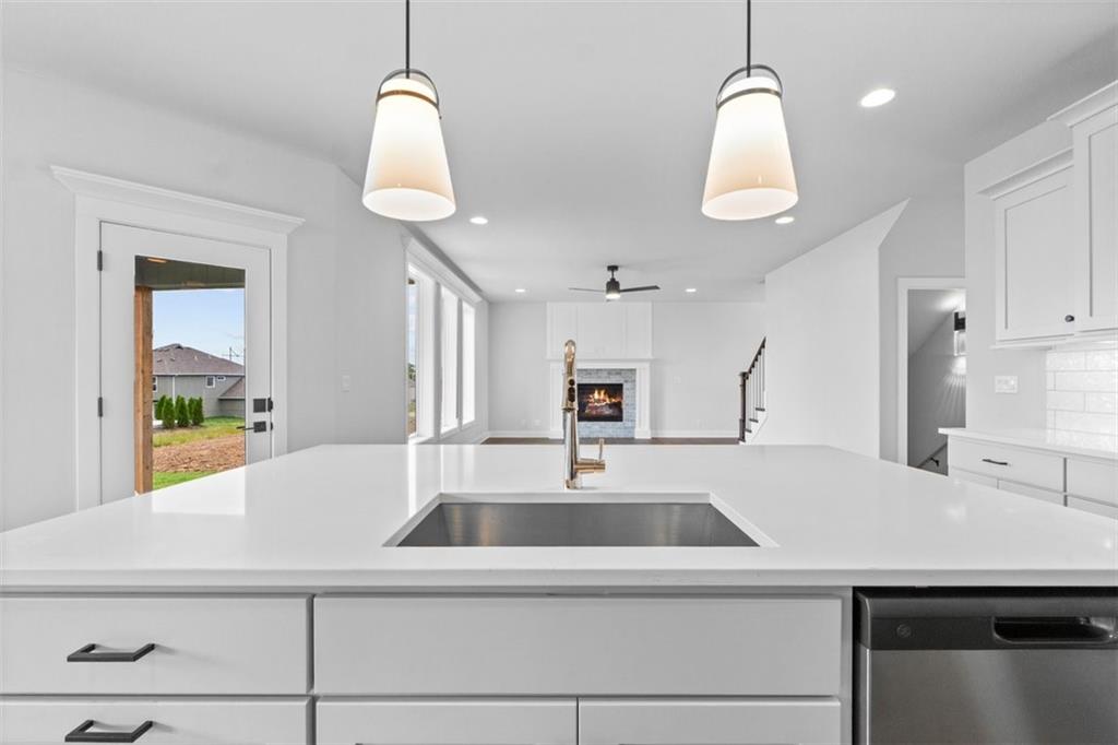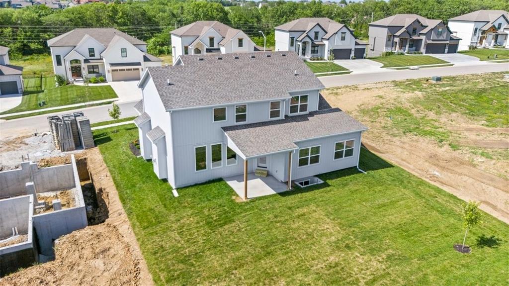 *Builder is offering a $5K buyers incentive w/ acceptable offer!* Everyone loves the Augusta with Den by SAB Homes - now move-in ready! This 2-story home blends striking curb appeal with a thoughtfully designed layout, perfect for everyday living and entertaining. The main level includes a formal dining room, a large great room with built-ins and fireplace, and a private rear den - ideal for a home office or quiet retreat. The kitchen impresses with custom cabinetry, stainless appliances, under-cabinet lighting, and a massive walk-in pantry. Upstairs you’ll find four generous bedrooms, all with walk-in closets and bathroom access, plus a spacious primary suite featuring a coffered ceiling, luxurious tiled shower, and direct access to a large walk-in closet. Durable wood flooring extends through the main level and tile covers all wet areas for style and function. Enjoy evenings on the covered patio and take advantage of the full basement, already stubbed for a bath and ready for future finish. Located on a premium lot in a desirable community with top amenities, this home offers both comfort and value. Benson Place residents enjoy an abundance of amenities including two community swimming pools, a children’s splash park, a fishing lake, a playground, ample green space, and scenic nature trails. Close proximity to major highways and interstates allows for easy access to downtown Kansas City, the new Kansas City International Airport and several of the area’s top shopping and entertainment centers.