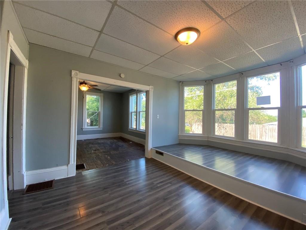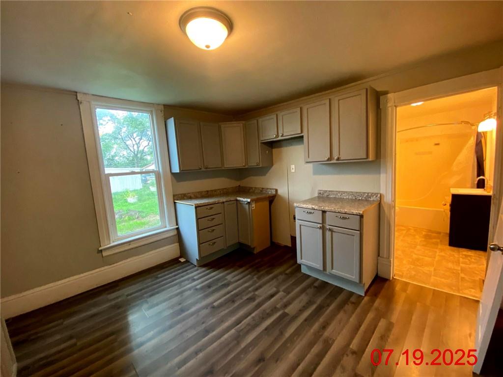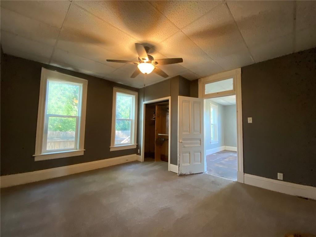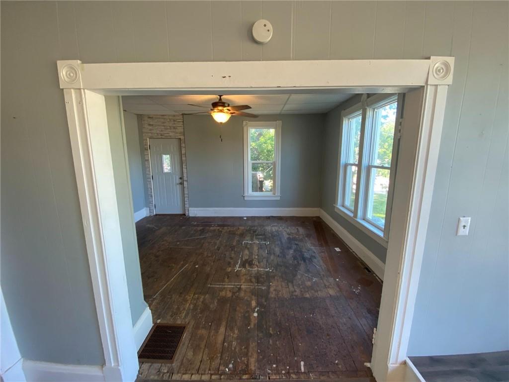 This home is tucked away on a large lot with a fenced backyard. It is an 1.5 story farmhouse style, with main floor living. There are 2 bedrooms and laundry on the main floor, separate dining room, and a third, non-conforming room on the 2nd floor. The kitchen includes a walk-in pantry.