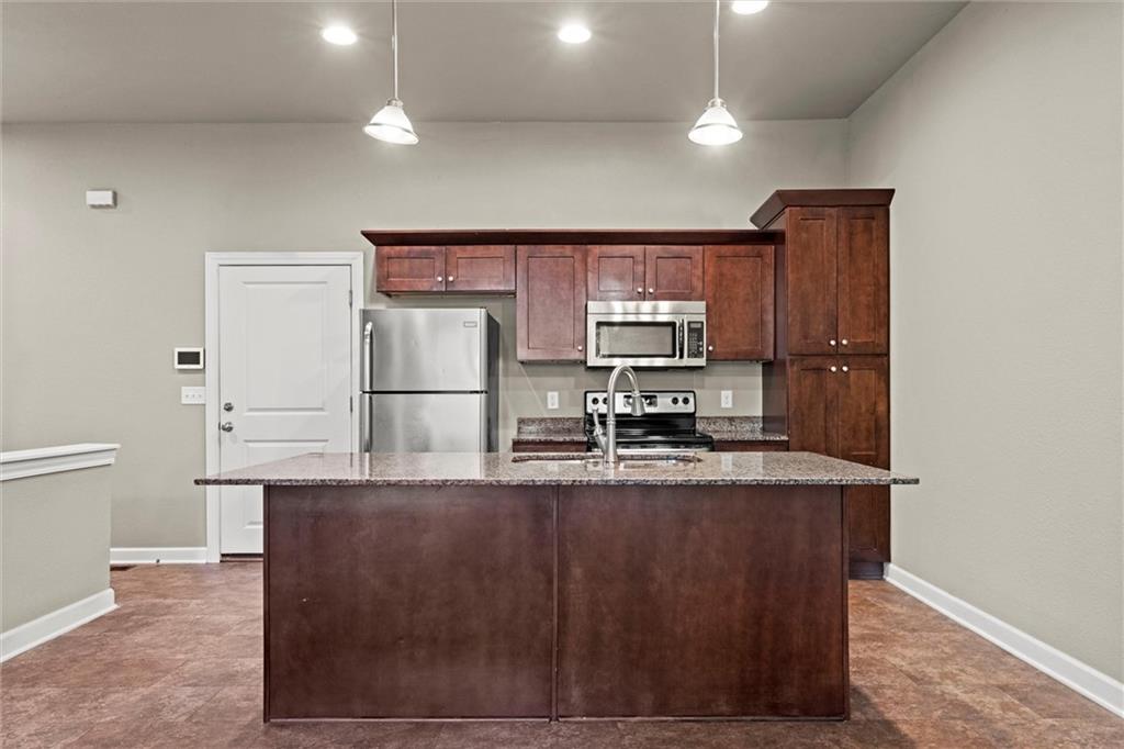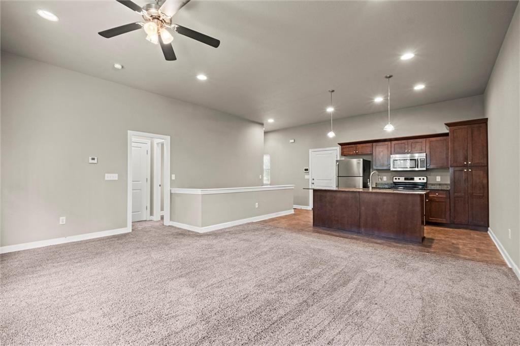NEW WITH BRAND NEW CARPET & PAD THROUGHOUT -- Private entrance end-unit townhome. Enjoy soaring ceilings plus a walkout basement in this MAINTENANCE PROVIDED gem. Spacious 3-bed, 2.5-bath end unit stands out with even taller ceilings and a walkout basement that brings in tons of natural light and extra livability. Built in 2016 and thoughtfully designed, the open-concept main level features granite countertops, elevated ceilings that create an airy, expansive feel, and a layout perfect for hosting or just kicking back in comfort. You’ll find a main floor primary suite, laundry, and a convenient half bath — all designed for easy living. Downstairs, the walkout basement includes two bedrooms, a full bath, and a large unfinished storage area with a built-in storm shelter. Whether you want extra room for hobbies, storage, or future expansion, there’s plenty of flexible space to make it your own. Move-in ready! Similar recent sale in THIS triplex appraised at $267k so you have instant equity walking in the door.
