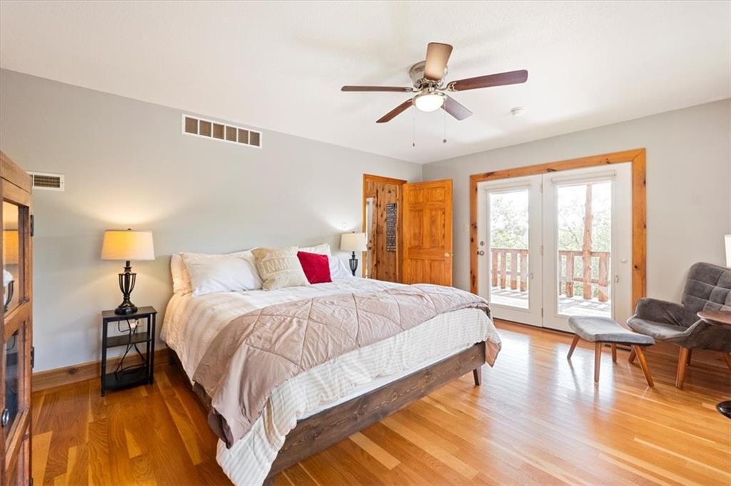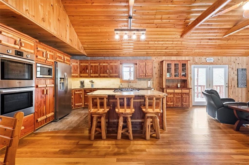Dreaming of a lake get away? Welcome to this beautifully maintained 2-bedroom, 2-bath cedar log-sided home on approximately 8 acres, nestled on a serene lot that backs up to core land of Truman Lake. Whether you’re looking for a weekend getaway, full-time retreat, or lake lover’s dream, this property offers the perfect blend of privacy, comfort, and functionality. Selling fully furnished - as turn-key as they come, step inside and you’ll be greeted by cedar walls, gleaming hardwood floors, and a stunning stone wooden fireplace. The updated kitchen is both stylish and functional, featuring double ovens, gas stove, granite countertops, custom cabinets, tile backsplash, and newer stainless steel appliances. Laundry is located on the main level. Both bedrooms are generously sized with large closets and updated bathrooms that include tiled flooring and spacious walk-in showers. One bedroom offers direct access to the back deck, perfect for enjoying your morning coffee with a view. Enjoy outdoor living with a covered front porch and a large covered back deck overlooking peaceful woods and wildlife. The basement offers the potential for additional living space or ample storage for lake gear, ATVs, or hobbies. The property includes a 30x40 Quonset outbuilding with concrete floors and electricity, plus multiple pole barns, ideal for storing boats, equipment, or working on your next project. The pole barn directly behind the outbuilding has electricity running to it as well. Property is own it's own private well. Find mature Hickory, Oak, and Cherry trees throughout the timber. Located minutes away from restaurants, boat rentals, motels, RV parks, marina/boat slips, and more! This property is a must see!