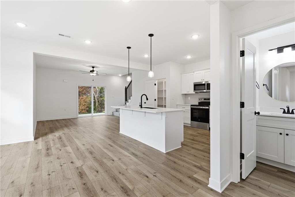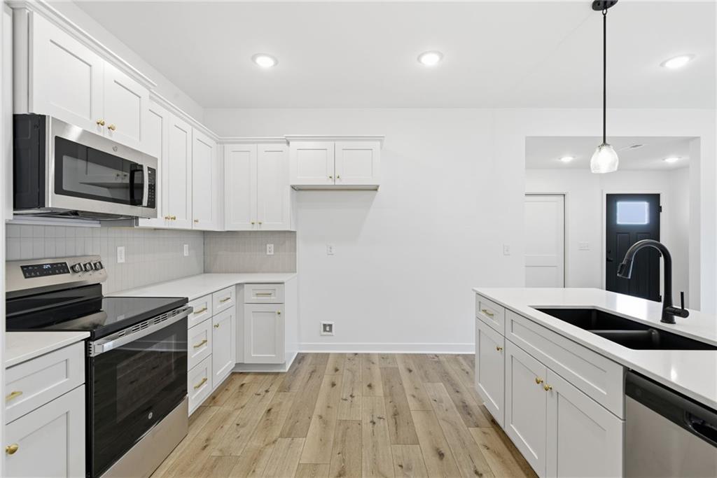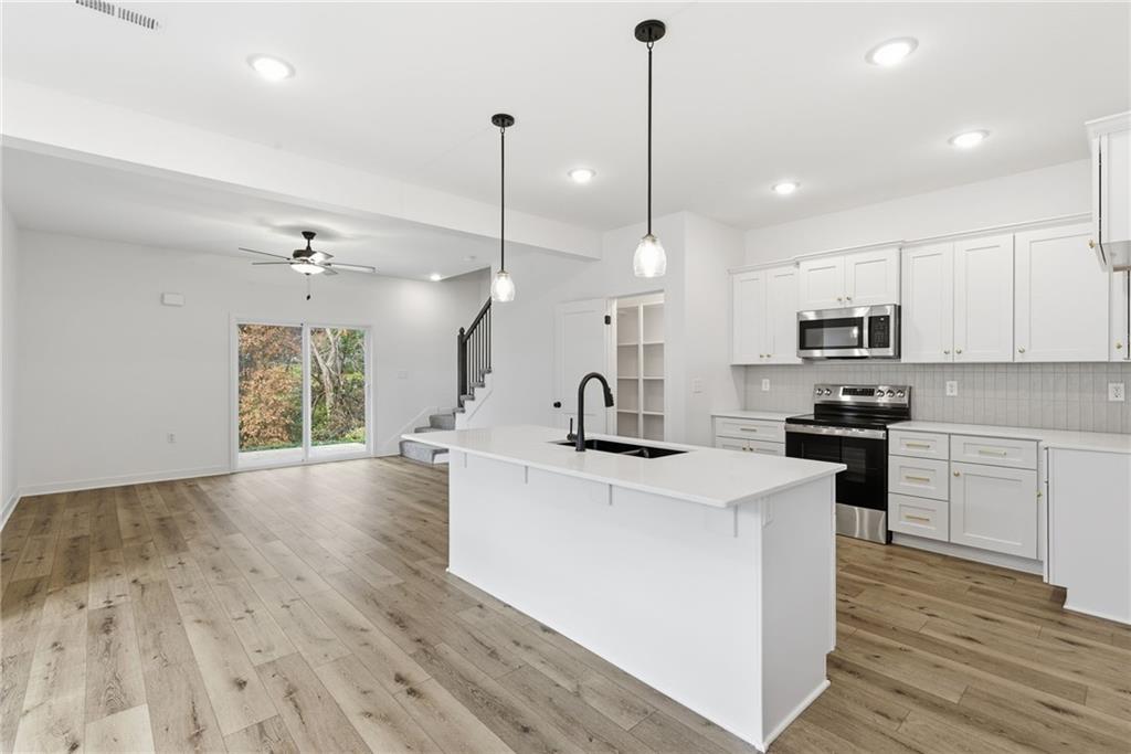 This beautiful 3-bedroom, 2.5-bathroom new construction home showcases a sleek modern design with a well-equipped kitchen featuring a large island with quartz countertops, stainless steel appliances and a spacious walk-in pantry. The main ensuite includes vaulted ceilings, a generous walk-in closet with built-in shelving, and a stylish attached primary bath. Enjoy convenient ground-level access to the rear patio and fully landscaped yard—perfect for pets, entertaining, and family activities. Spacious two-car garage offering plenty of room for parking and storage. Home is currently under construction; pictures are of a completed build and similar floor plan. Finishes and colors may vary. Estimated completion date is Sept 25.