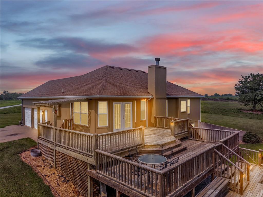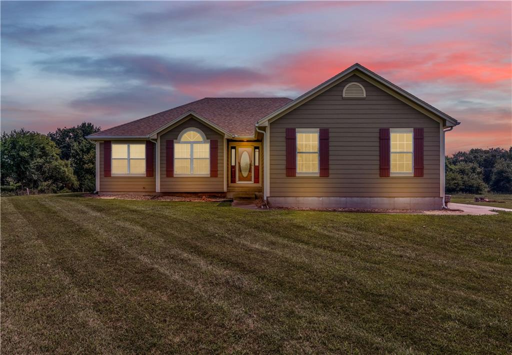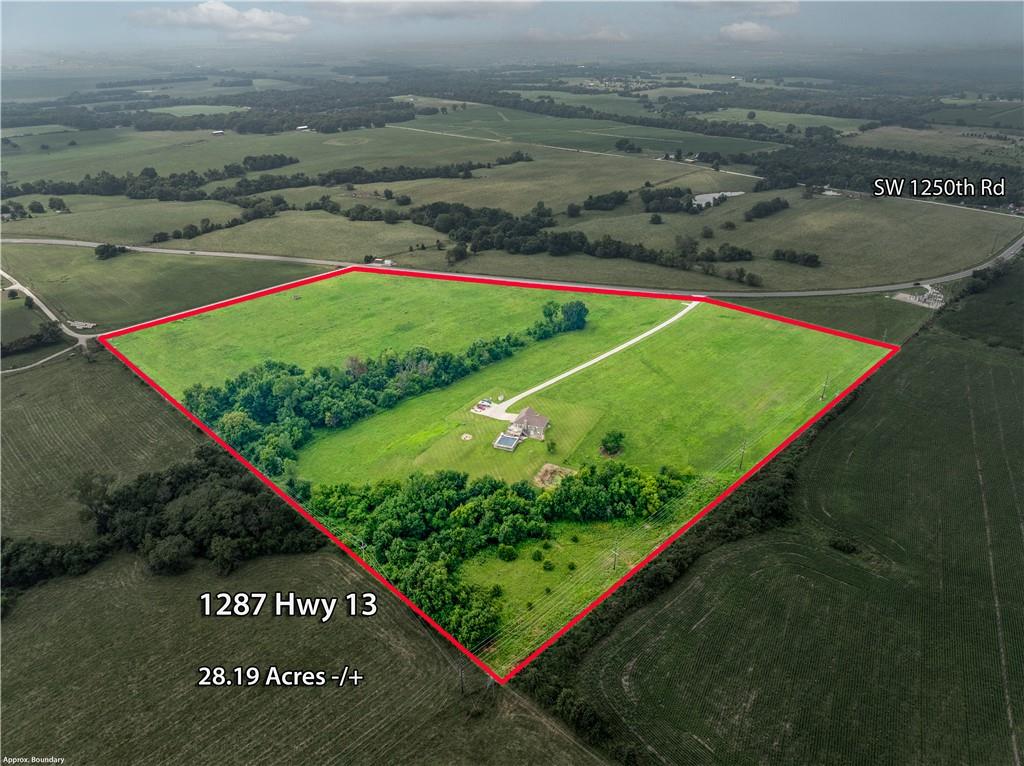 Enjoy the perfect mix of privacy and convenience in this beautifully maintained 4 bed, 3 bath ranch-style home on 28+/- level, clear acres. Built in 2003 and owned by just one meticulous owner, this home features just over 2,500 sq ft of living space, vaulted ceilings, beautiful hardwood floors, and a cozy wood-burning fireplace in the living room. The main floor includes 3 bedrooms—including a spacious primary suite with a jacuzzi tub, walk-in shower, and large closet—plus main-floor laundry and a kitchen full of cabinet space. The finished walkout basement offers a huge family room, 4th bedroom, full bath, storage area, and a concrete storm shelter. Step outside to a large back deck, above-ground pool, and plenty of space to entertain. A long driveway leads to the attached 2-car garage. All of this just off Hwy 13—15 miles from Warrensburg & Clinton, and 20 miles from Whiteman AFB. Roof is only 6 years old. A rare find with land, space, and location!