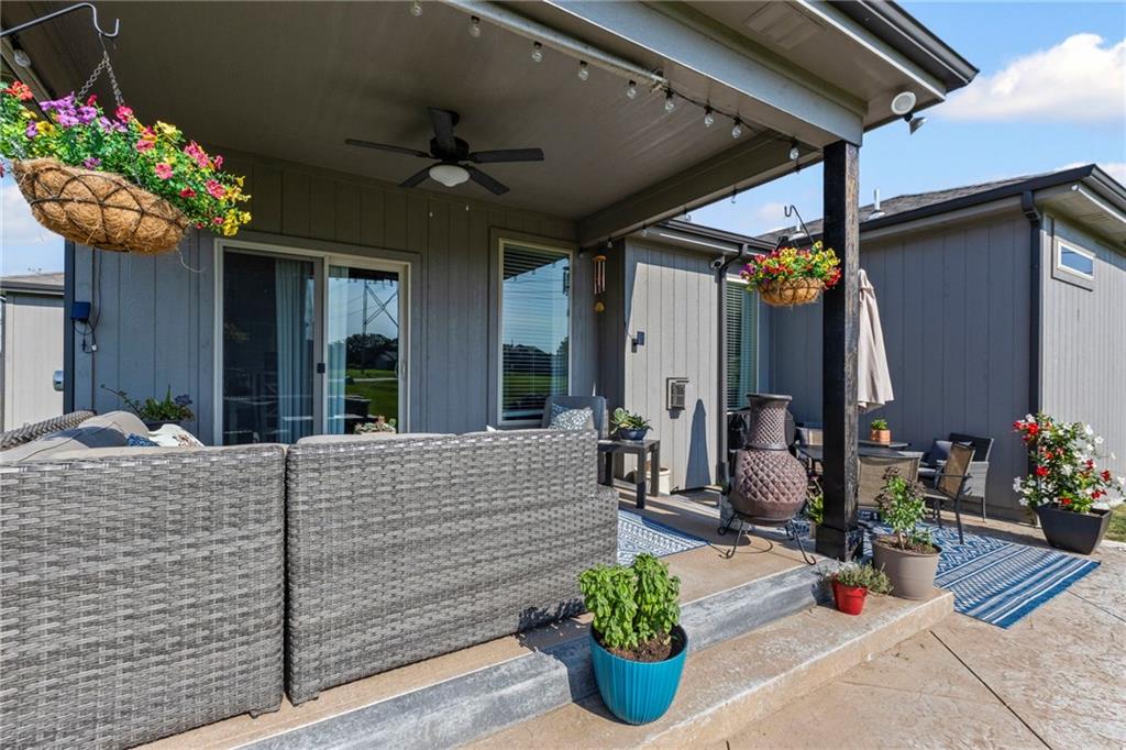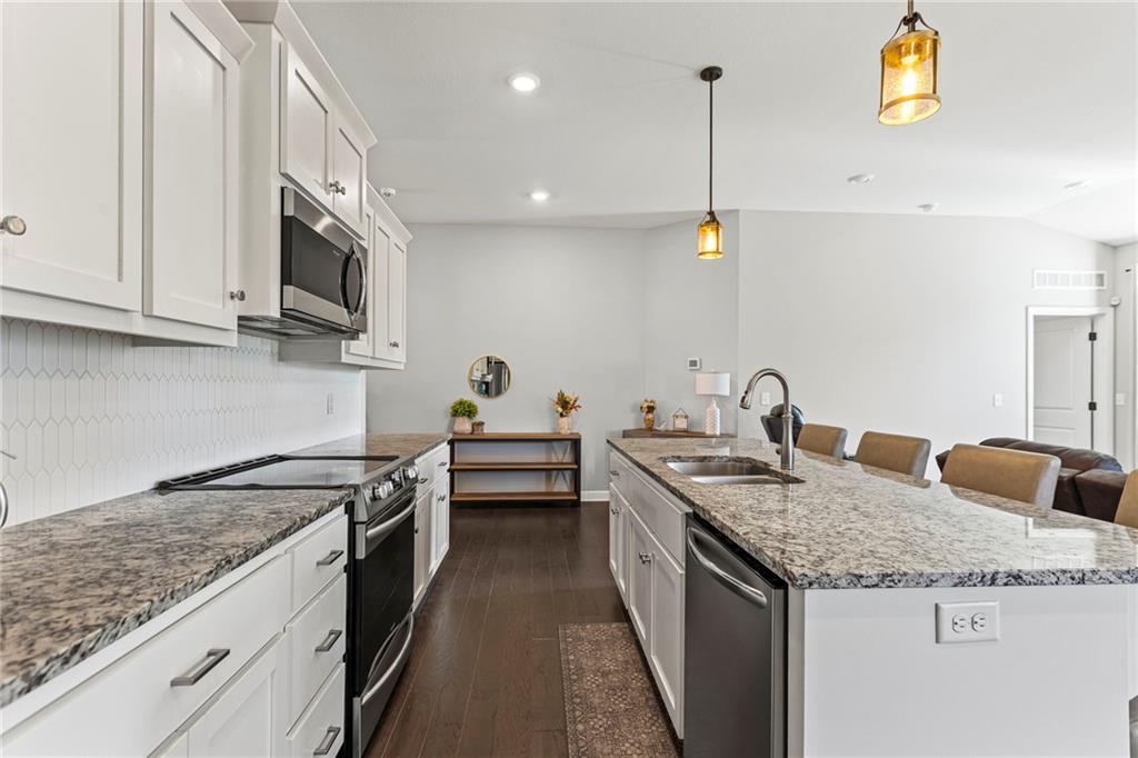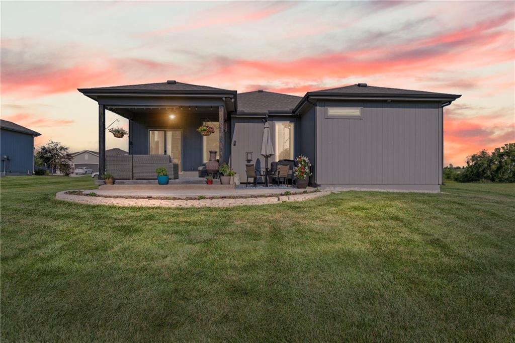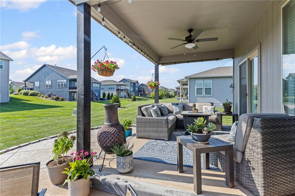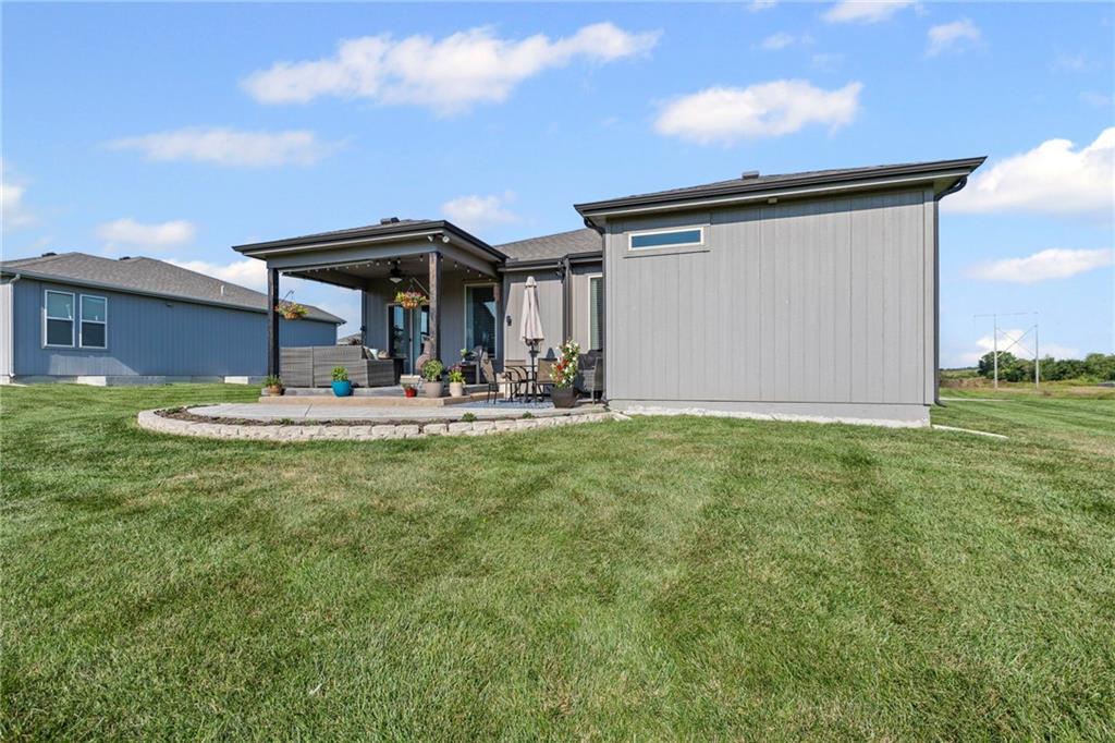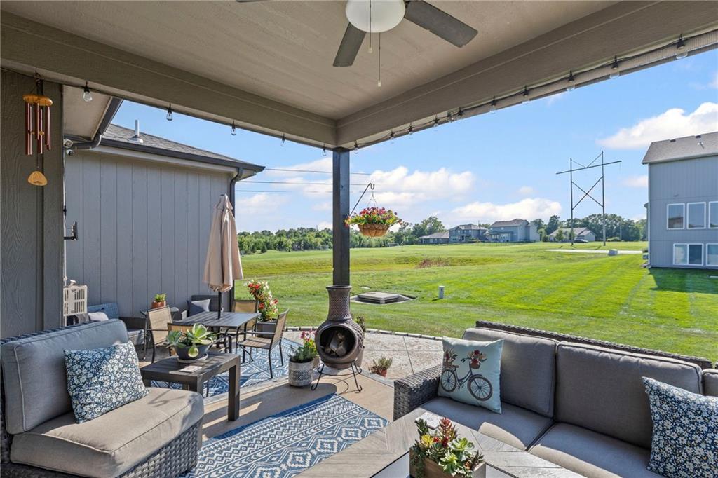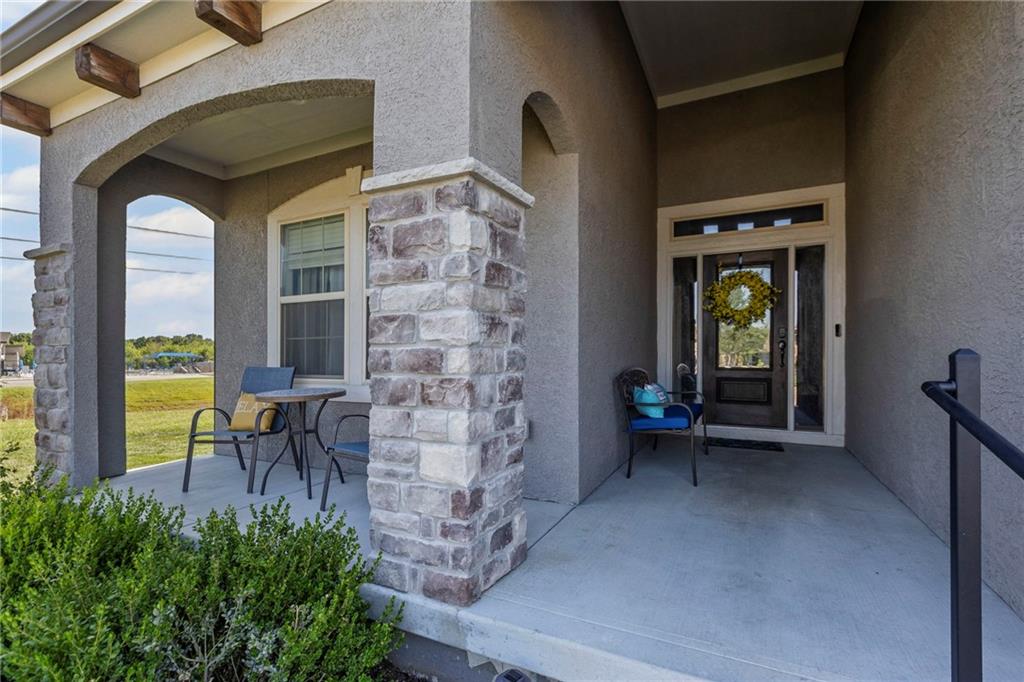 Rarely does a home like this become available in the sought-after Foxwood Ranch community! This stunning 3 bedroom, 2 bathroom villa offers the luxury of maintenance-provided lawn care, fertilizer treatment and snow removal, making it a truly unique find. Step inside and you'll be greeted by an open floor plan with an abundance of natural light streaming through the many windows. This home has been thoughtfully upgraded with high-end features, including a chefs kitchen complete with enamel painted cabinets, a gas range, elegant quartz countertops, and a large walk-in pantry. The main living areas are adorned with beautiful solid wood flooring, and all three bedrooms boast spacious walk-in closets. Full basement ready for you to finish. The attached 3 car garage provides plenty of space for vehicles and storage. Entertain guests or simply relax and enjoy the amazing sunsets from your awesome 14x10 covered patio, which extends to an additional stamped patio for increased outdoor living space. Sprinkler system. This villa combines elegance, convenience, and comfort in one incredible package. Enjoy the amenities provided in this community: clubhouse, state-of-the-art playground and walking trails. Only a few blocks to Wolf Creek Elementary School and Spring Hill High School. 10 minutes to Garmin or I-35.