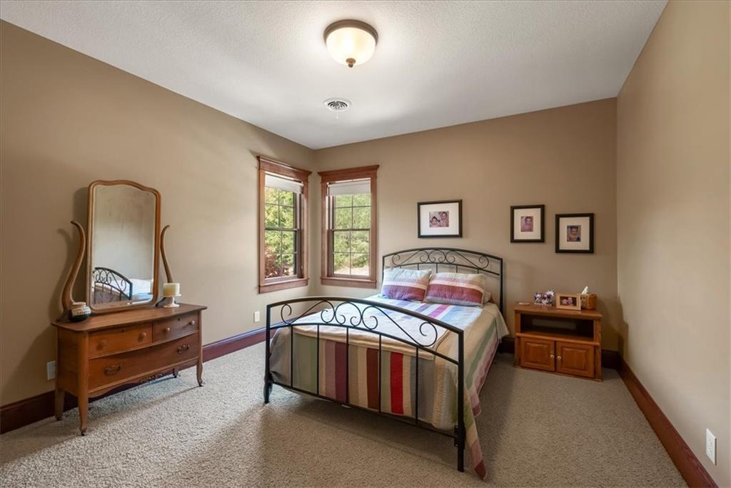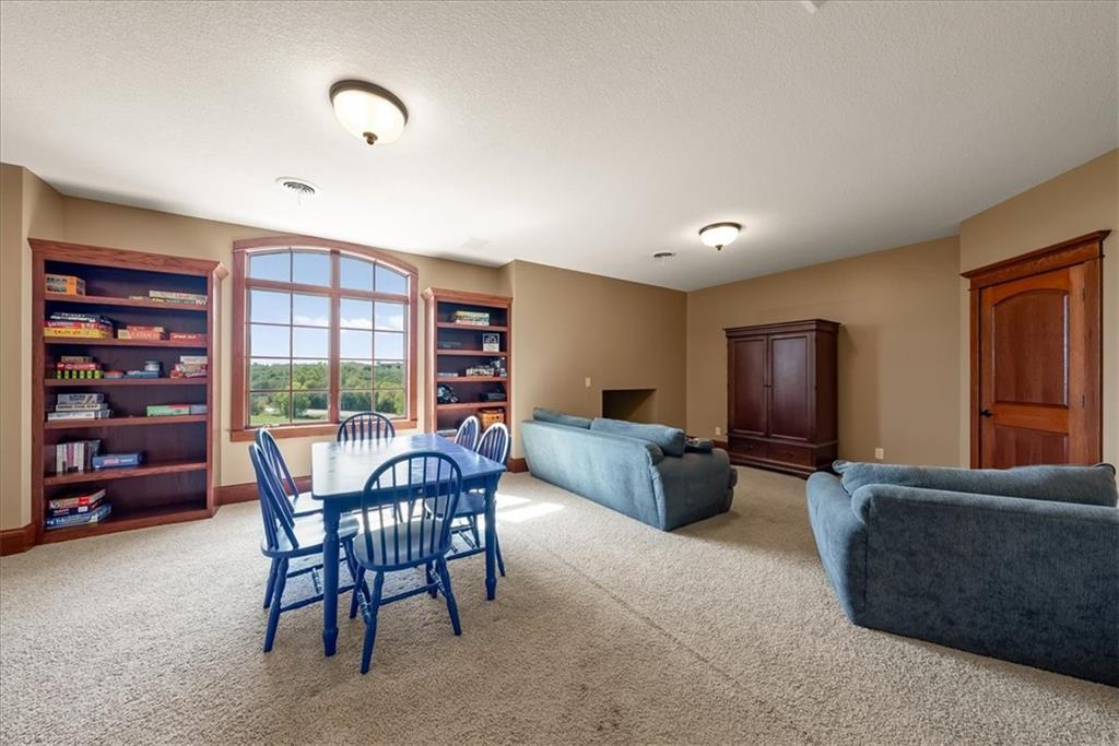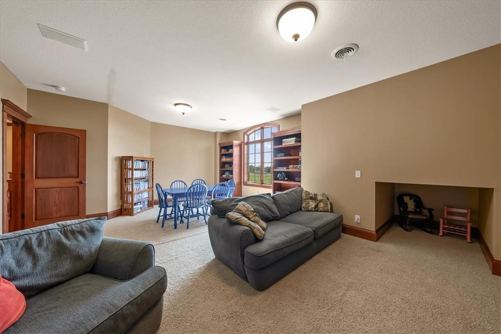 Exquisite Custom Luxury Estate on 10.51 Acres. 13 Miles from Mosaic in St Joseph, MO and 35 miles to MCI Airport. This breathtaking custom-built estate combines timeless craftsmanship with resort-style living. Offering 5 spacious bedrooms and 5.5 spa-inspired baths, this home is designed for both elegance and comfort. The primary suite is a serene retreat featuring a deep Asian soaking tub, walk-in steam shower with heated floors and expansive walk-in closets. Guests are welcomed through solid oak custom doors in soaring ceilings and a dramatic staircase setting the tone for the home’s refined style. At the heart of the home, the chef’s kitchen boasts old-world style stamped tin ceilings, hand-glazed maple cabinetry, granite countertops, hammered copper sinks, Hazaki ice machine and a spacious walk-in pantry. A formal dining room and inviting living room with fireplace provide the perfect spaces for gatherings. Additional features include a private office, custom main-floor laundry and art room/office. Upstairs, three bedrooms each feature their own en-suite baths, with a flexible bonus space for added versatility. The finished walk-out lower level is designed for entertainment and wellness, offering a media room, private gym and abundant storage. Outdoors, the property transforms into your personal resort with a sparkling, heated pool, pool house with bathroom and garage, outdoor kitchen and bar, expansive patios and a firepit for evening relaxation. Every detail reflects the highest standard of luxury, making this estate the perfect blend of sophistication, comfort and lifestyle!
